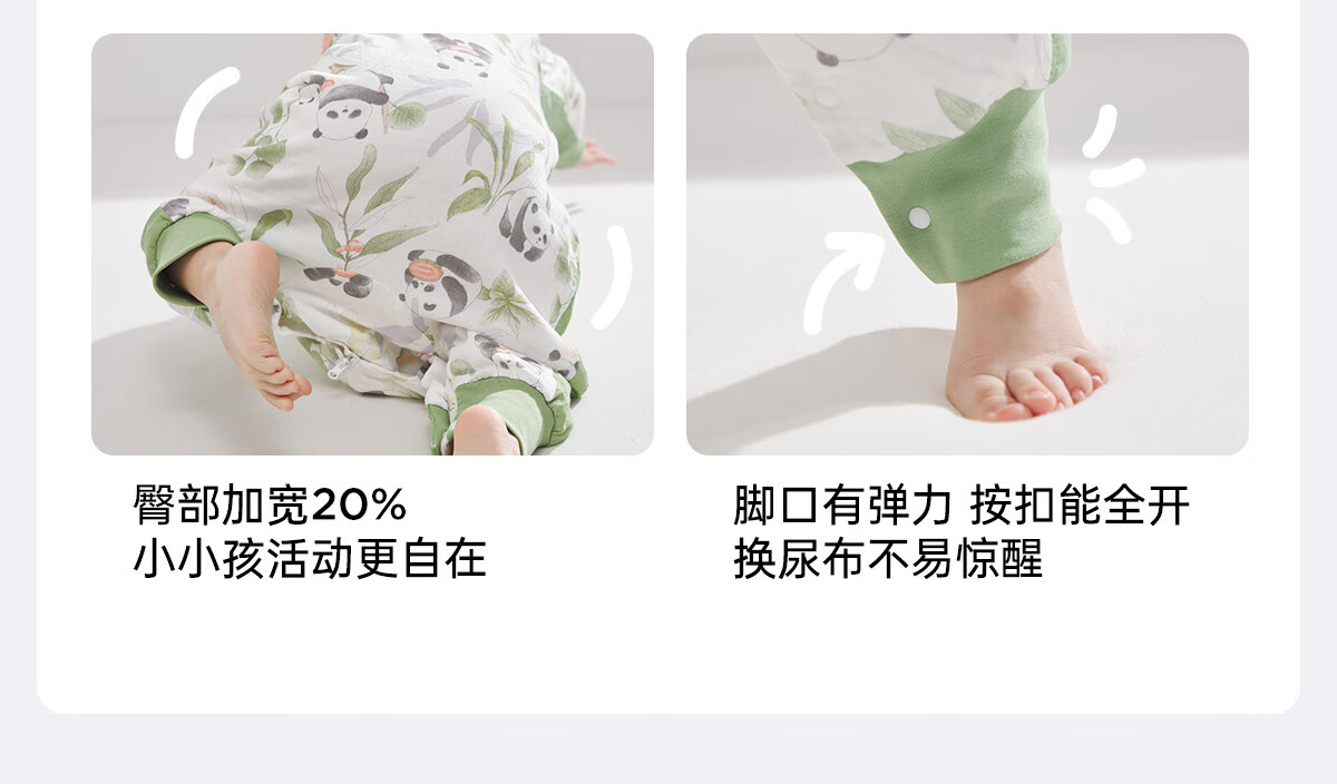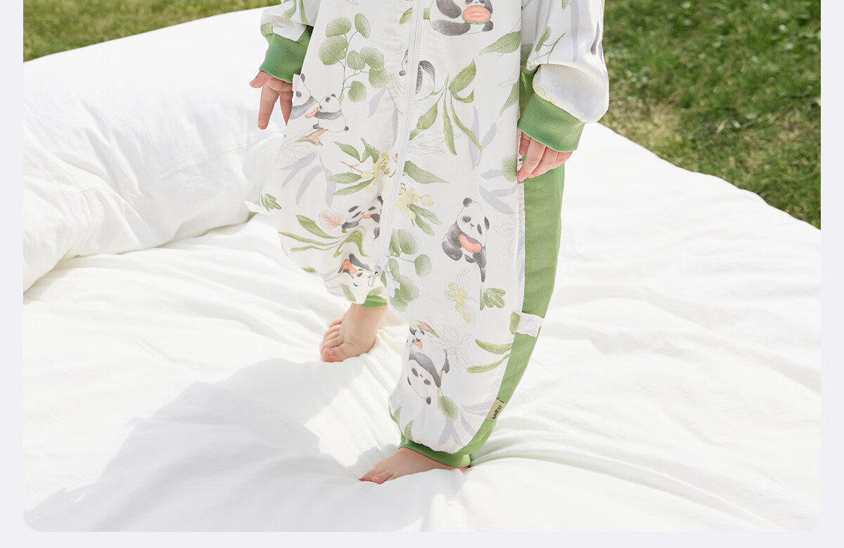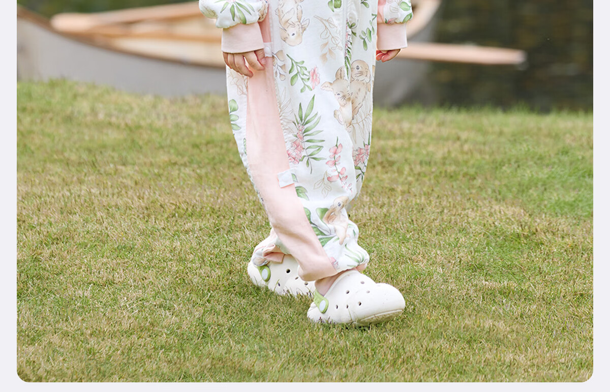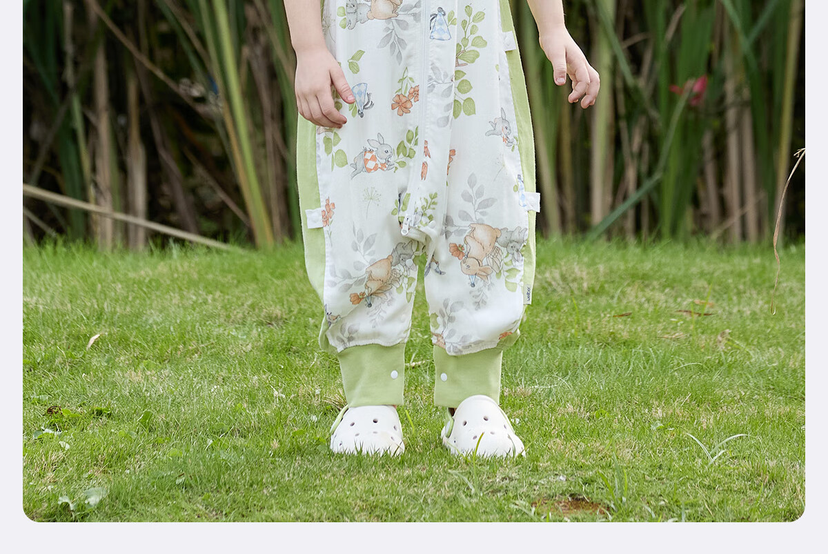 威尔贝鲁(WELLBER)婴儿睡袋1-3岁前6后4宝宝竹棉纱布分腿睡衣儿童春秋 樱野兔兔M
