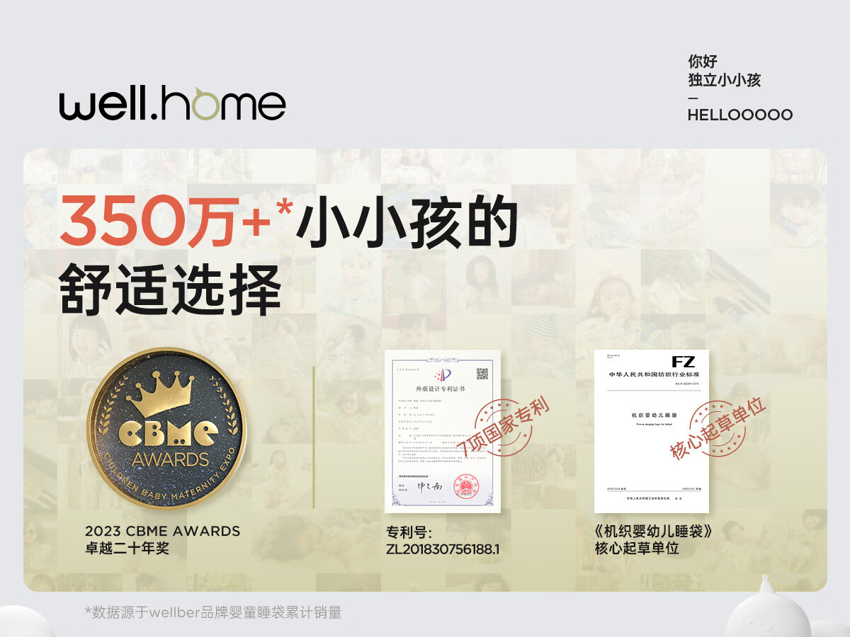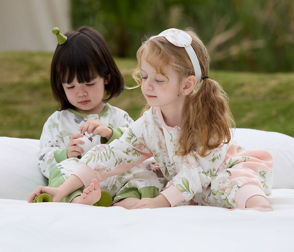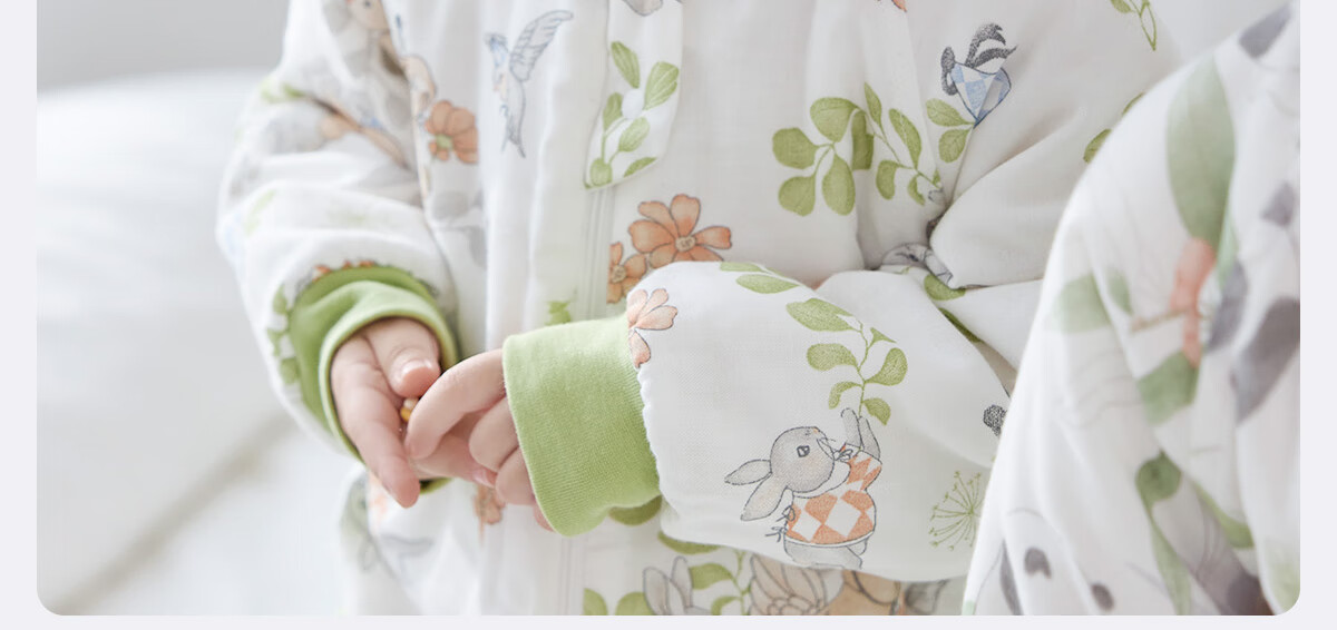 威尔贝鲁(WELLBER)婴儿睡袋1-3岁前6后4宝宝竹棉纱布分腿睡衣儿童春秋 樱野兔兔M