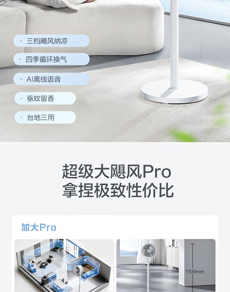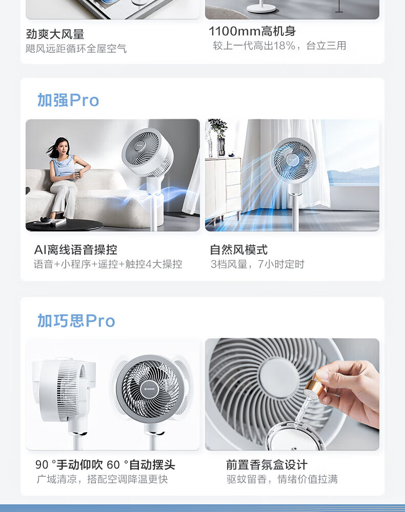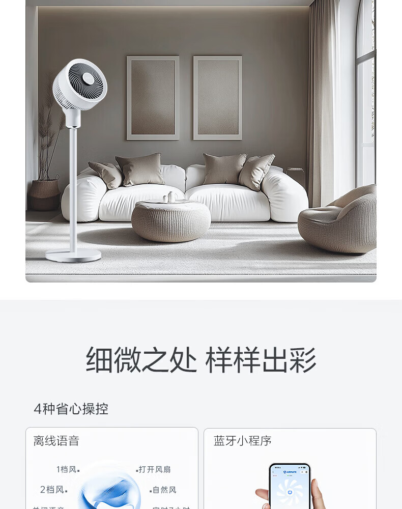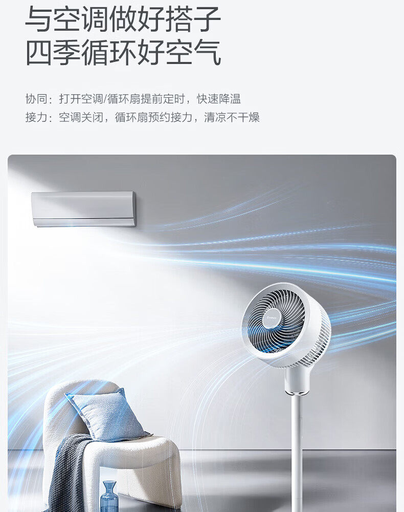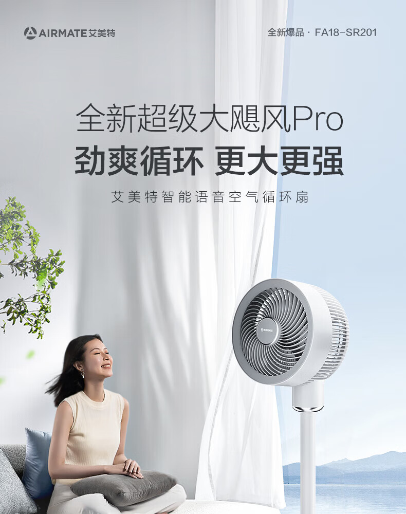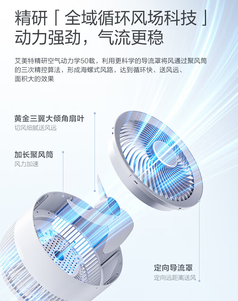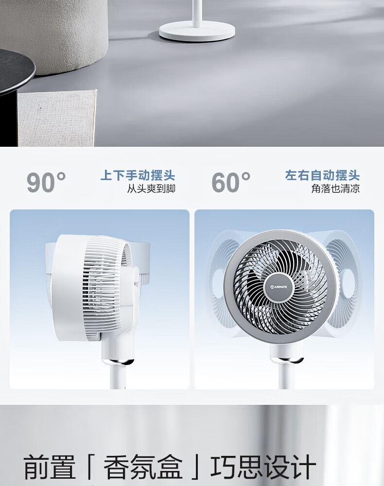 艾美特(AIRMATE)空气循环扇家用电风扇落地扇台立式节能远距大风量涡轮换气扇摇头卧室宿舍桌面轻音小型对流电扇 循环扇【语音智控+香氛盒+定时】