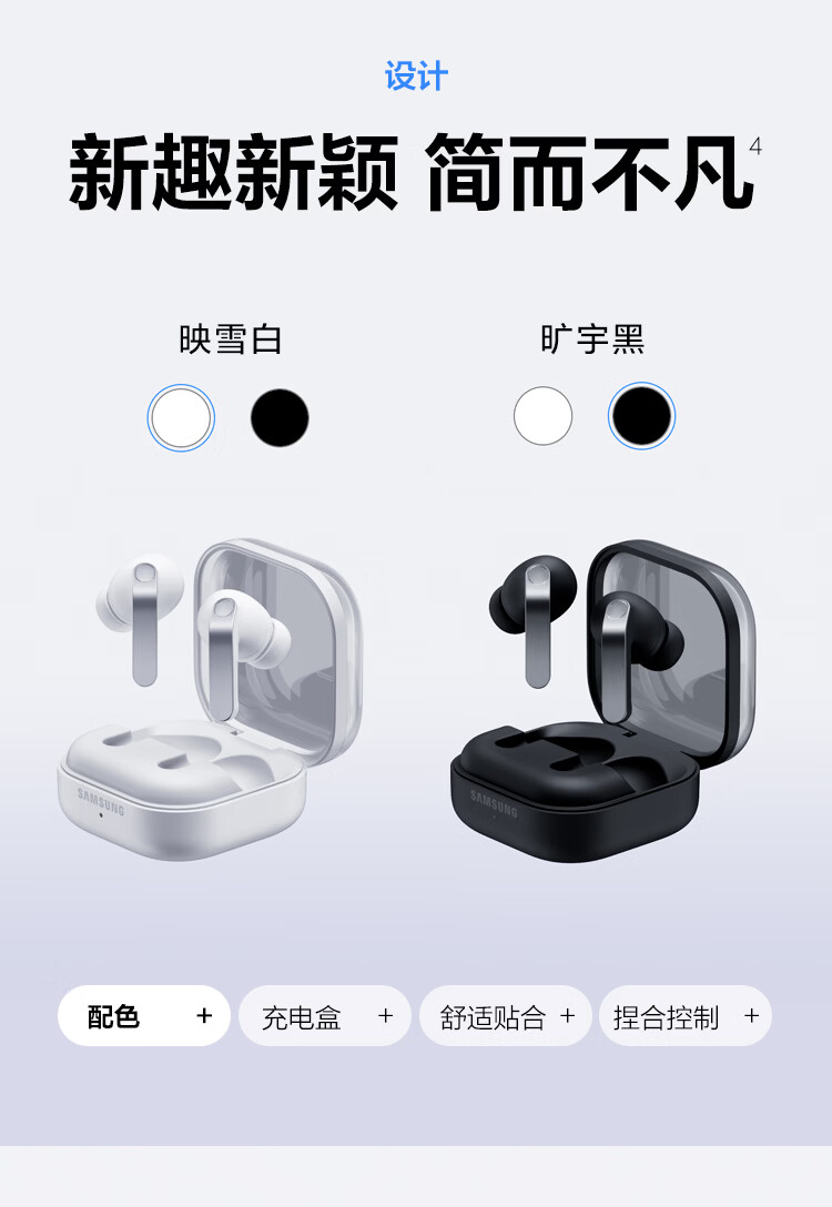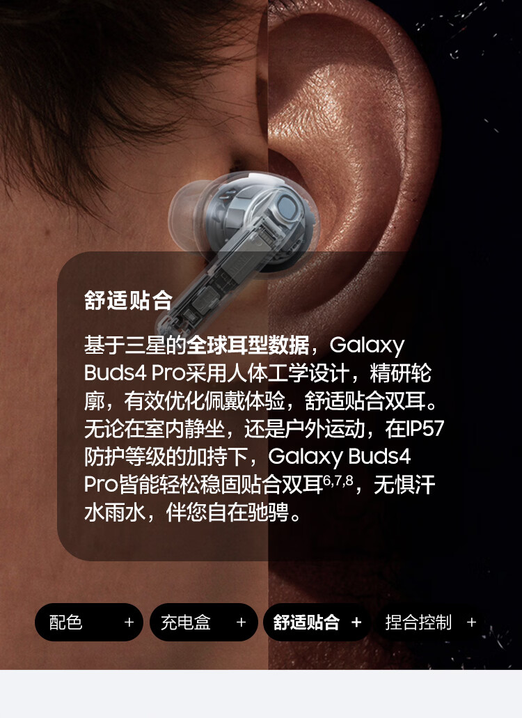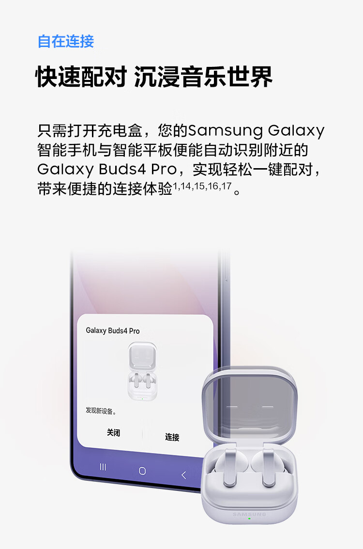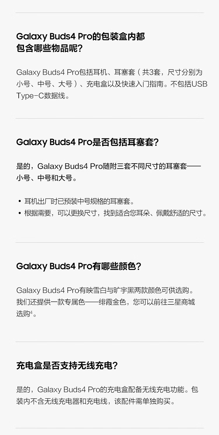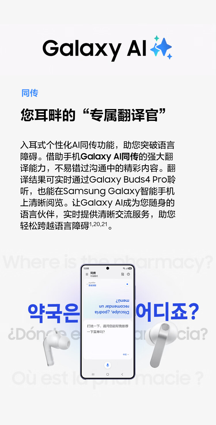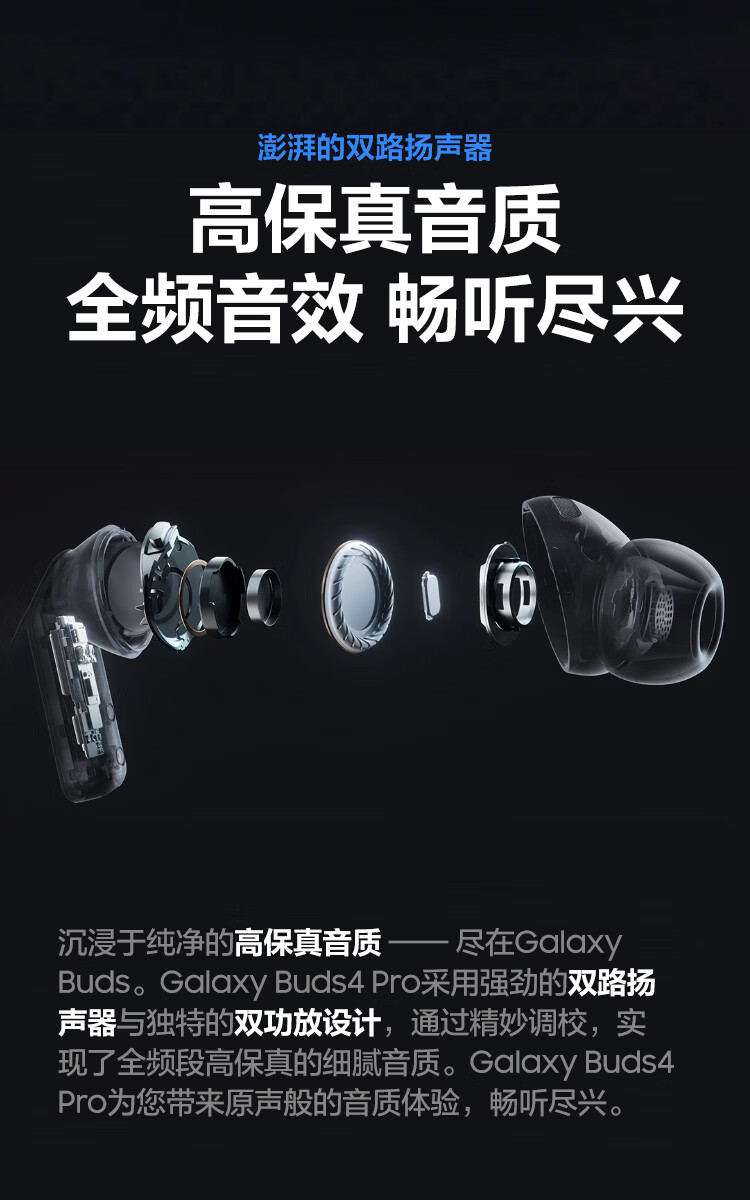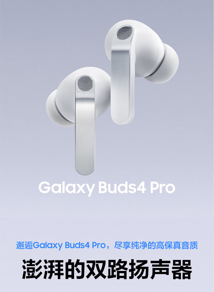 三星 Samsung Buds4 Pro 增强型自适应主动降噪无线蓝牙耳机/入耳式耳机/翻译耳机 映雪白