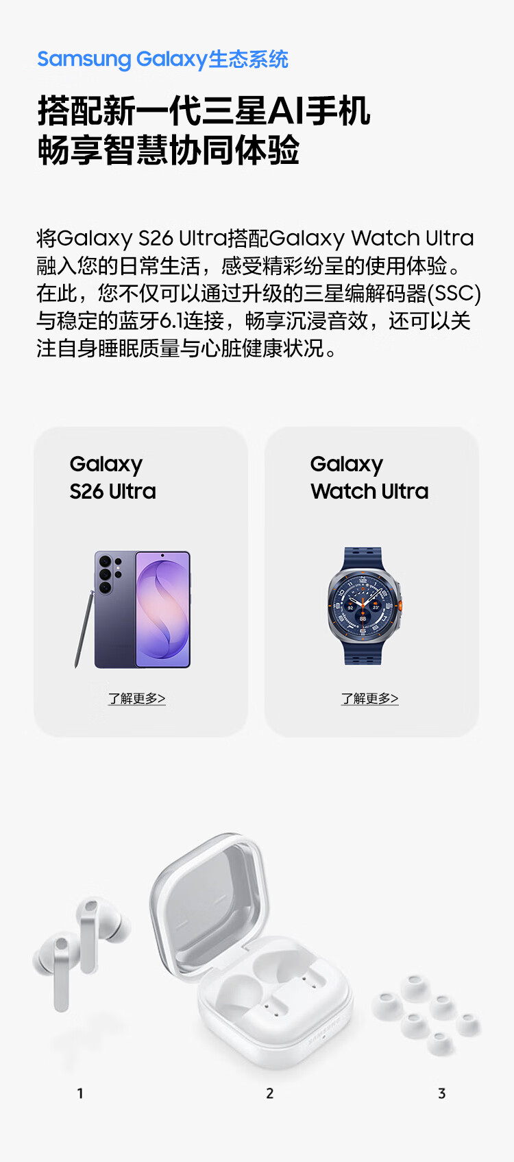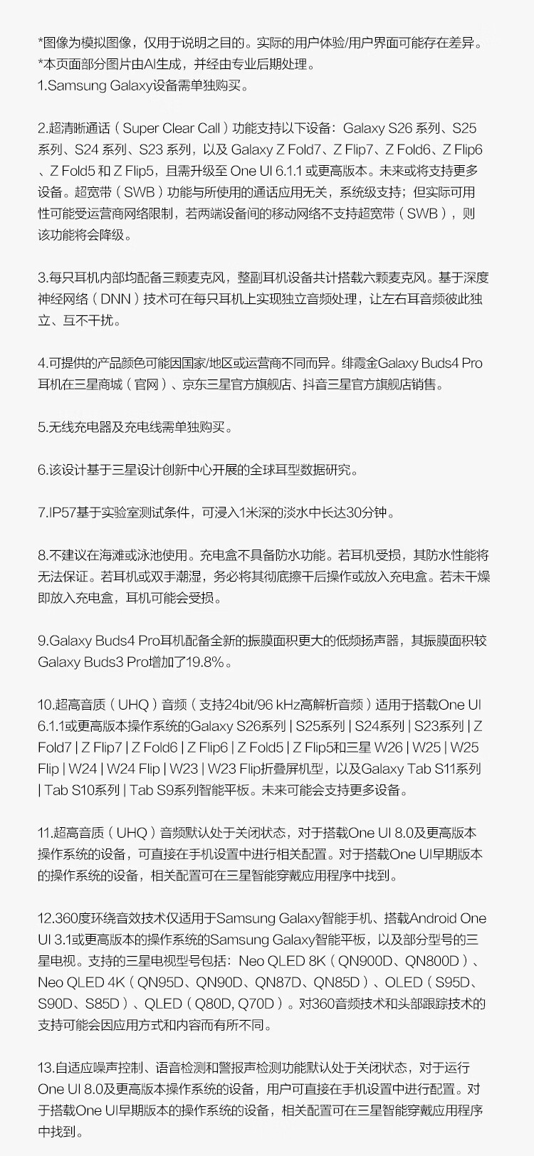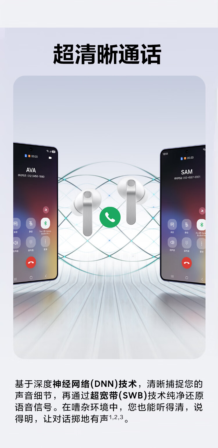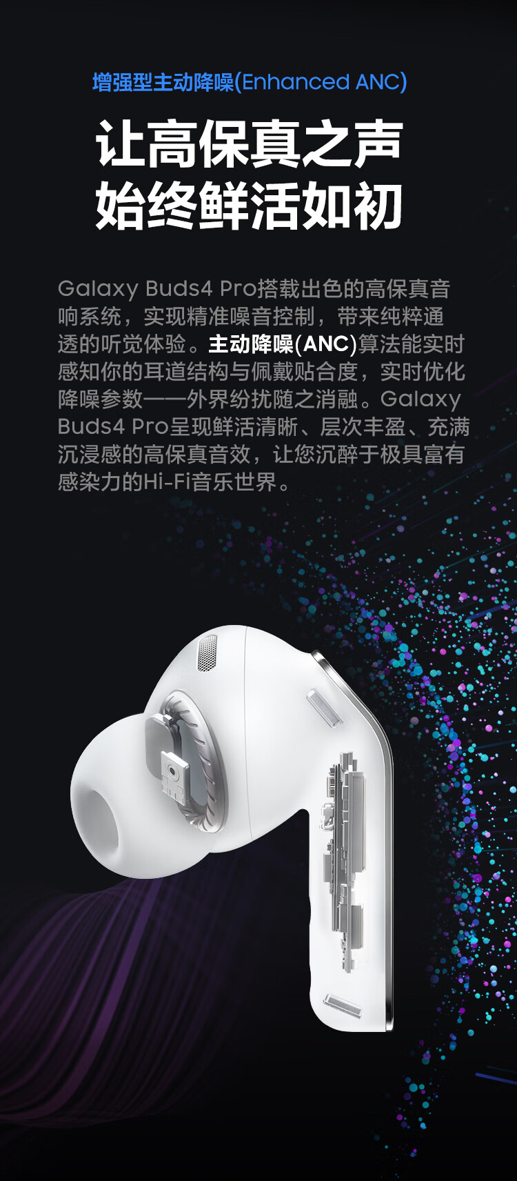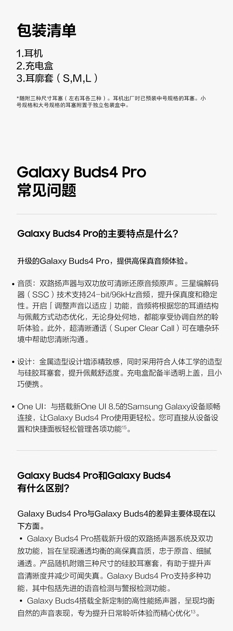三星 Samsung Buds4 Pro 增强型自适应主动降噪无线蓝牙耳机/入耳式耳机/翻译耳机 映雪白