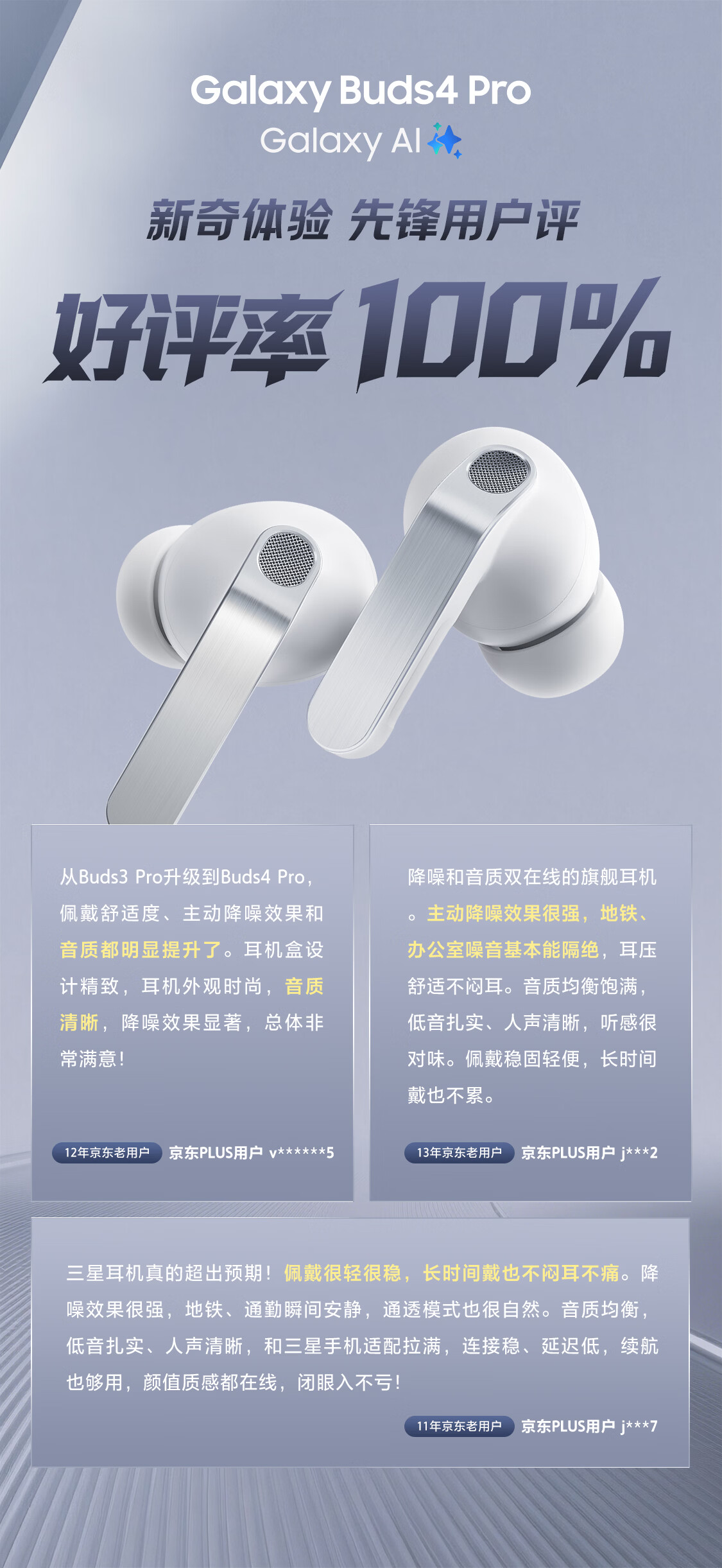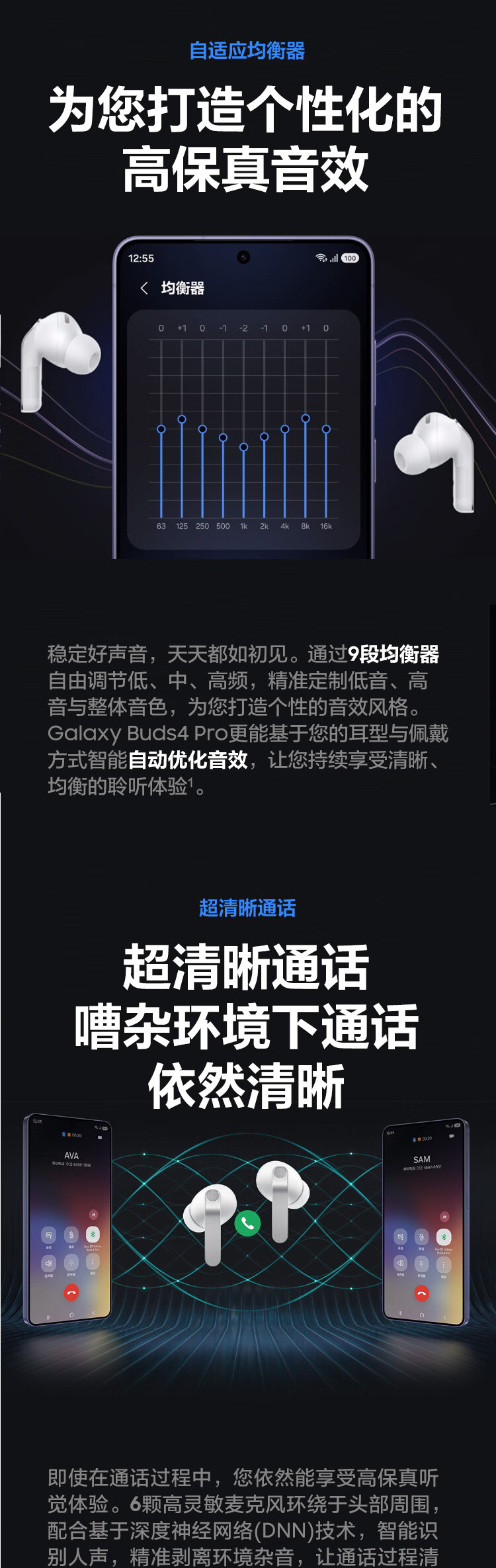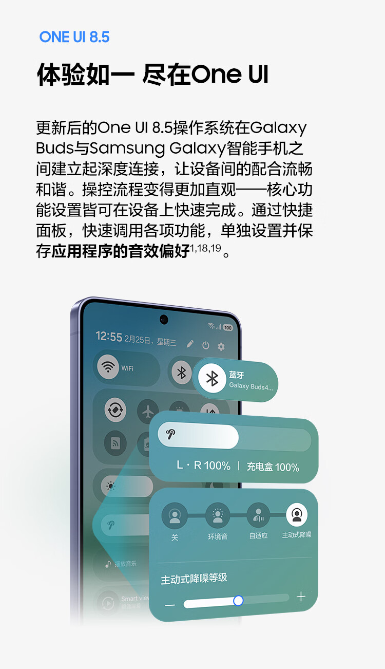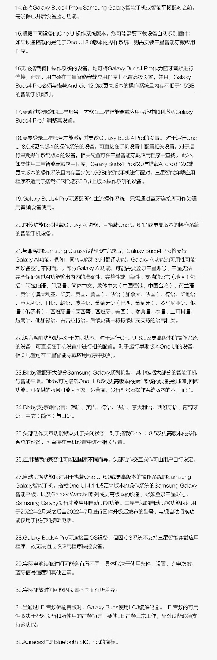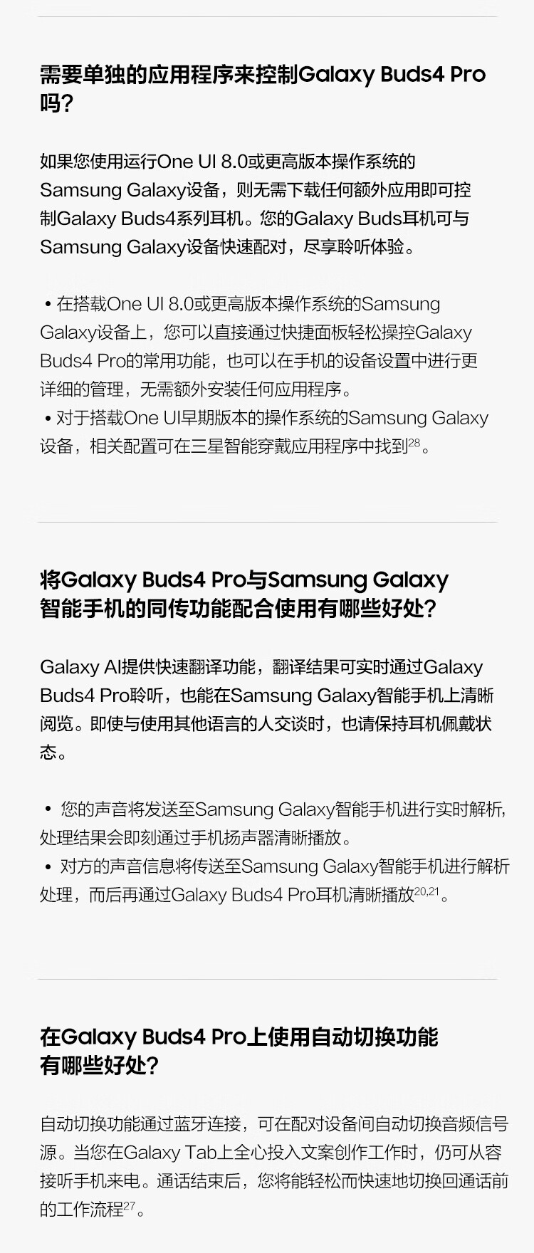 三星 Samsung Buds4 Pro 增强型自适应主动降噪无线蓝牙耳机/入耳式耳机/翻译耳机 映雪白
