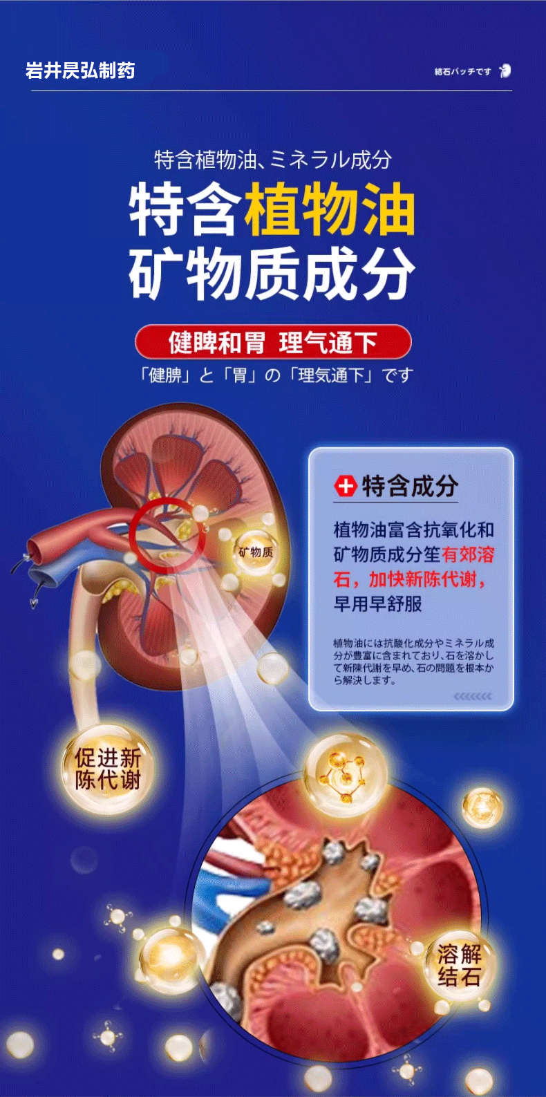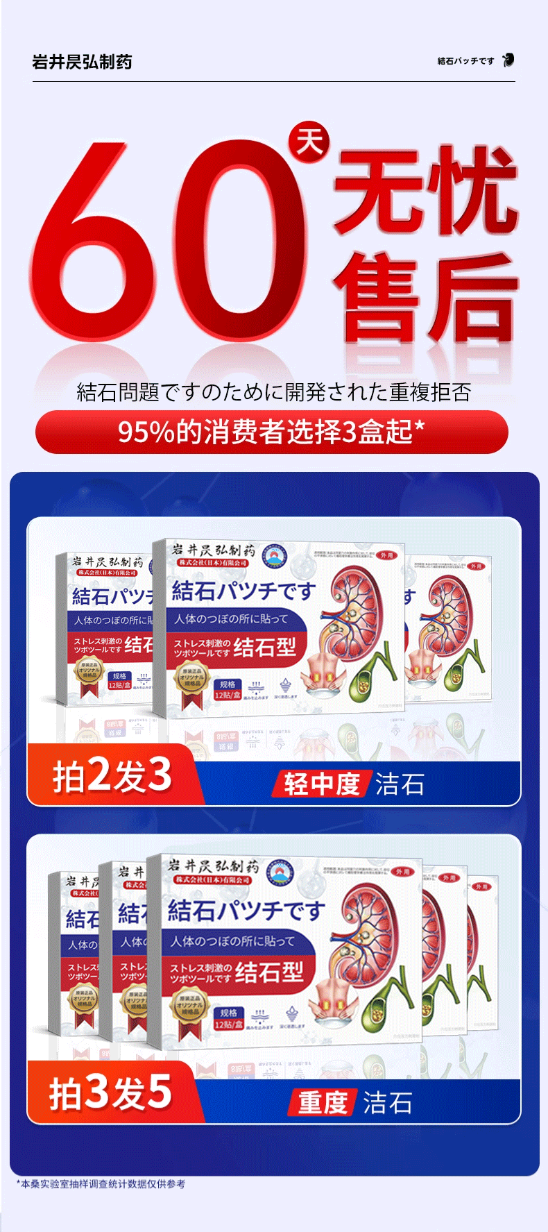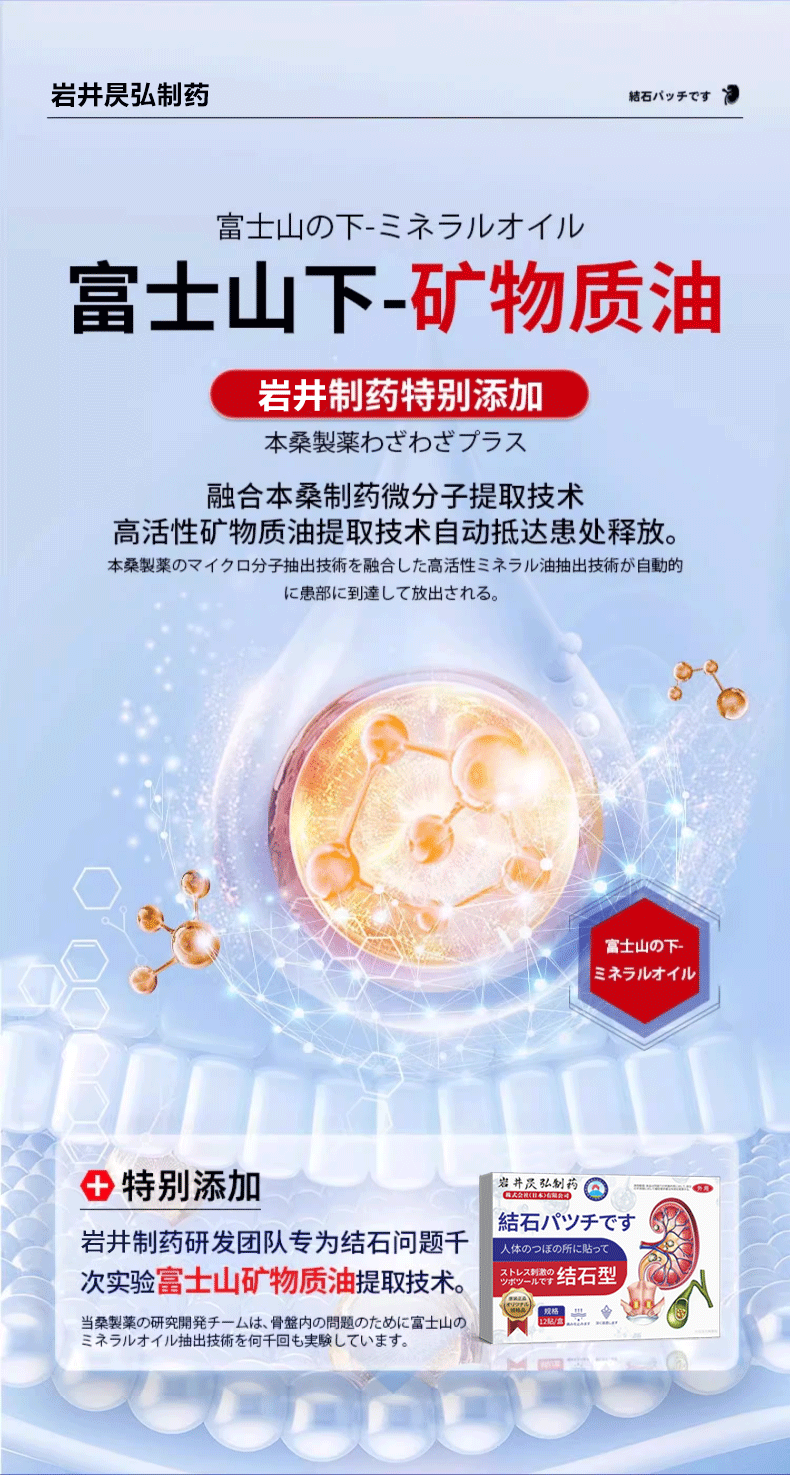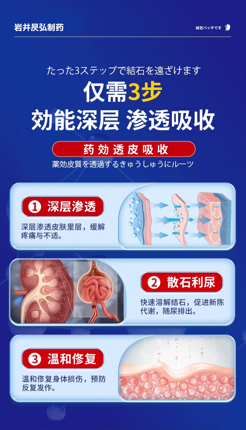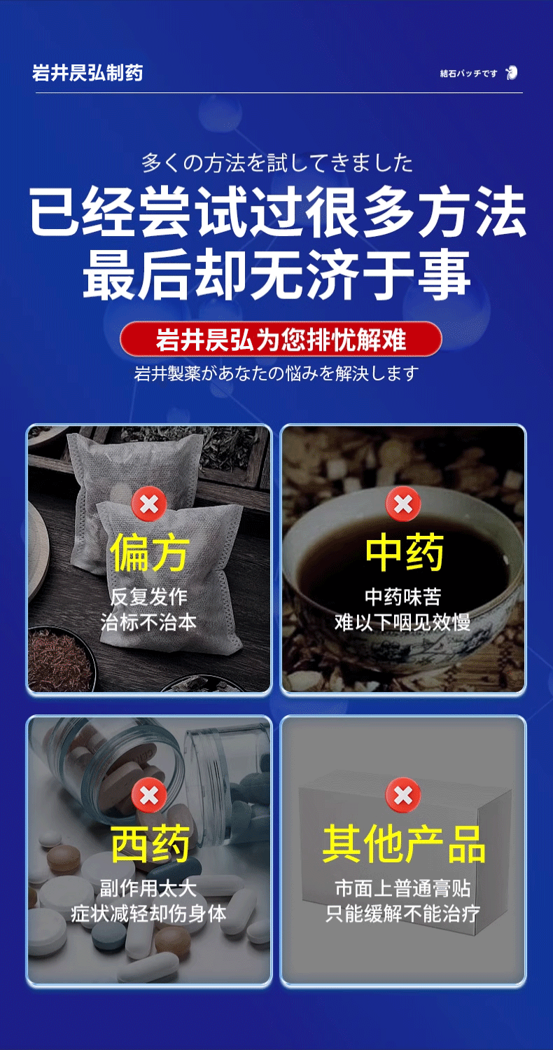 岩井昃弘日本进口胆结石药胆囊炎胆囊结石贴专用结石贴息肉排石碎石消石素 特效三盒【消除结石】98%选择 胆结石溶石化石排石穴位贴
