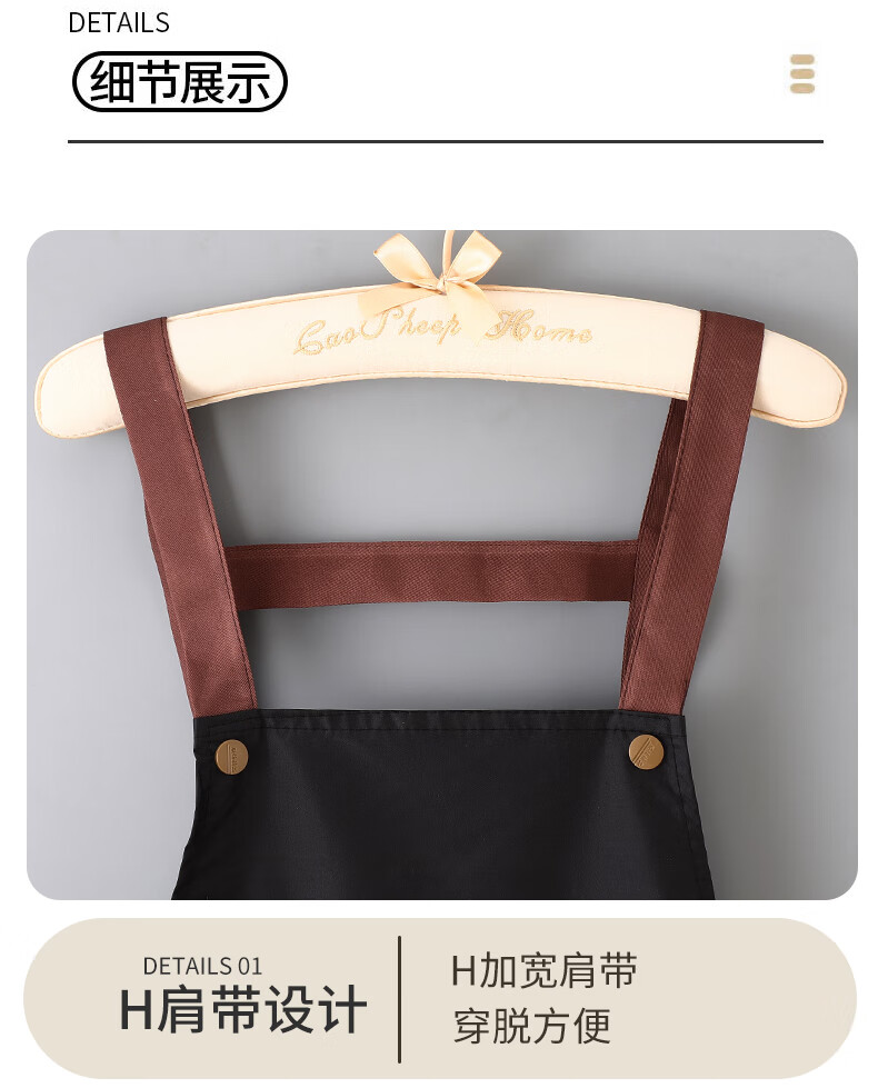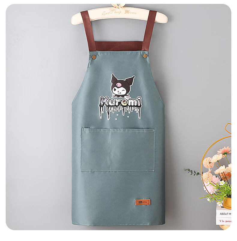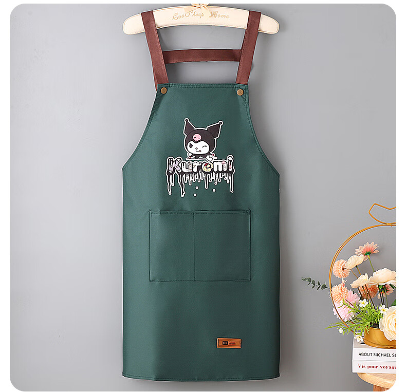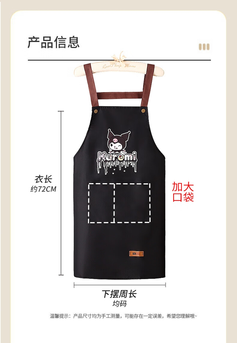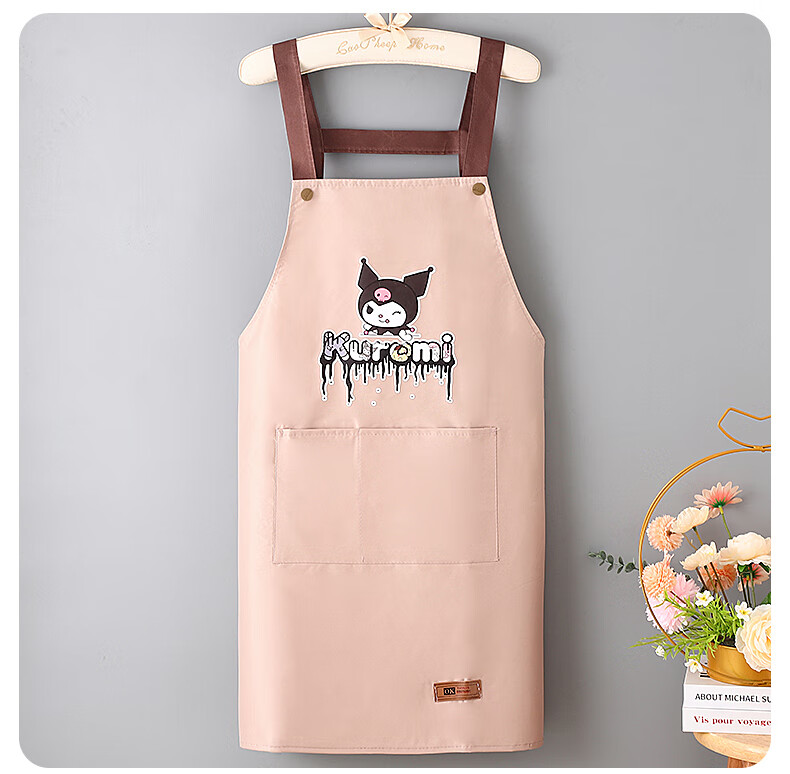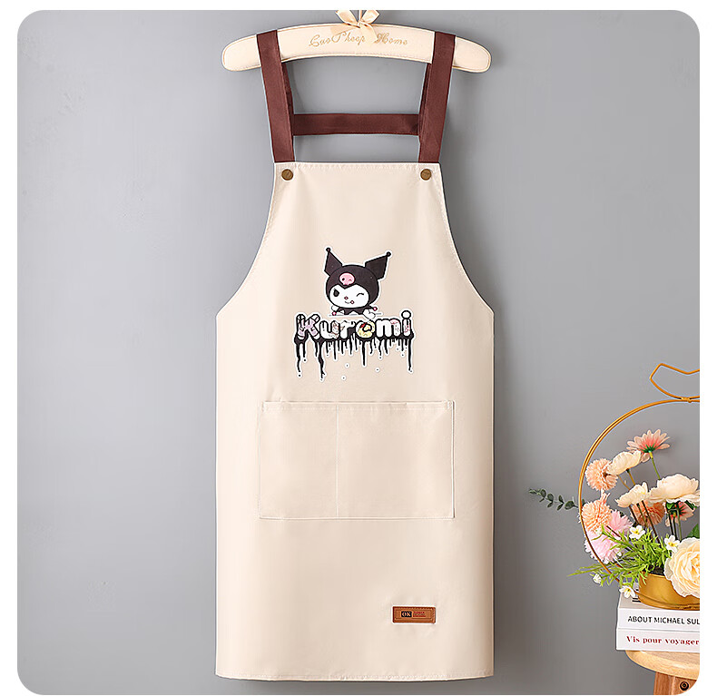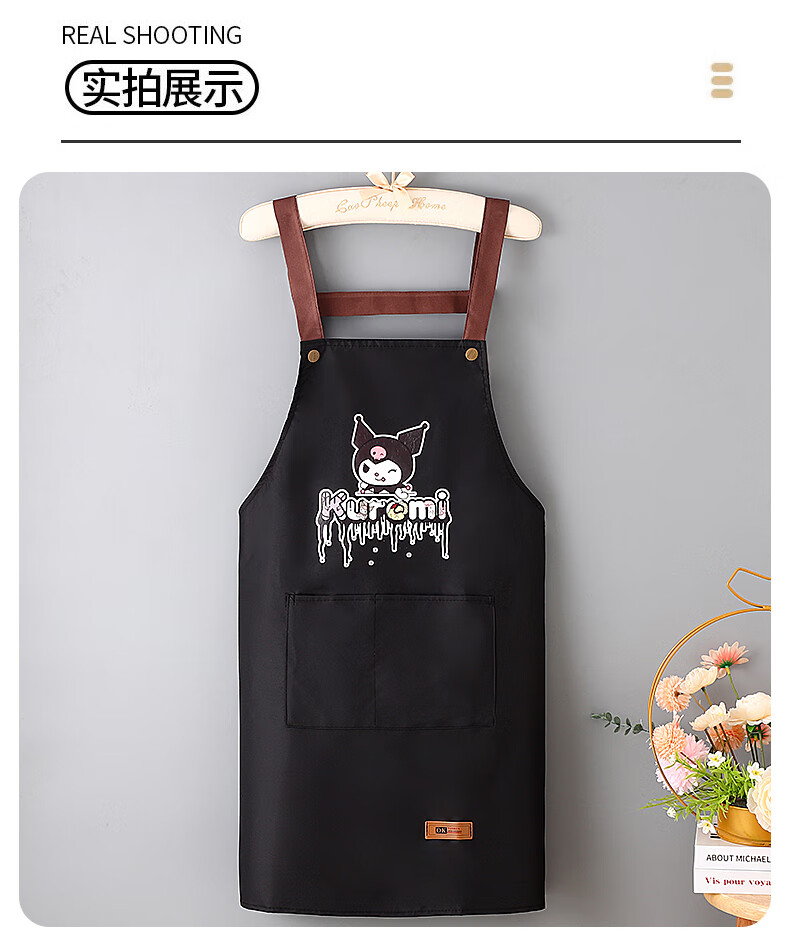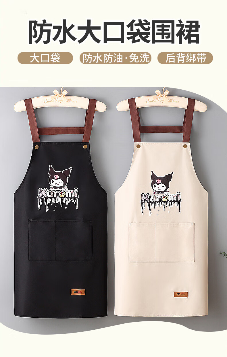 新款库洛米防水防油围裙家用厨房做饭男女围腰背带款餐饮工作服 黑色【库洛米】 防水防油