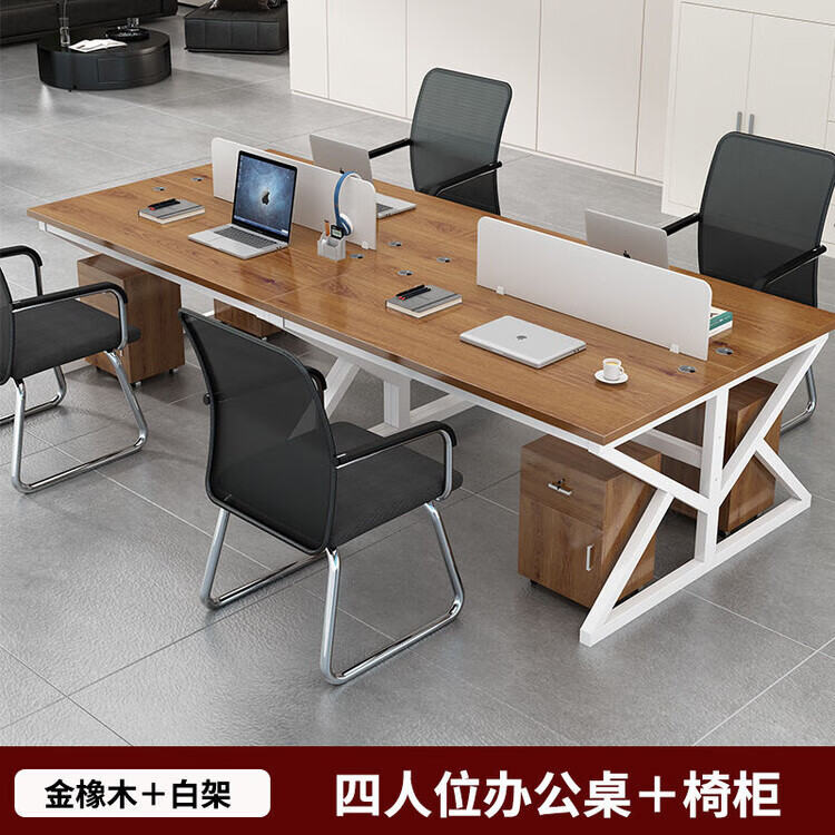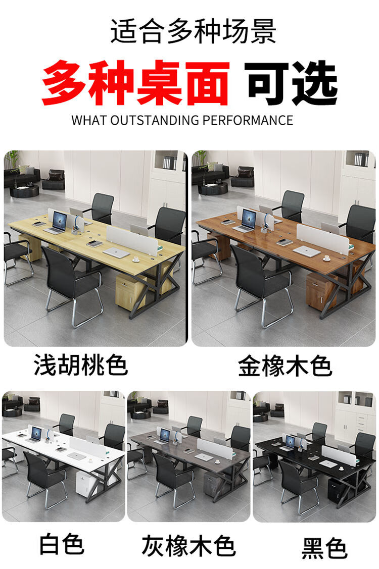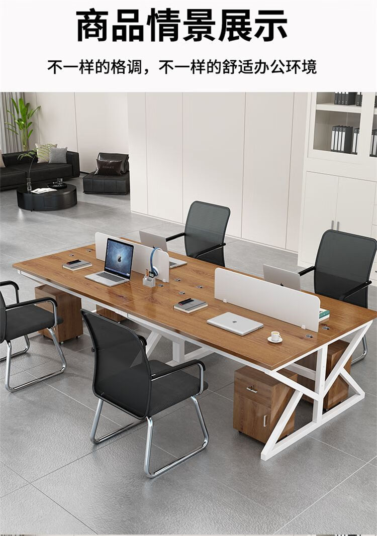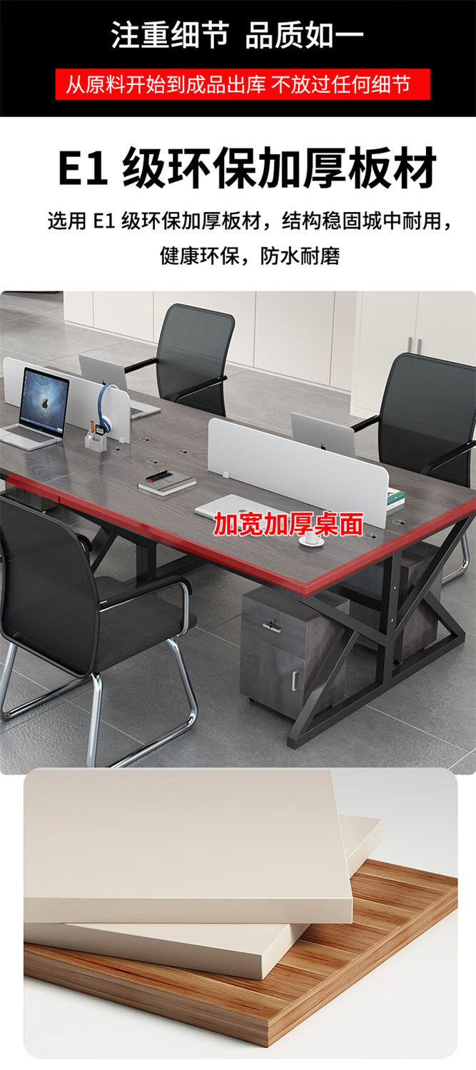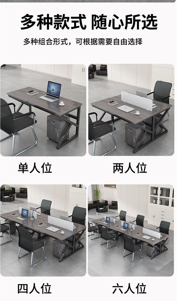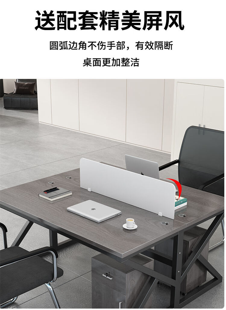 弘星隆职员办公桌2/4/6多工位屏风工作位轻奢办公桌椅组合电脑桌卡坐 单人位 浅胡桃+白色桌架
