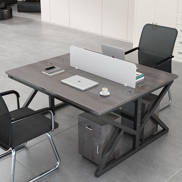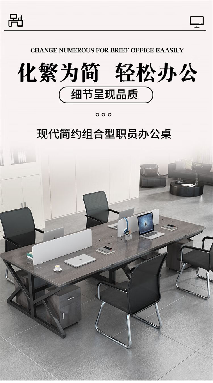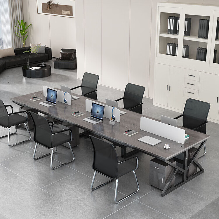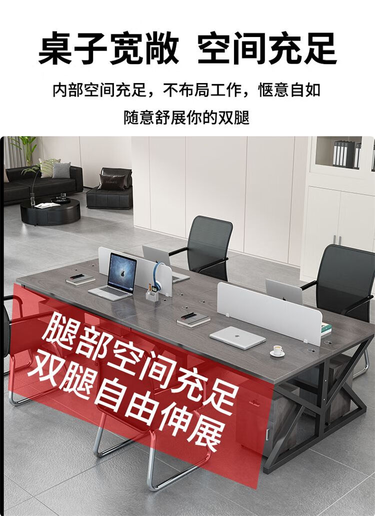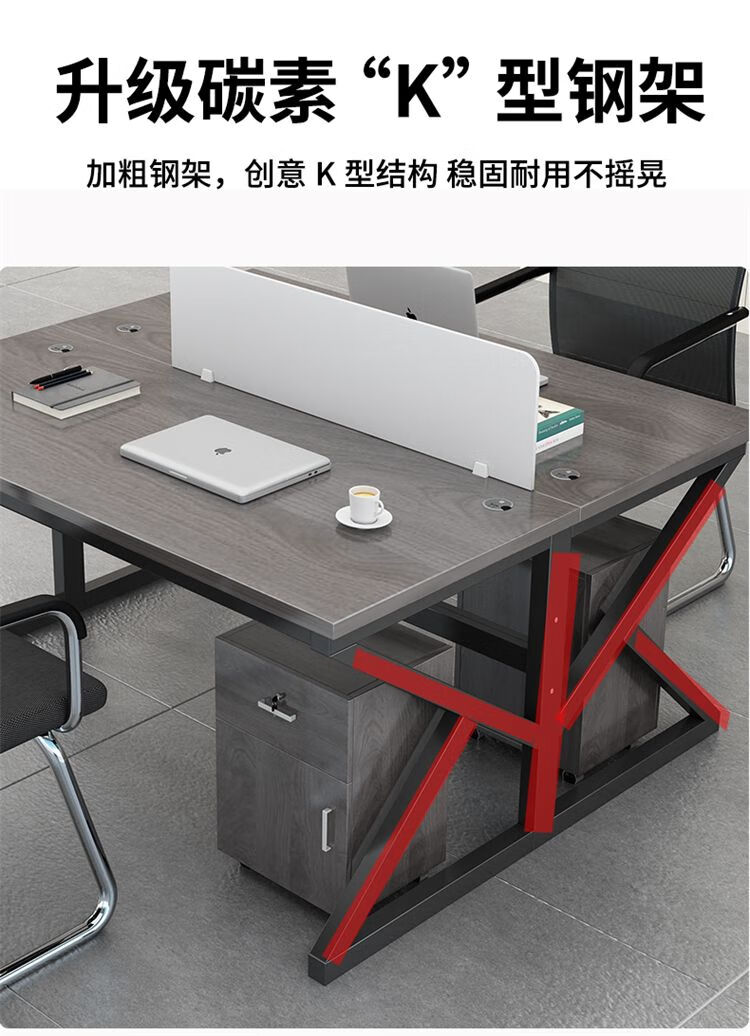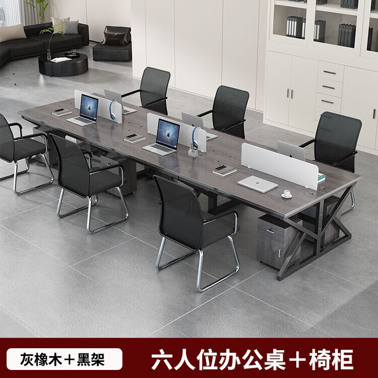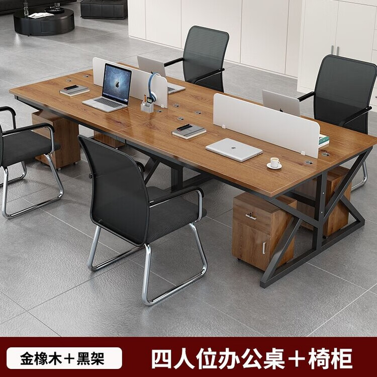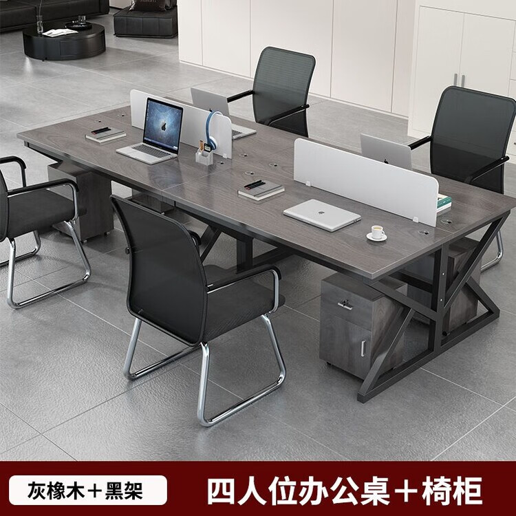 弘星隆职员办公桌2/4/6多工位屏风工作位轻奢办公桌椅组合电脑桌卡坐 单人位 浅胡桃+白色桌架