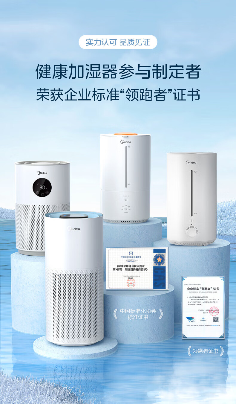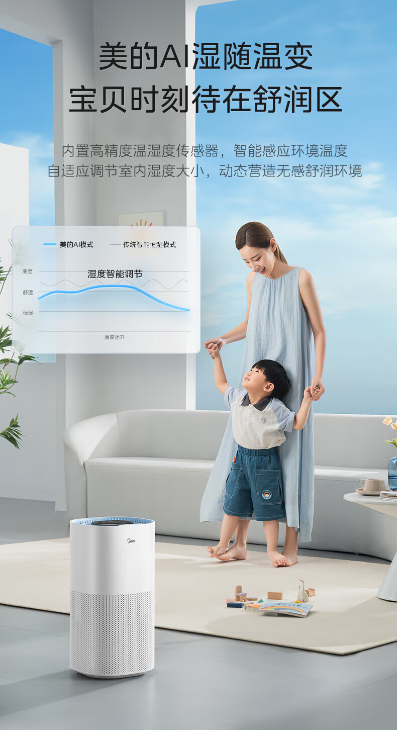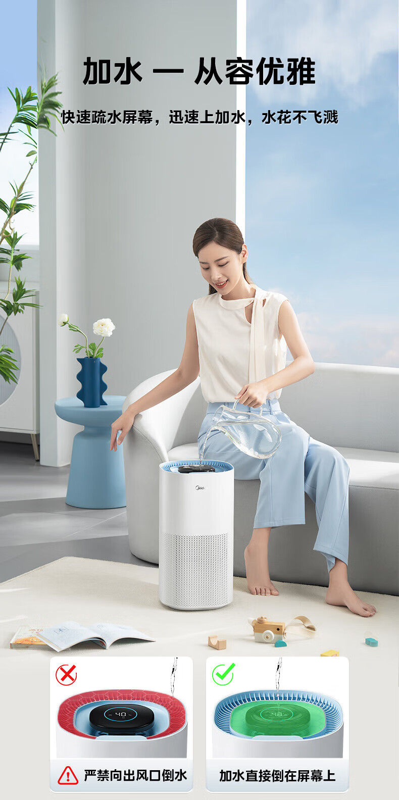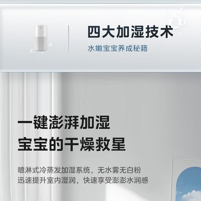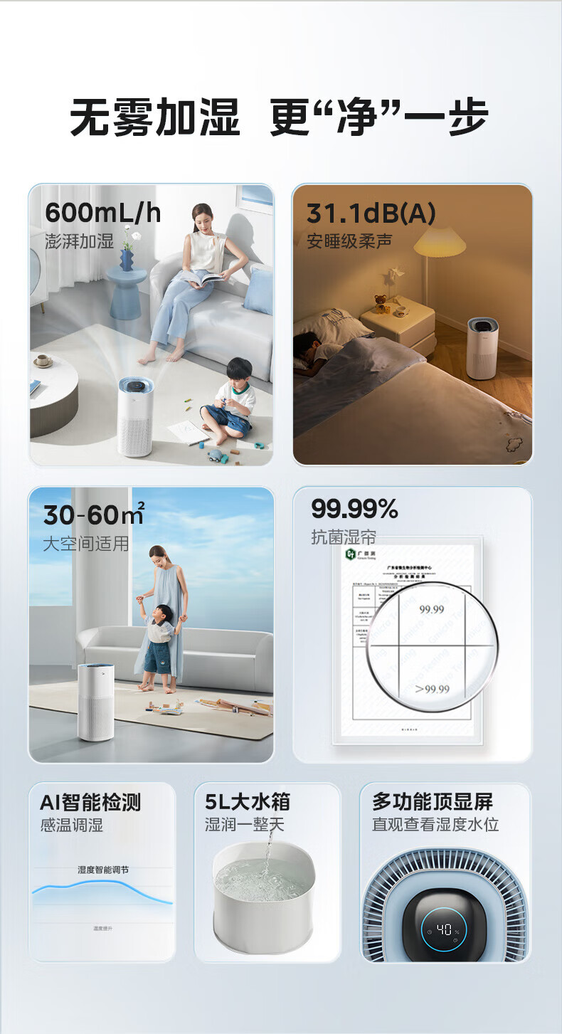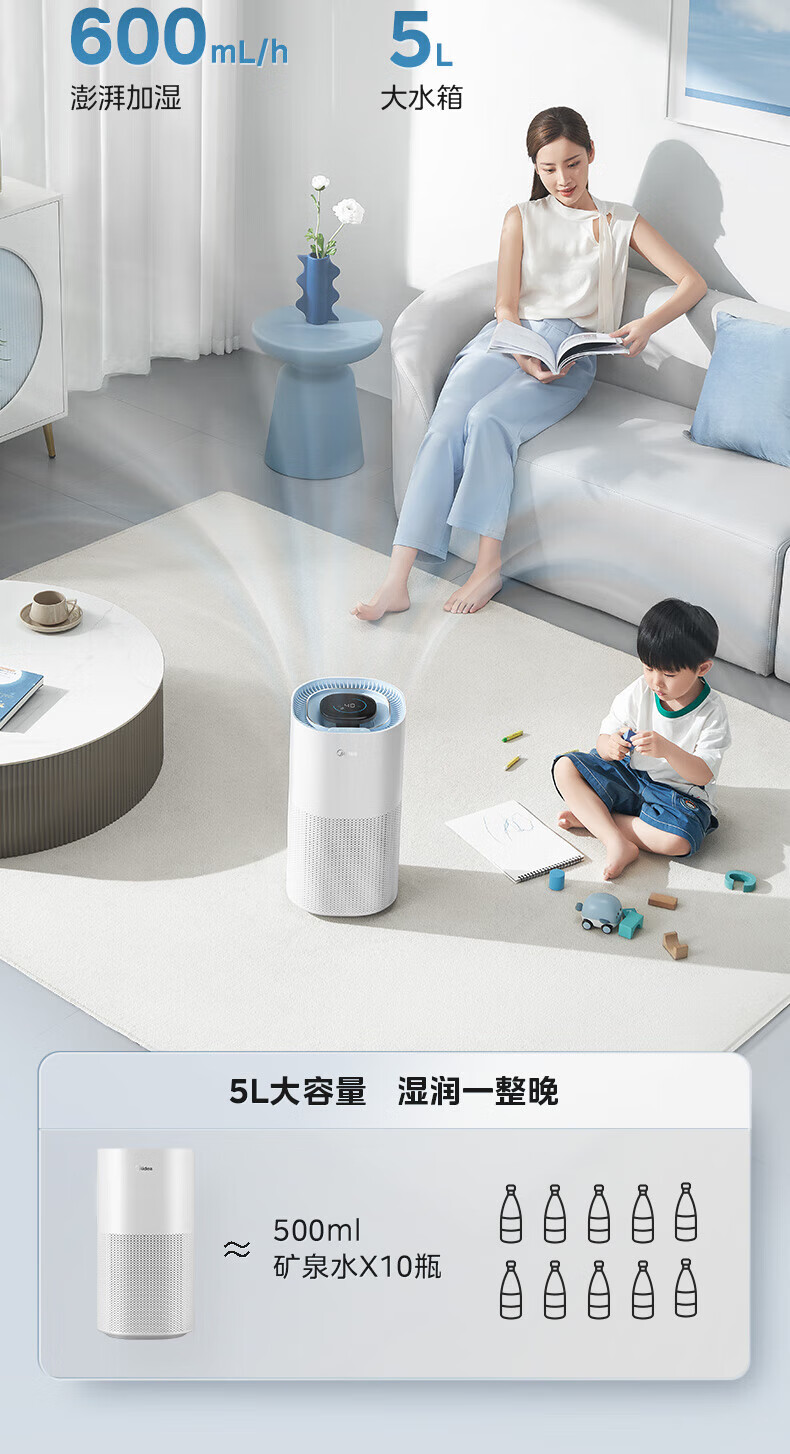 美的(Midea)小蓝鲸600无雾加湿器空气净化器孕妇母婴幼家用卧室增湿器桌面雾化器礼物取暖降燥补水神器SZ-2Y50 【小蓝鲸安睡600】