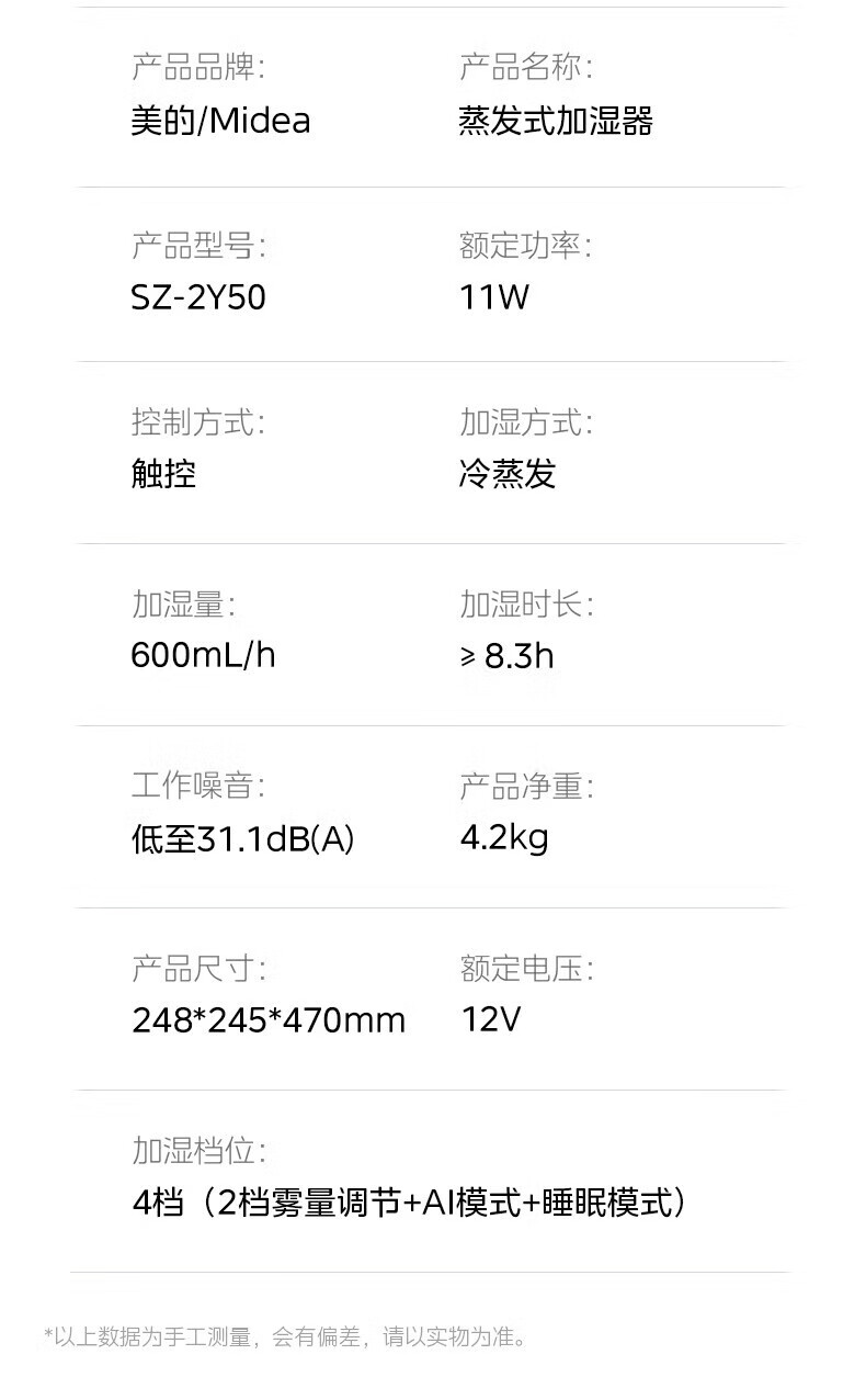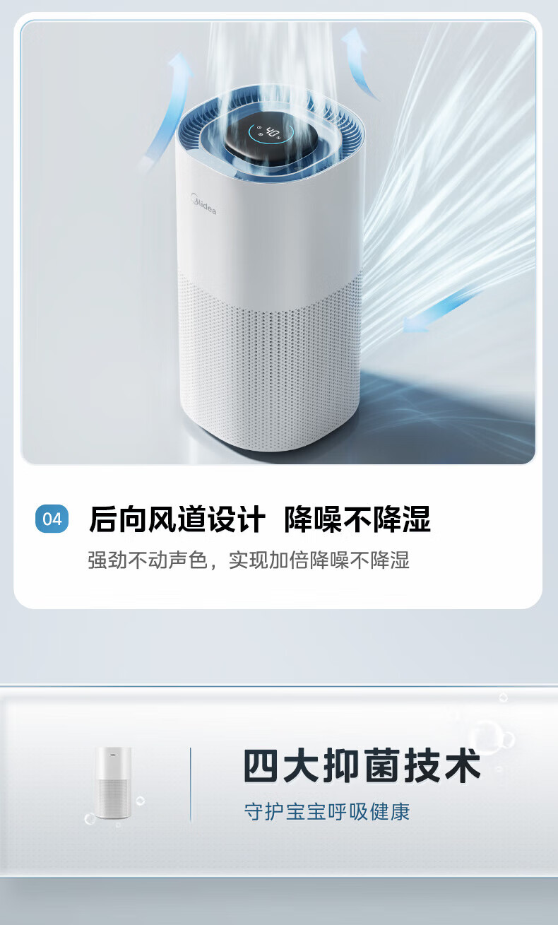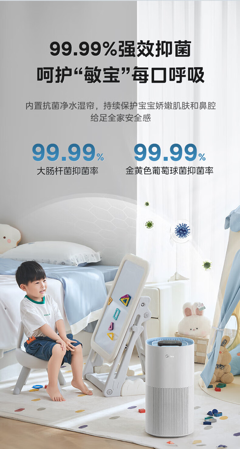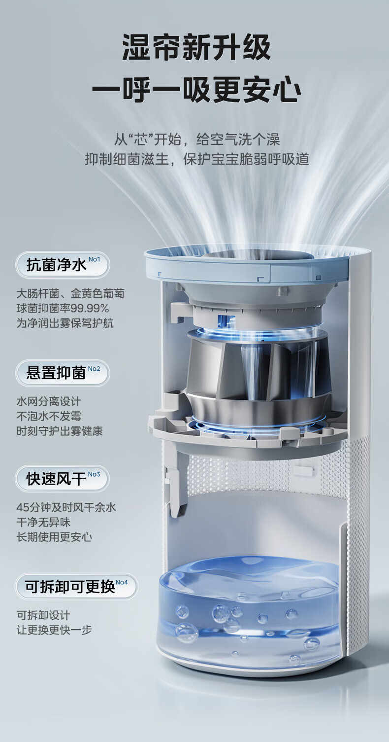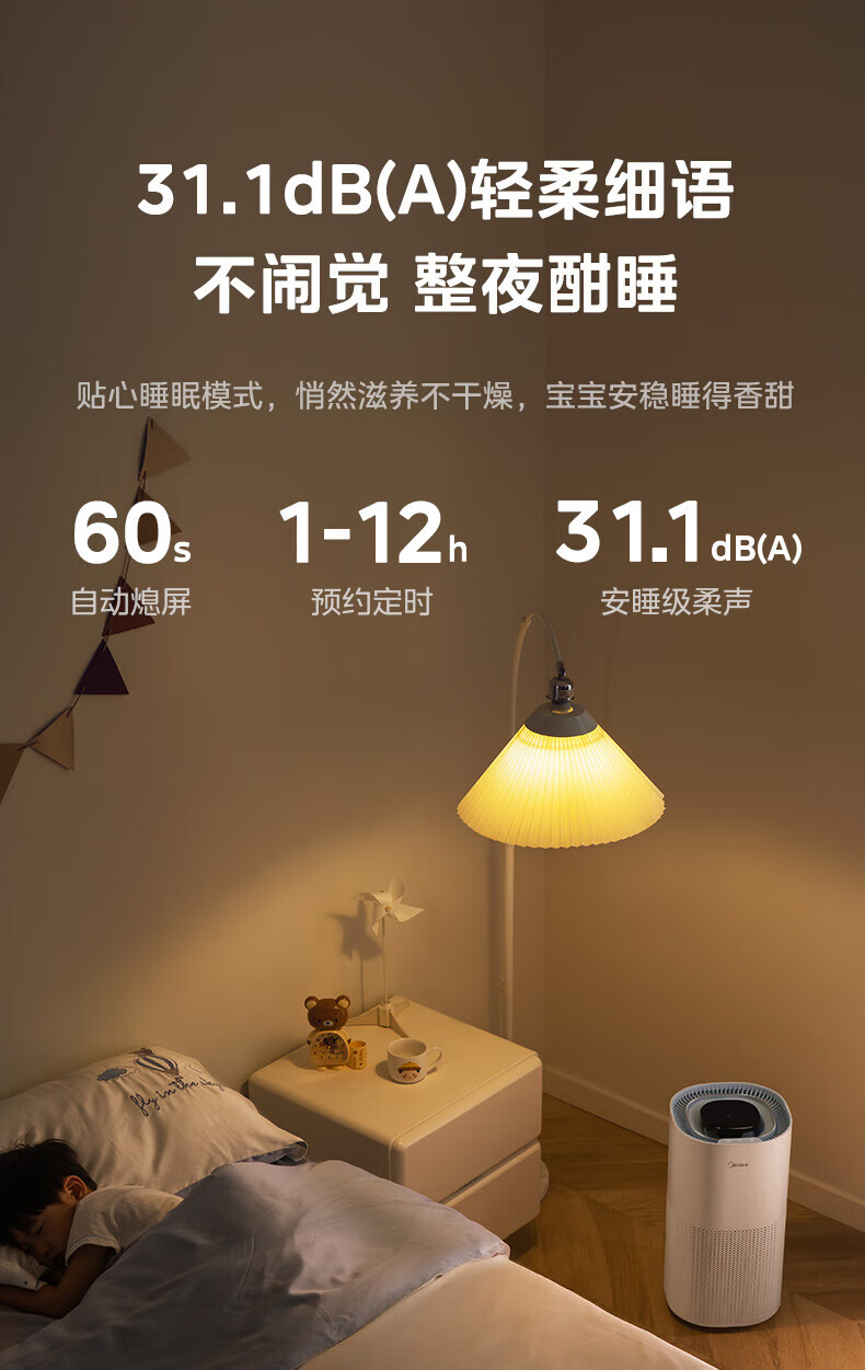 美的(Midea)小蓝鲸600无雾加湿器空气净化器孕妇母婴幼家用卧室增湿器桌面雾化器礼物取暖降燥补水神器SZ-2Y50 【小蓝鲸安睡600】