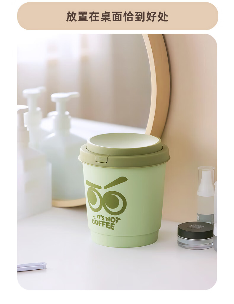 茶花桌面车载小号迷你垃圾桶塑料家用清洁垃圾桶按压弹盖 【绿色】桌面按压弹盖-垃圾桶 【1只装】