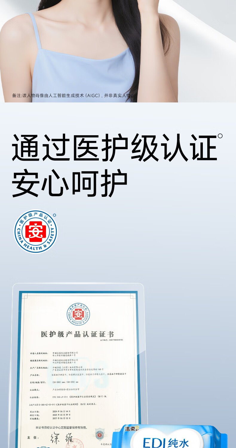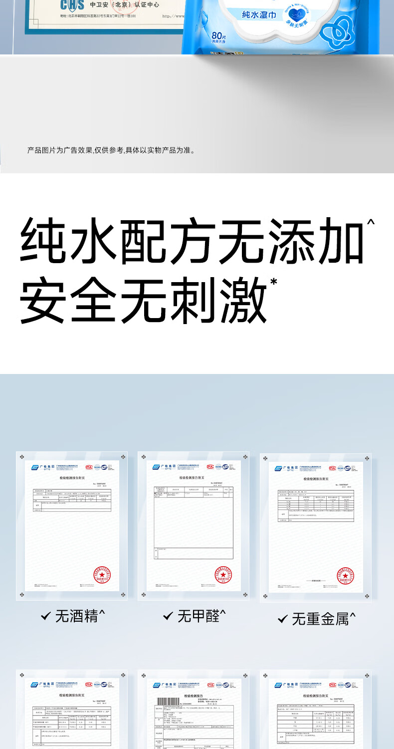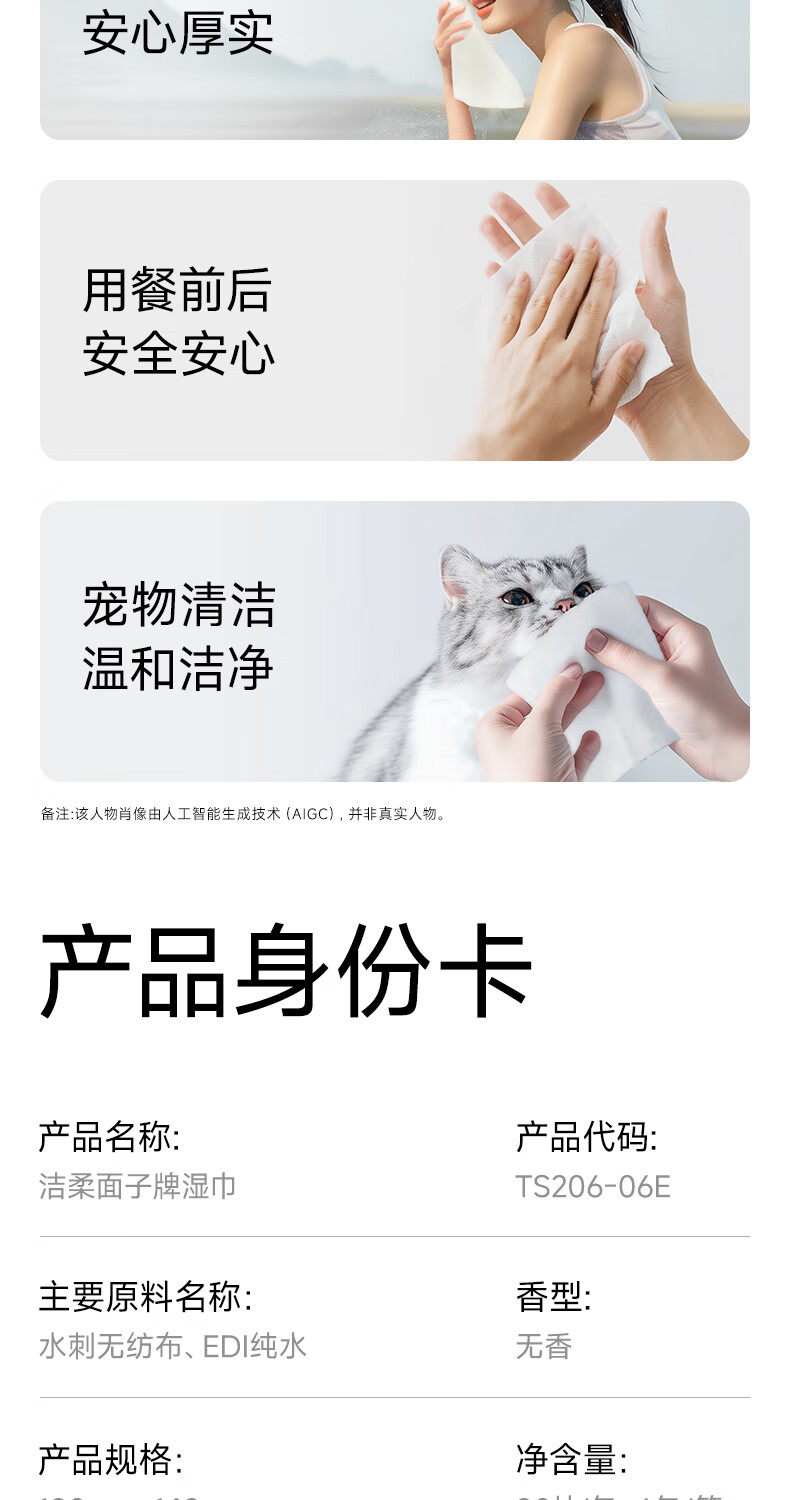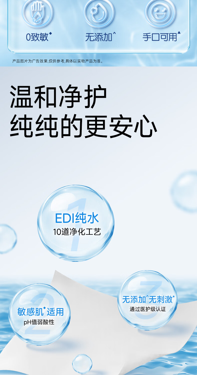 洁柔湿巾EDI纯水面子湿巾纸不含酒精亲肤无刺激清爽无香家用80片6包 6包共480片整箱