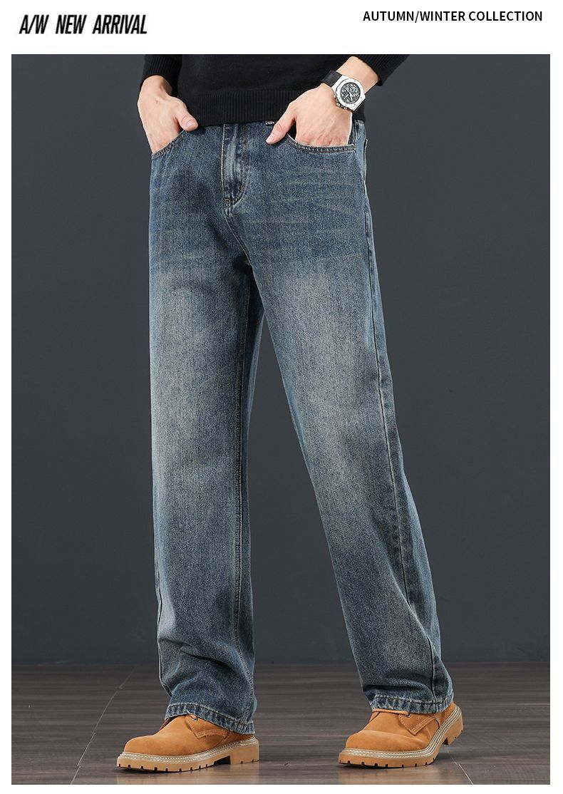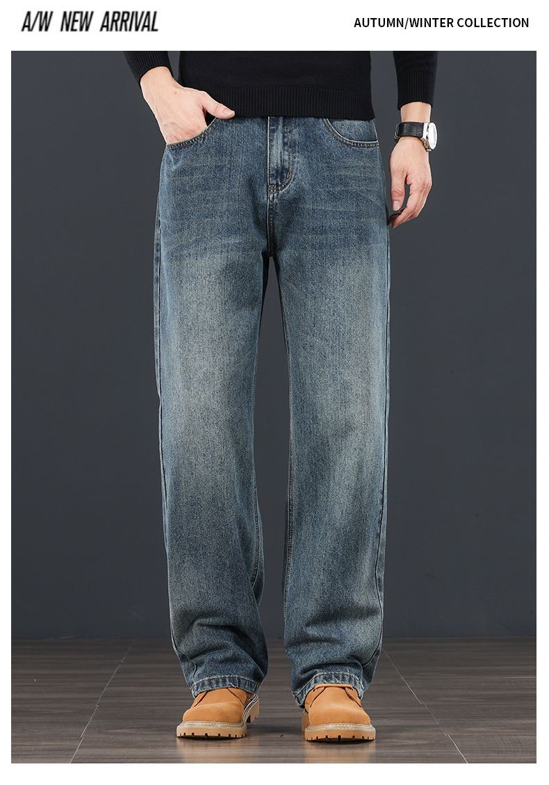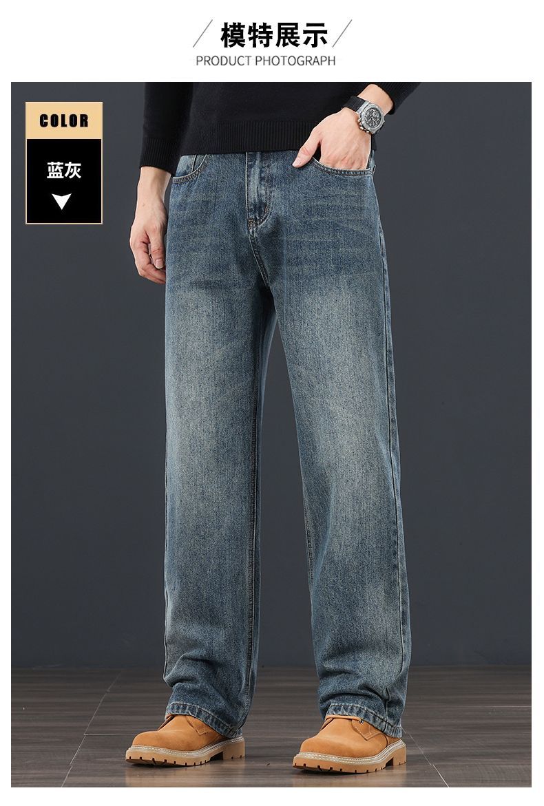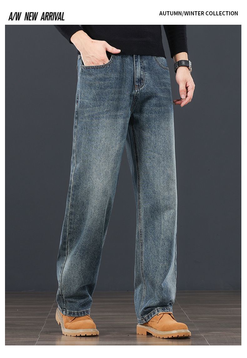 真维斯(Jeanswest)秋冬新款宽松2026直筒潮流百搭男士牛仔裤休闲高端复古裤子 蓝灰色 28
