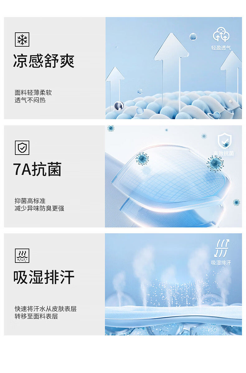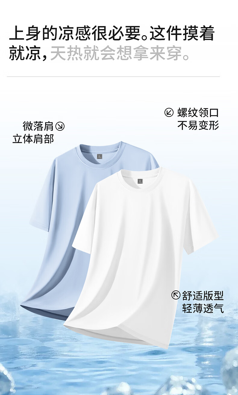 真维斯(Jeanswest)7A抗菌 短袖t恤男凉感半袖2026新款夏季运动轻薄半袖纯色上衣透气 冰蓝 纯色 M