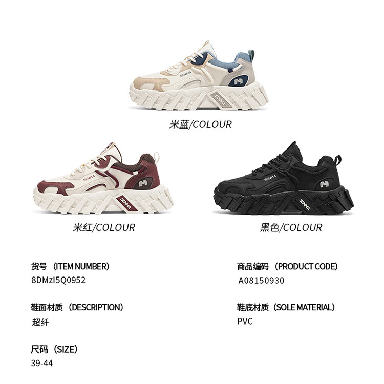 森馬男鞋2026新款春季户外休闲运动跑步鞋男鞋厚底增高防滑耐磨老爹鞋 米兰【基础款】 39 标准码数/现货秒发