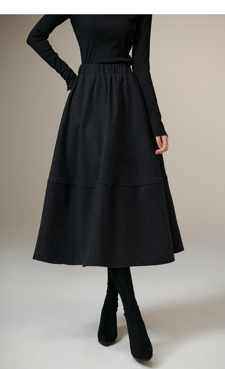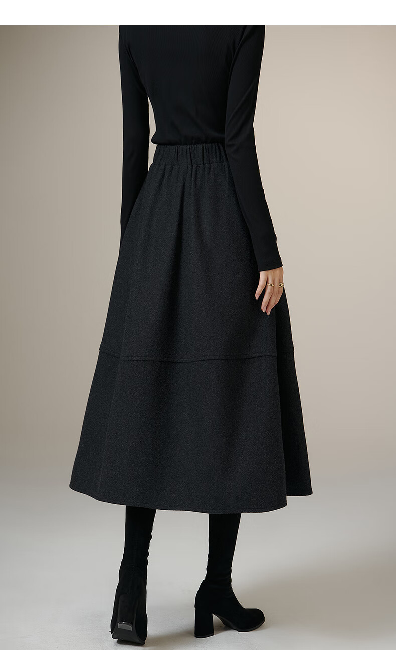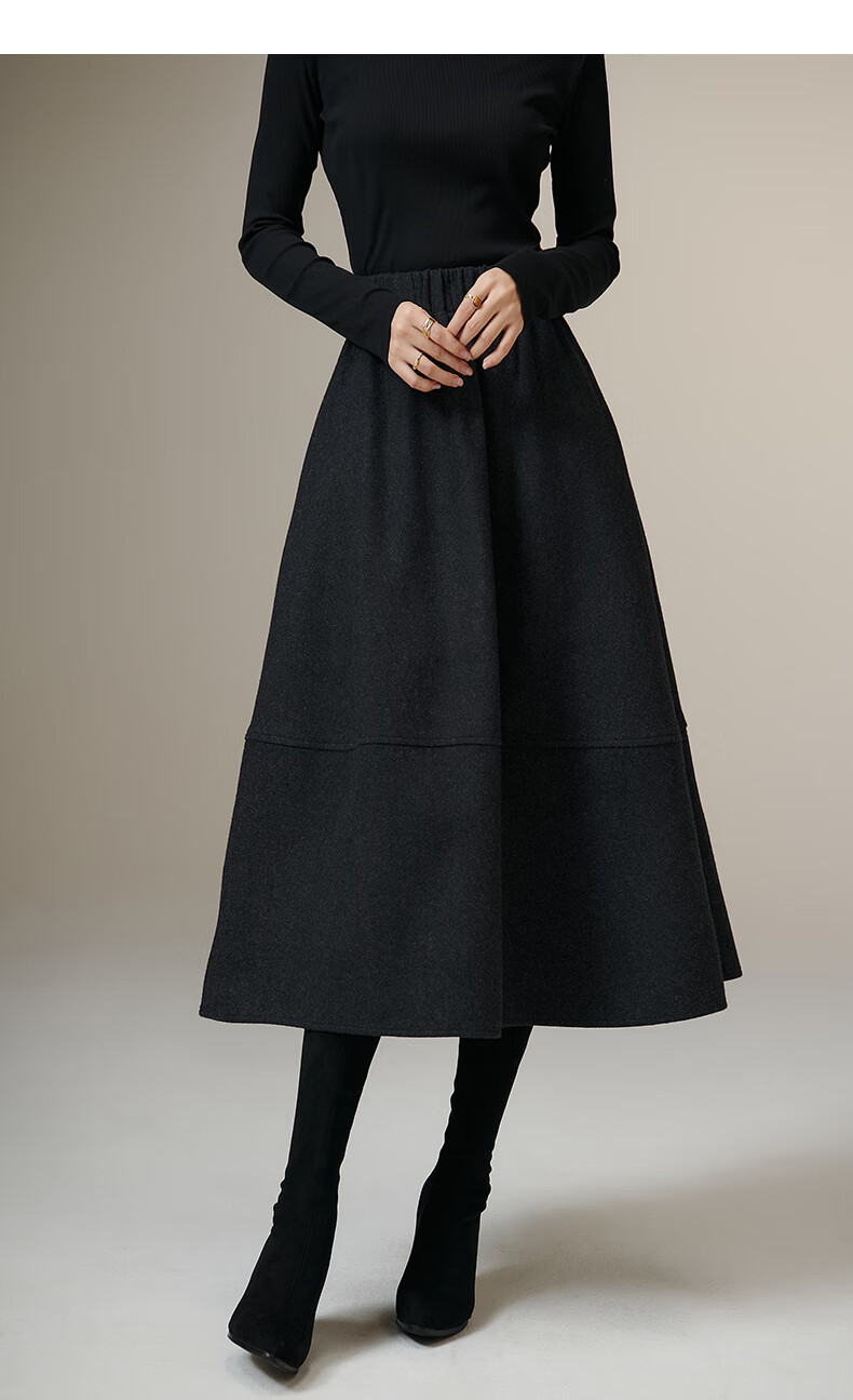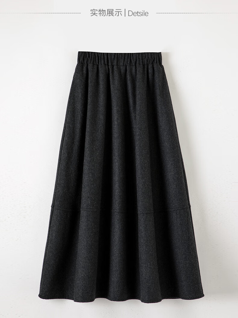 晚白【新品】黑色显瘦a字半身裙冬款百搭显瘦保暖羊毛大摆半裙 深灰色 XL