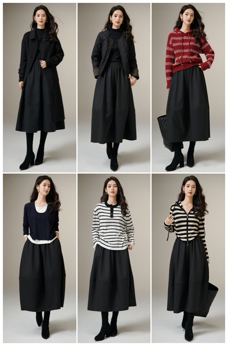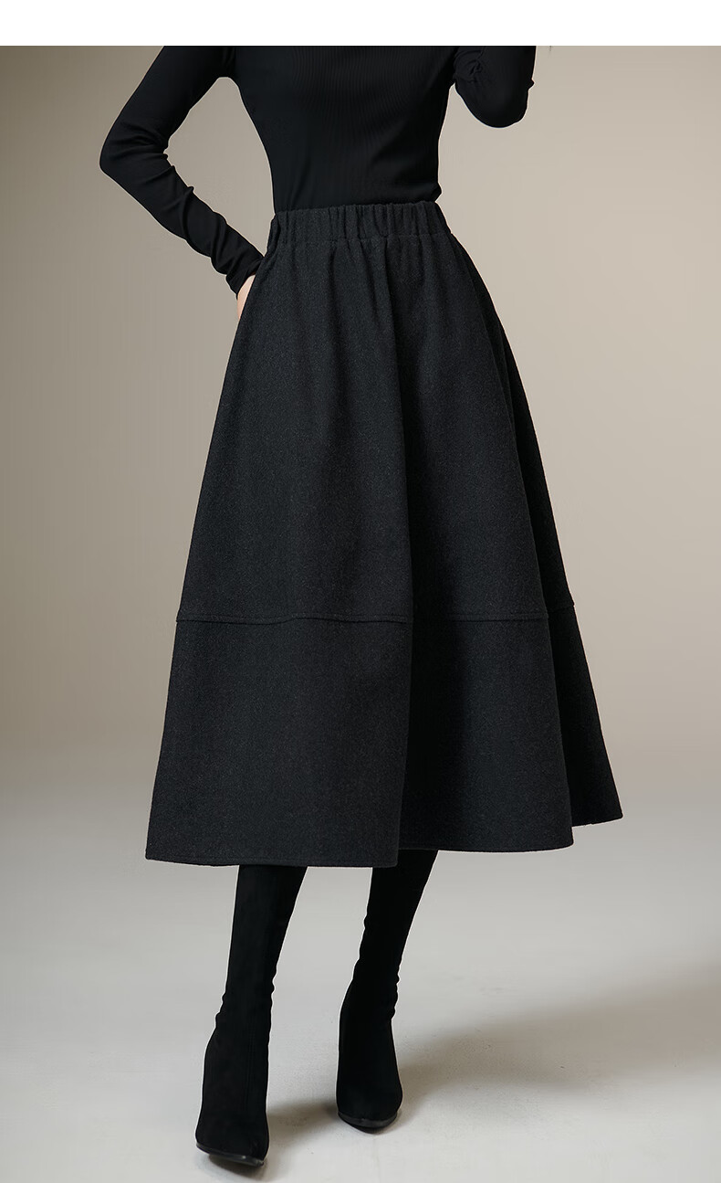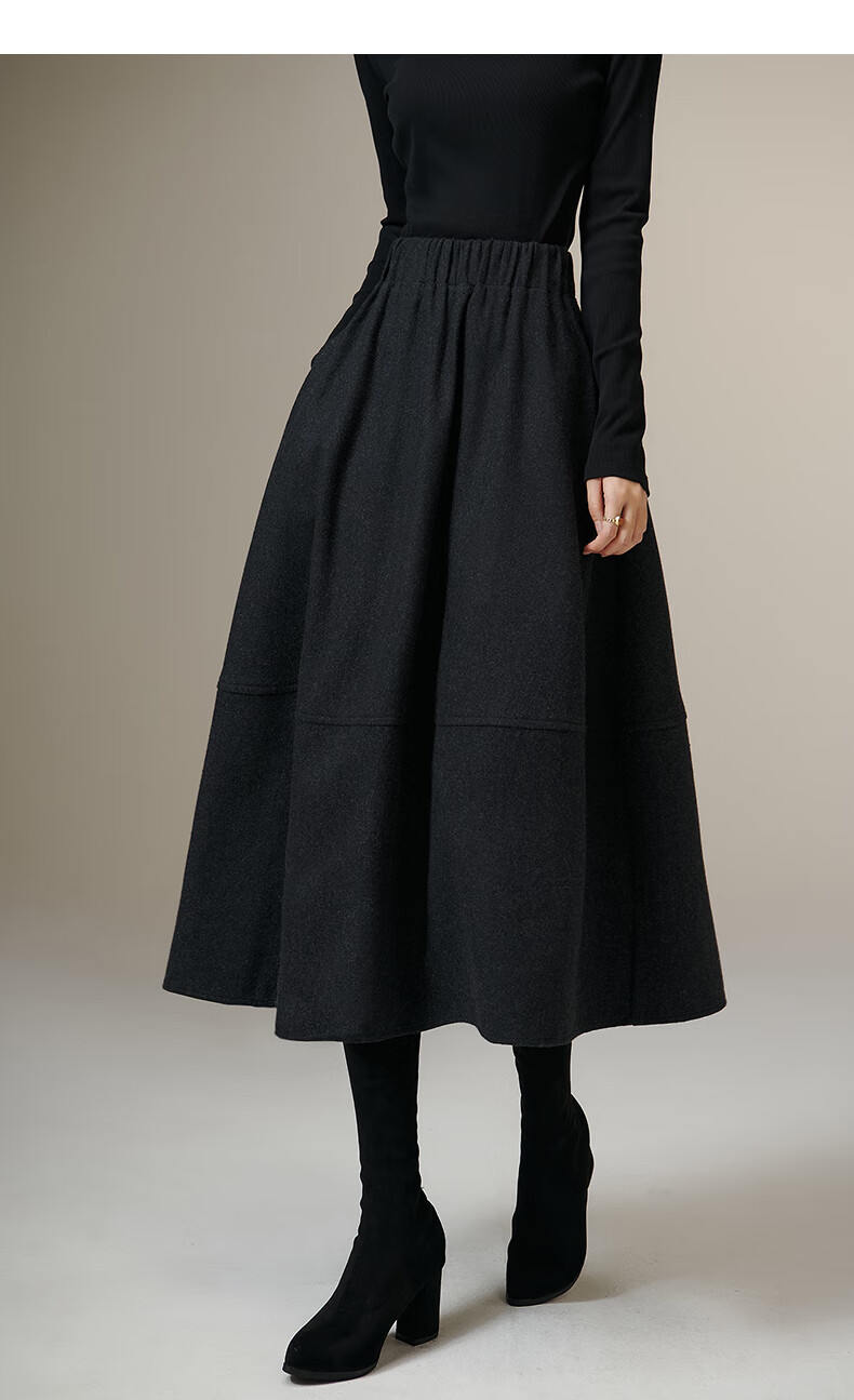 晚白【新品】黑色显瘦a字半身裙冬款百搭显瘦保暖羊毛大摆半裙 深灰色 XL