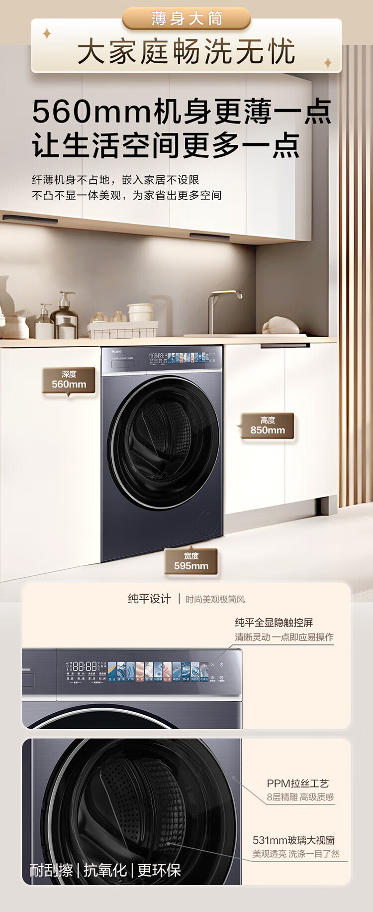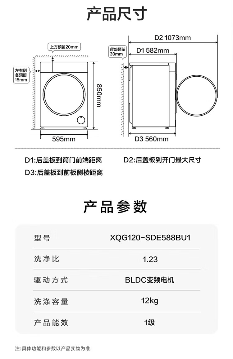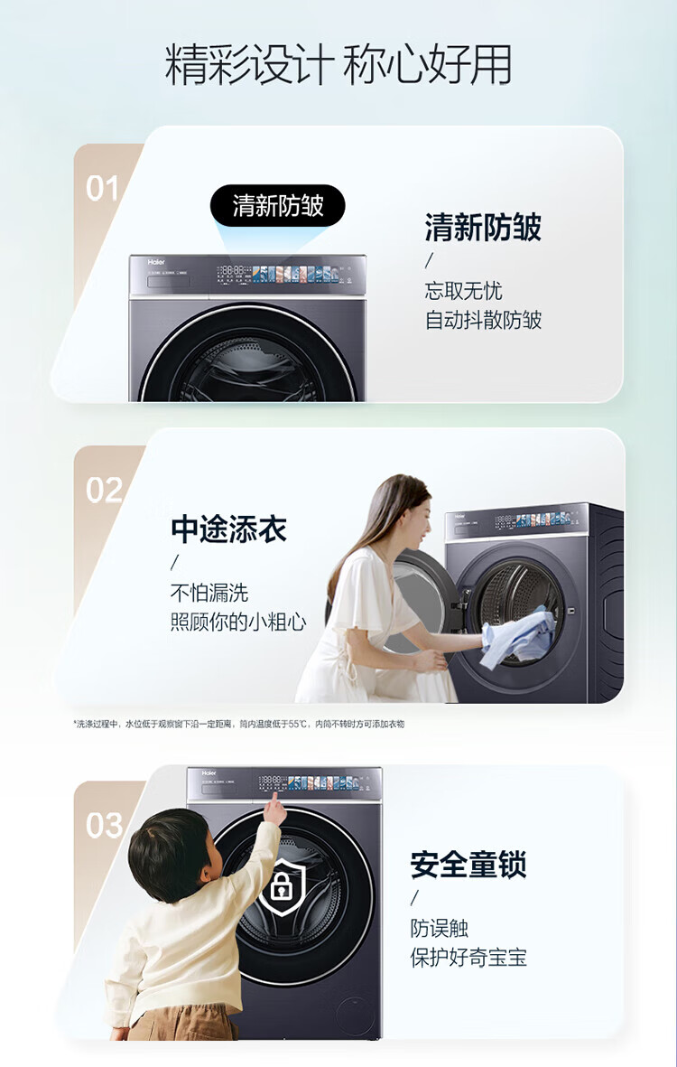 海尔云溪4.0极致超薄款12公斤滚筒洗衣机全自动超薄平嵌家用大容量588一级能效540大筒精华洗 国家补贴 12KG单洗+双智投+540大筒+1.23高洗净比