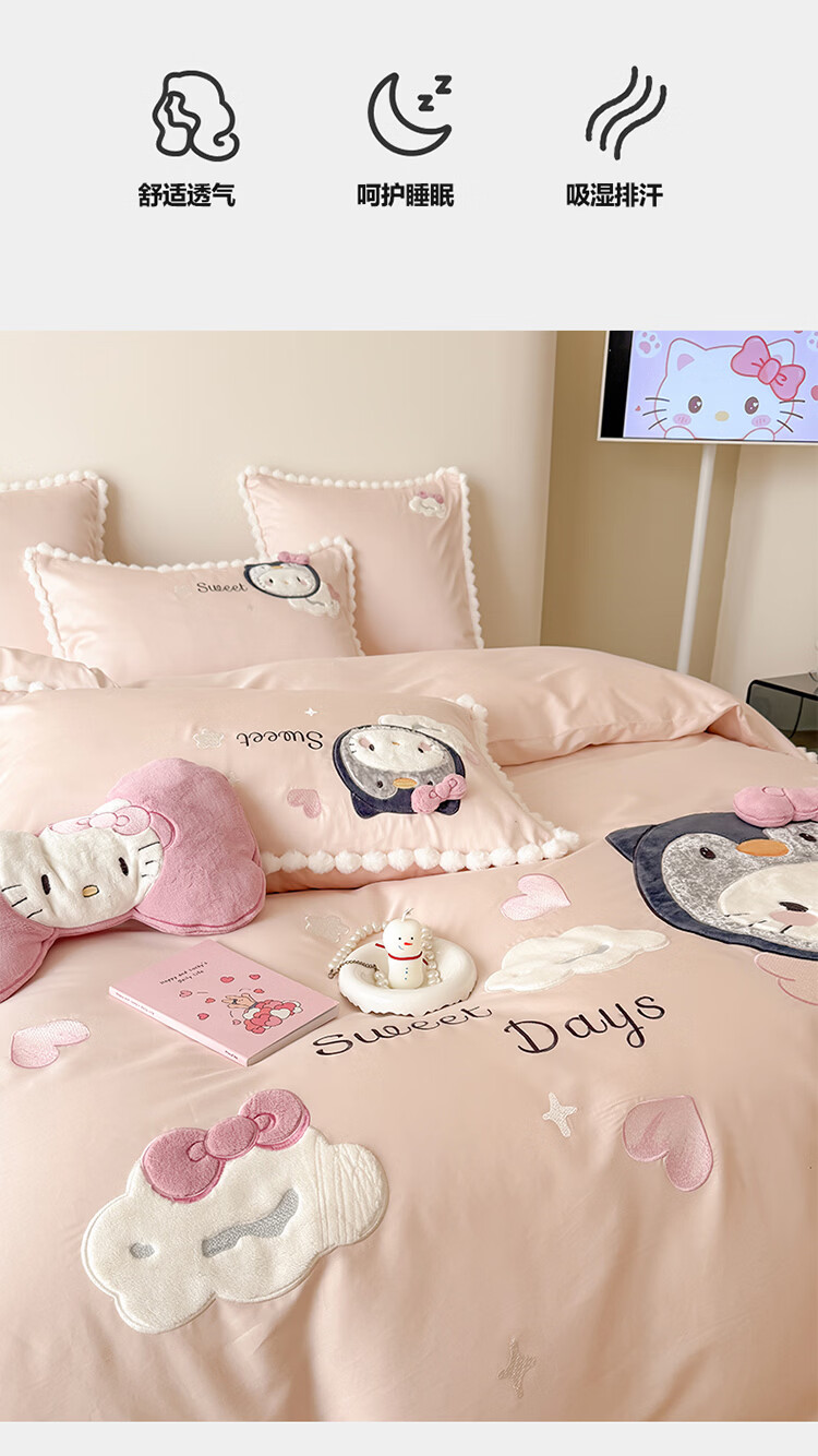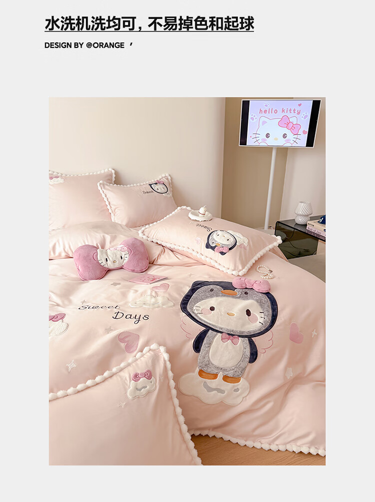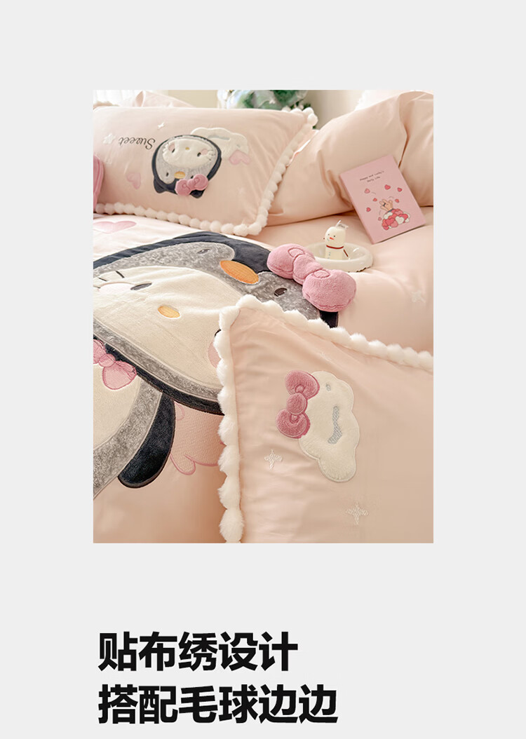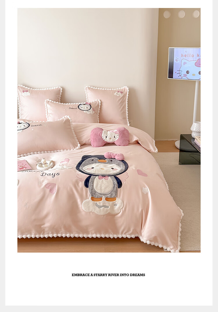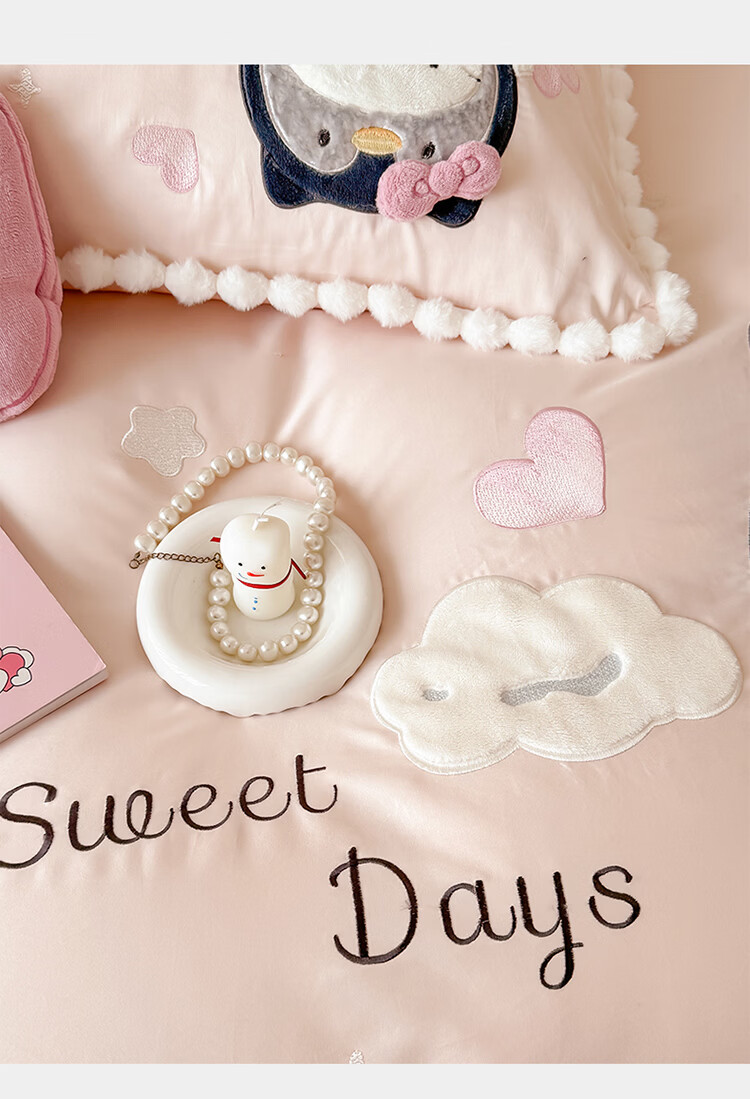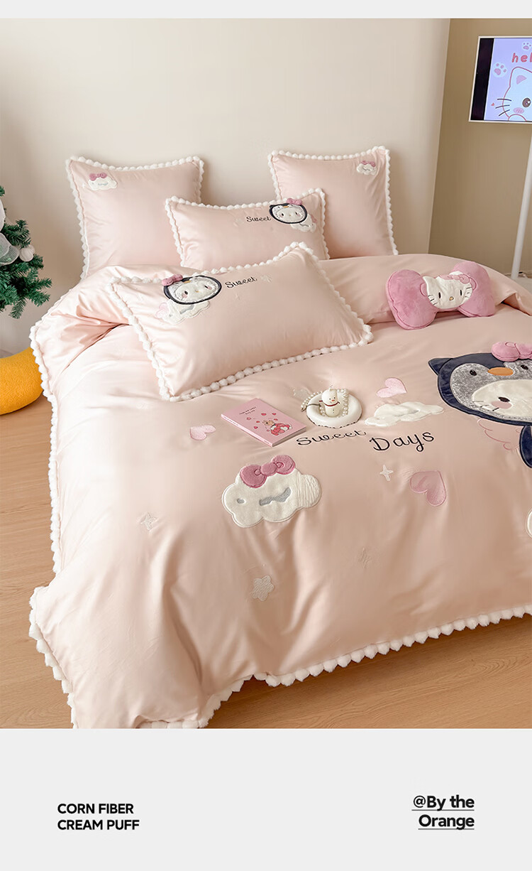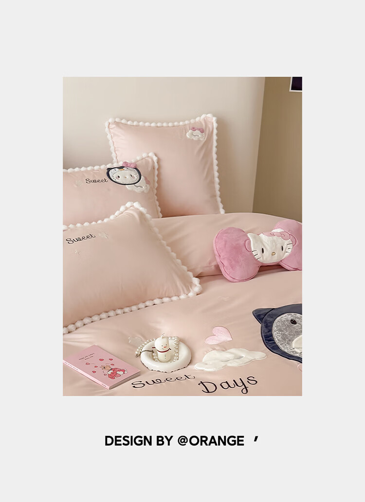ROLAND LIVE新疆长绒棉卡通贴布绣四件套粉色少女心全棉被套床单儿童三件套 WL 新疆长绒棉套件-喵咪酱【送同款抱枕】 1.8米床 床单款 【被套200*230cm】