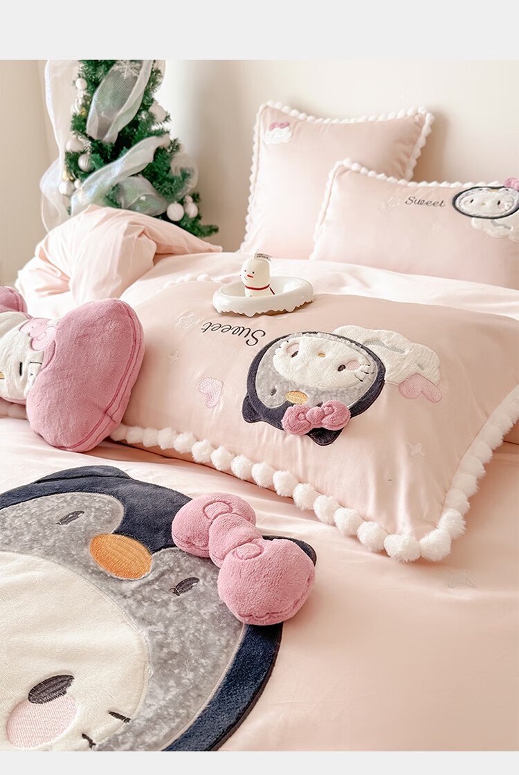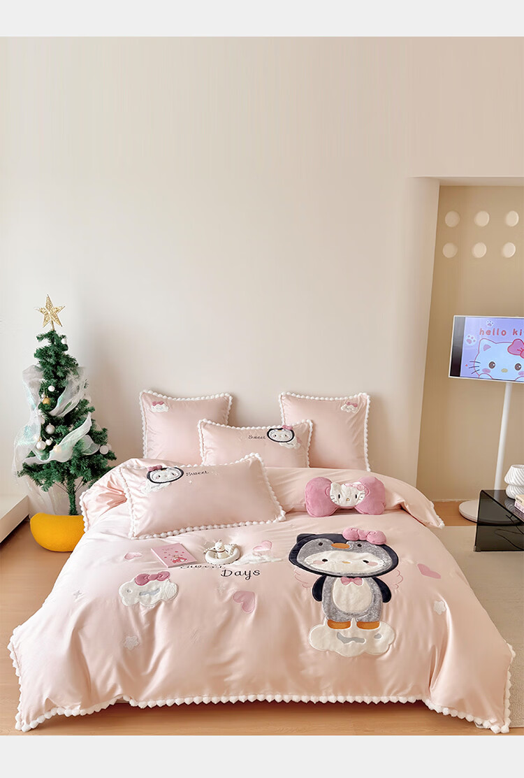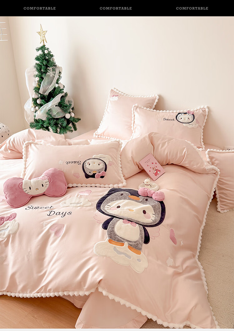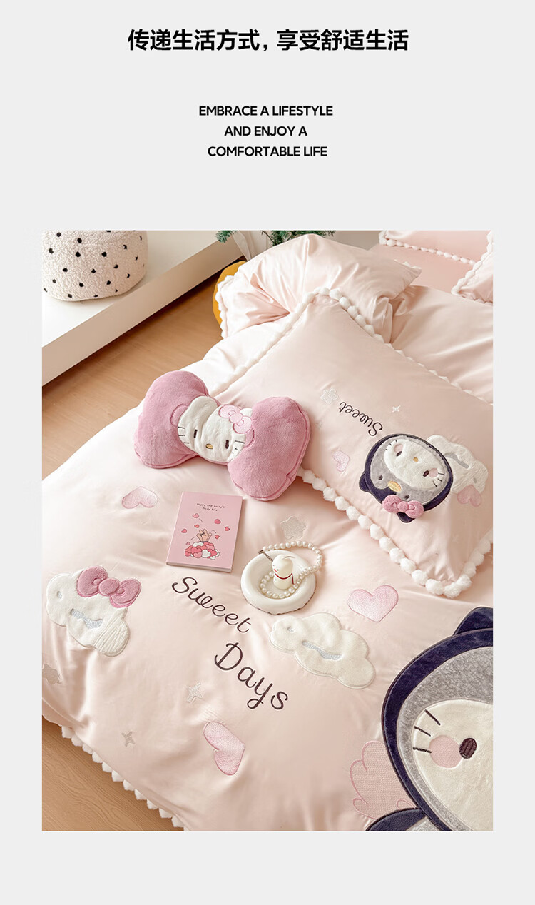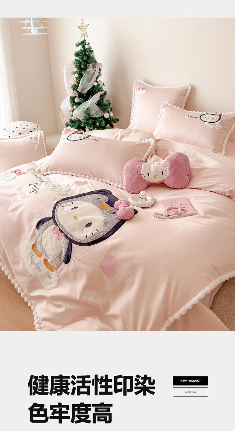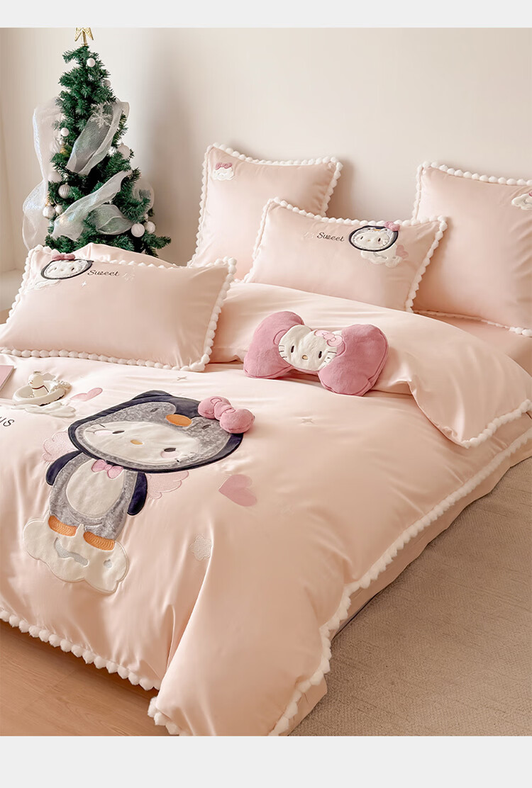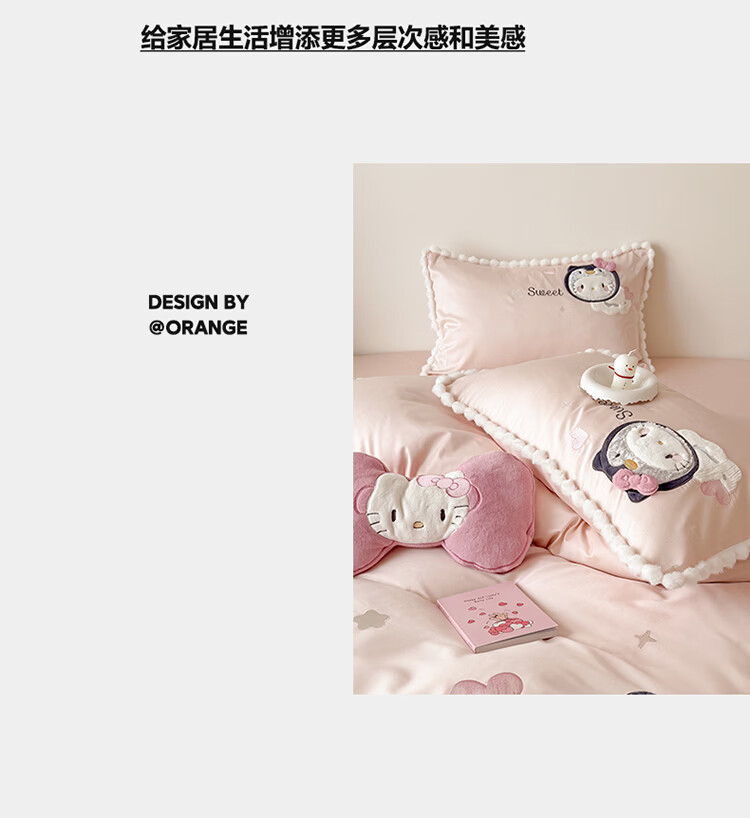 ROLAND LIVE新疆长绒棉卡通贴布绣四件套粉色少女心全棉被套床单儿童三件套 WL 新疆长绒棉套件-喵咪酱【送同款抱枕】 1.8米床 床单款 【被套200*230cm】