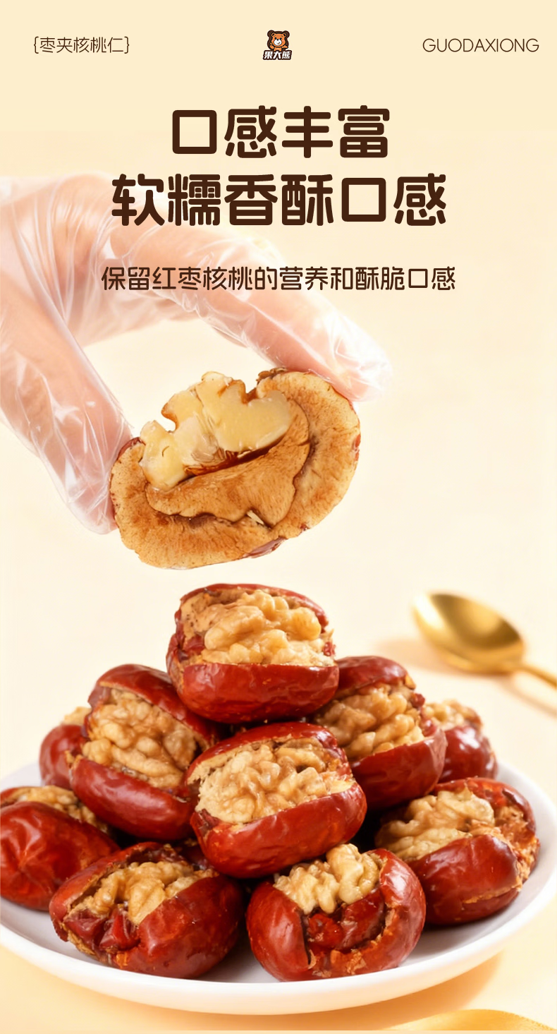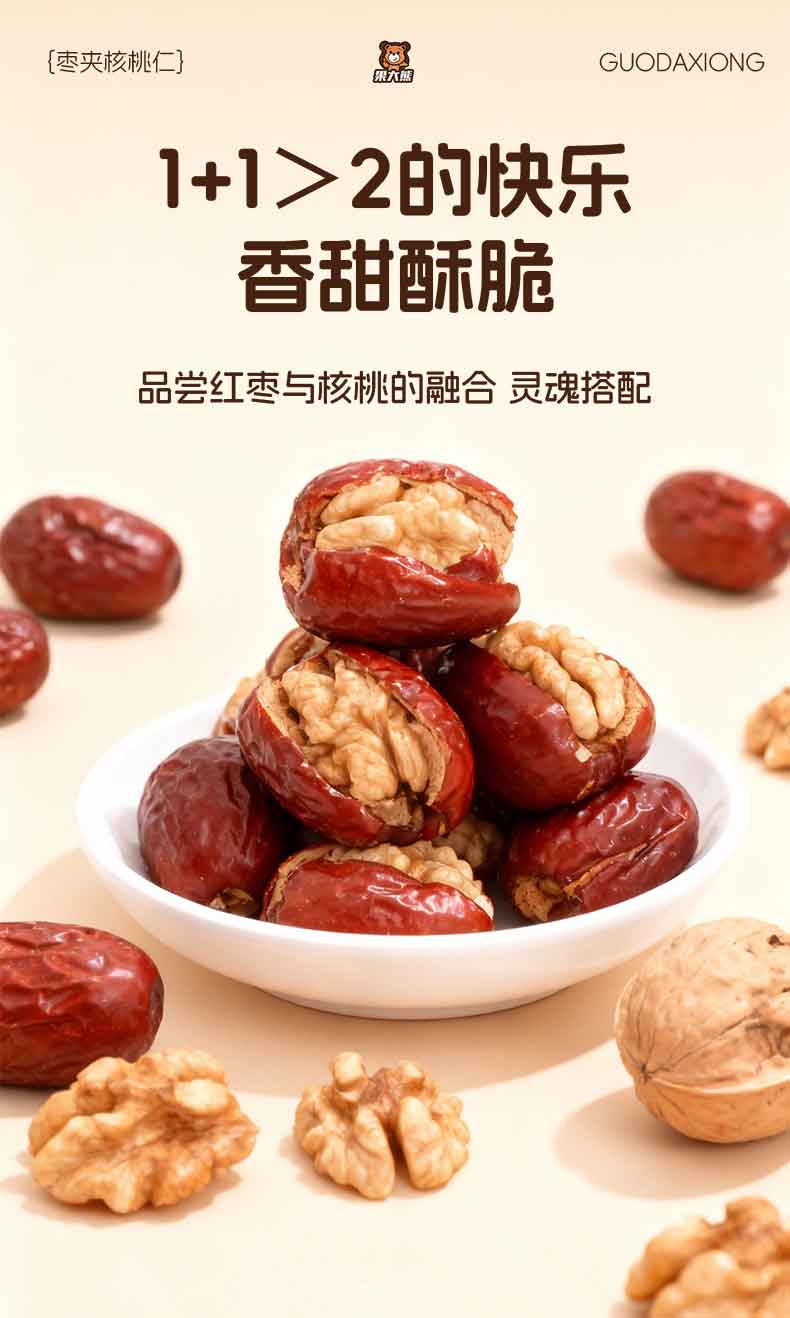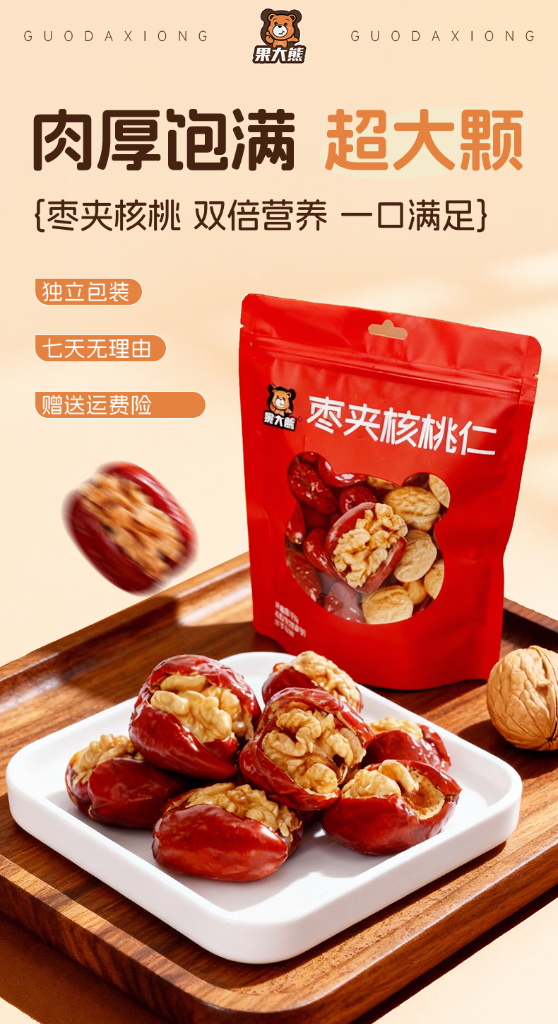 果大熊新款枣夹核桃方便独立包装新疆和田大枣纸皮核桃解馋办公室零食 1000g(超值装)