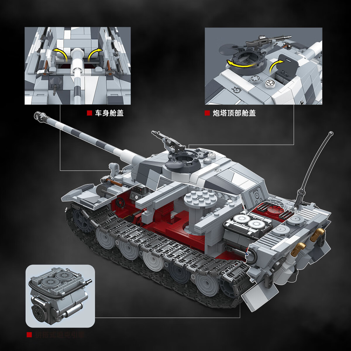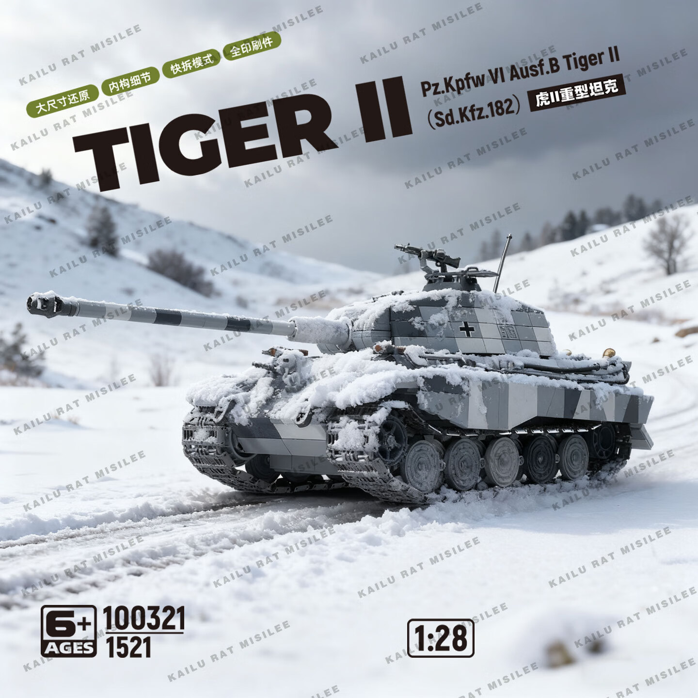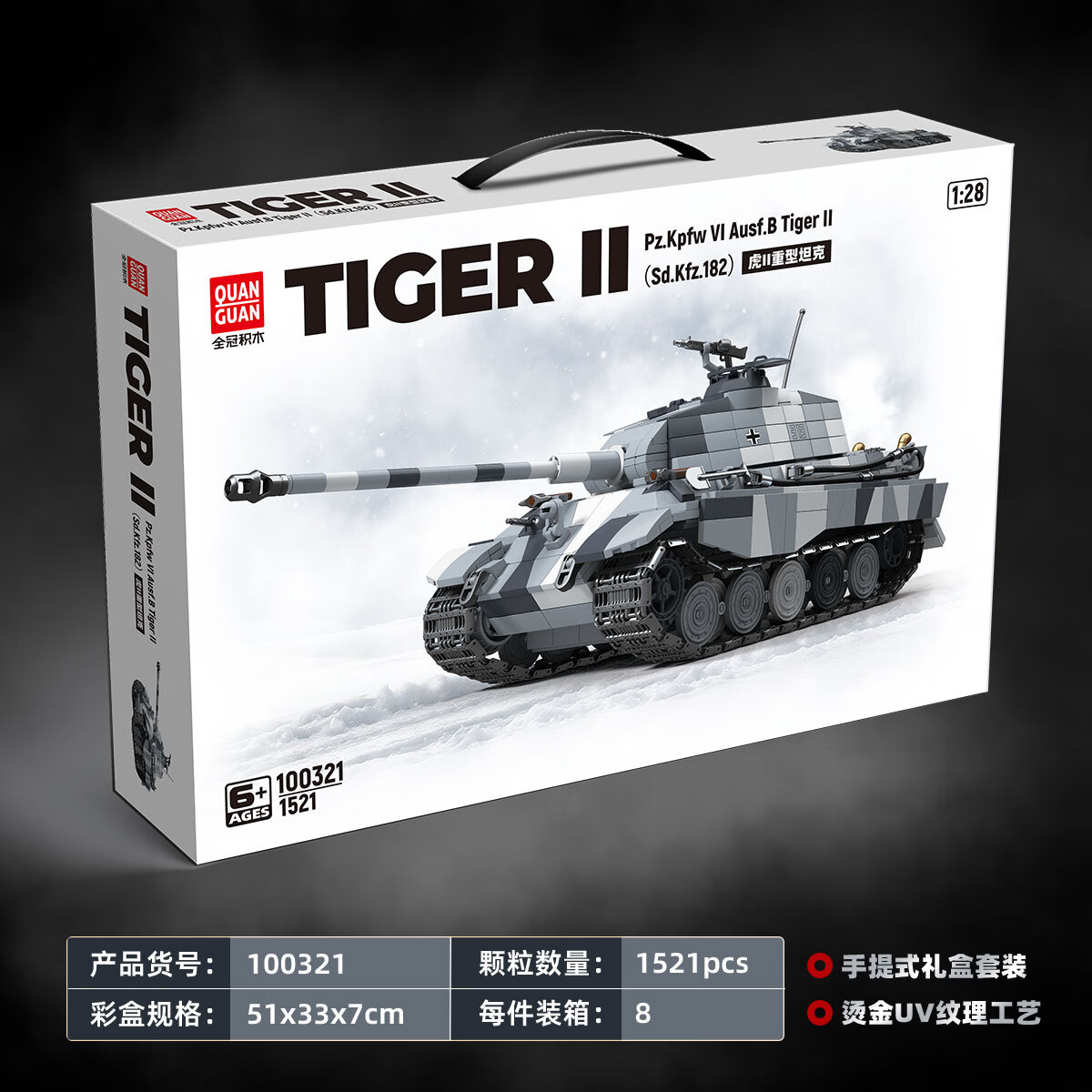 全冠积木二战军事积木德国白色虎王虎II重型坦克早期型模型拼装儿童玩具 德国白色虎王早期型【惊喜不断】