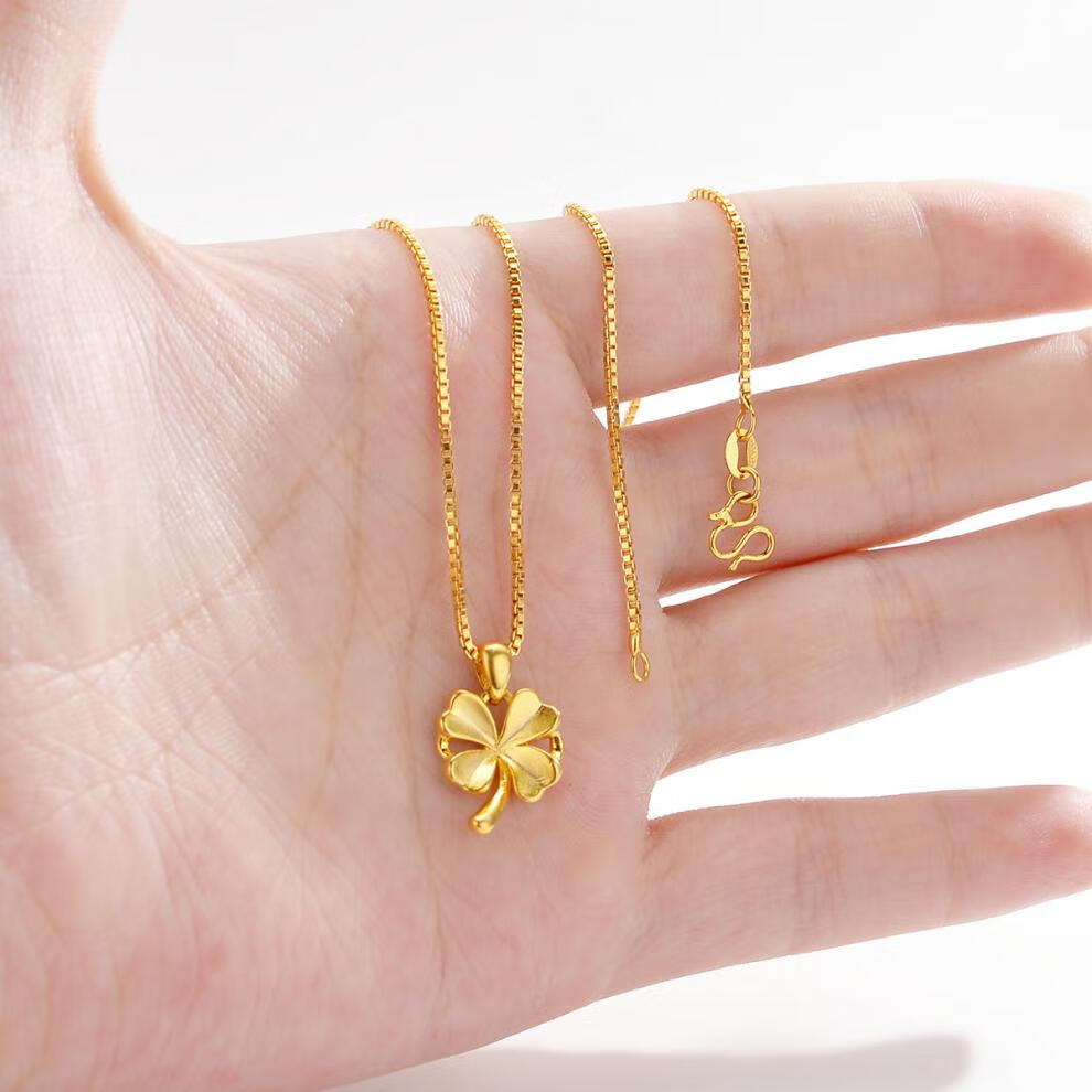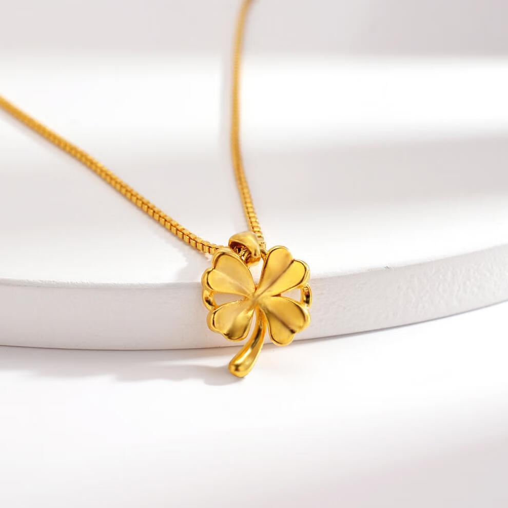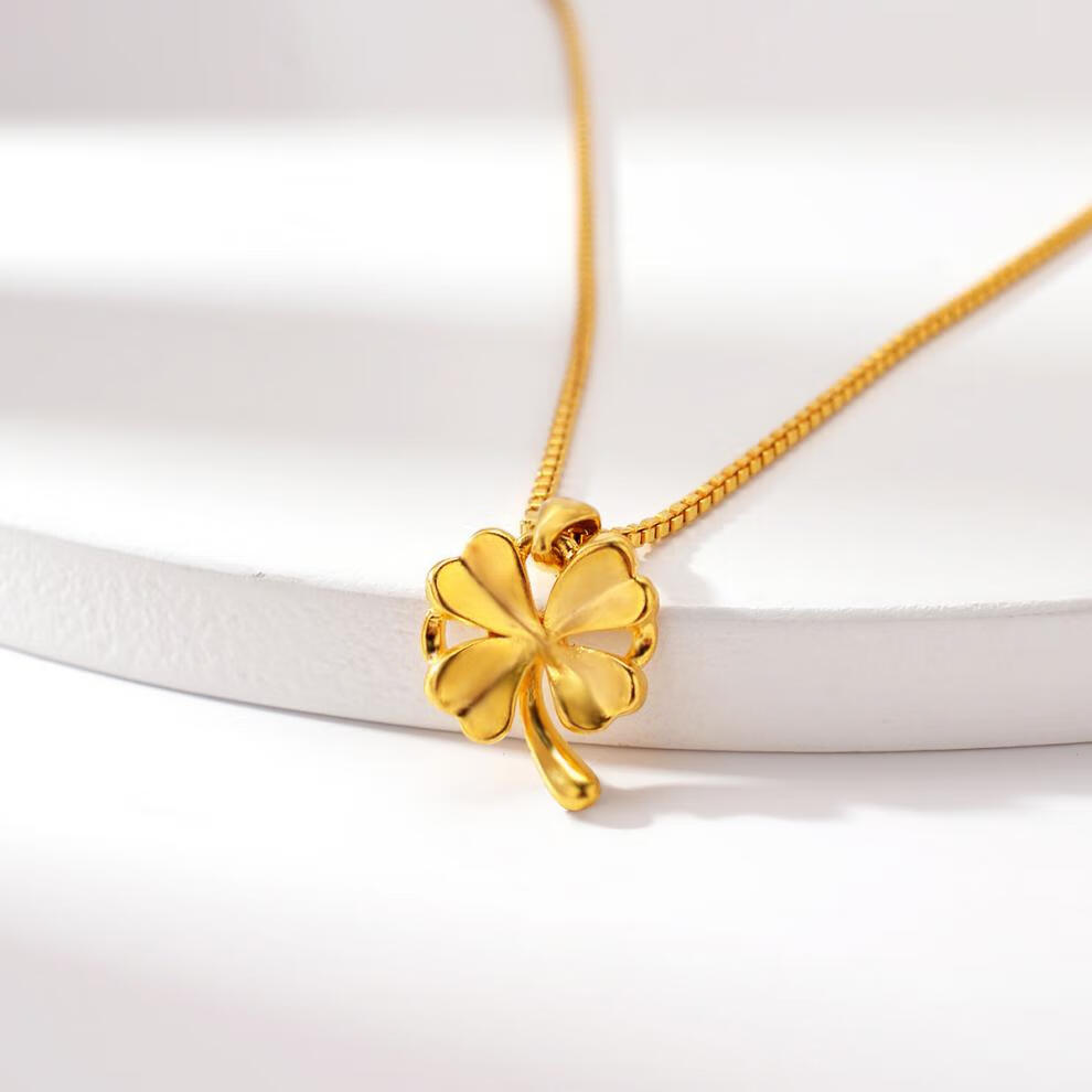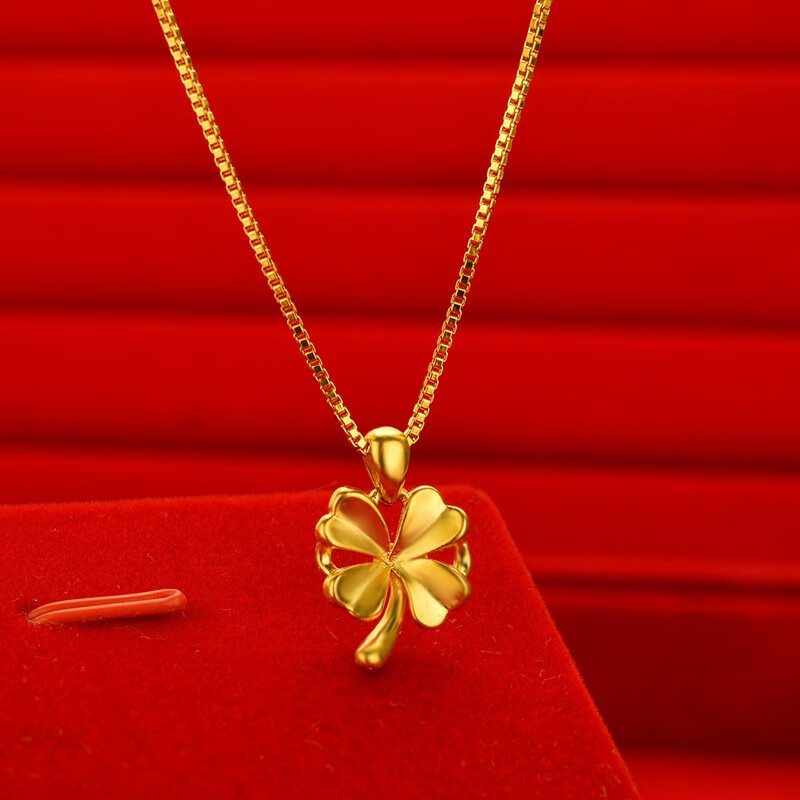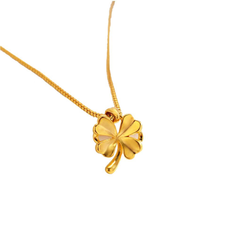网红款金版四叶草项链 越南沙金女款仿金幸运草锁骨项链 吊坠+限时送链