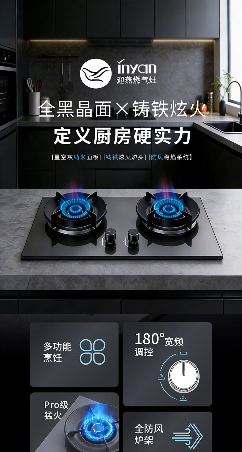inyan全铜炫火迎燕燃气灶具双灶嵌入式煤气灶天然气台式猛火灶家用大火力一级能效厨房 液化气20Y 纯铜火盖+防风聚能+防爆纳米面板 高配款 SL05HM