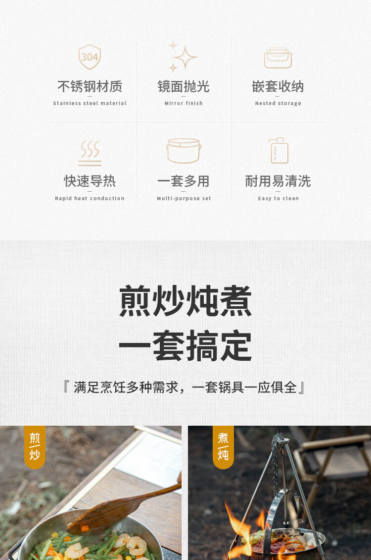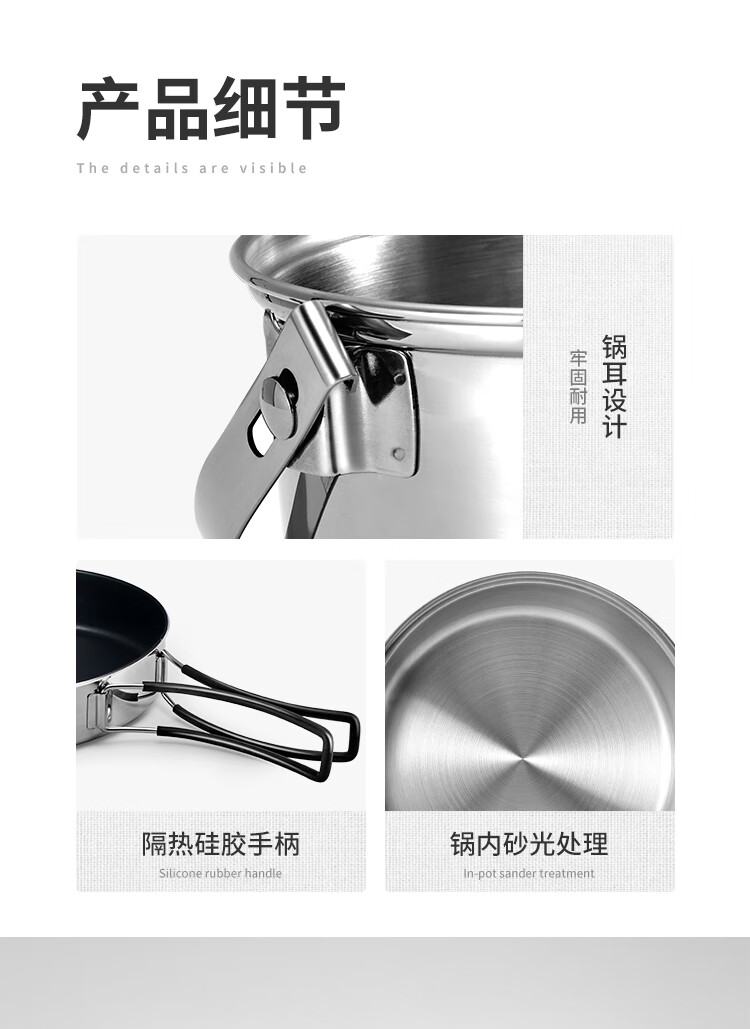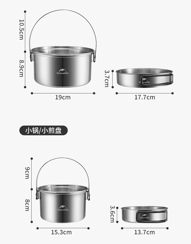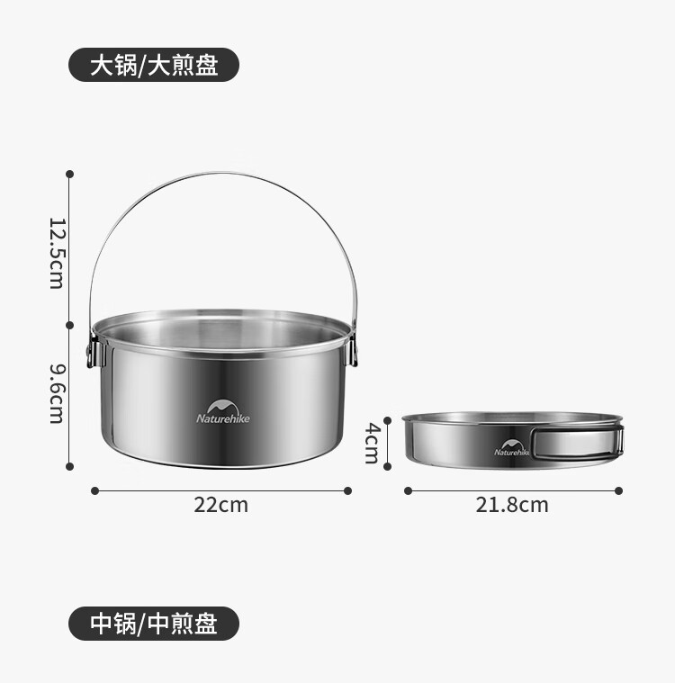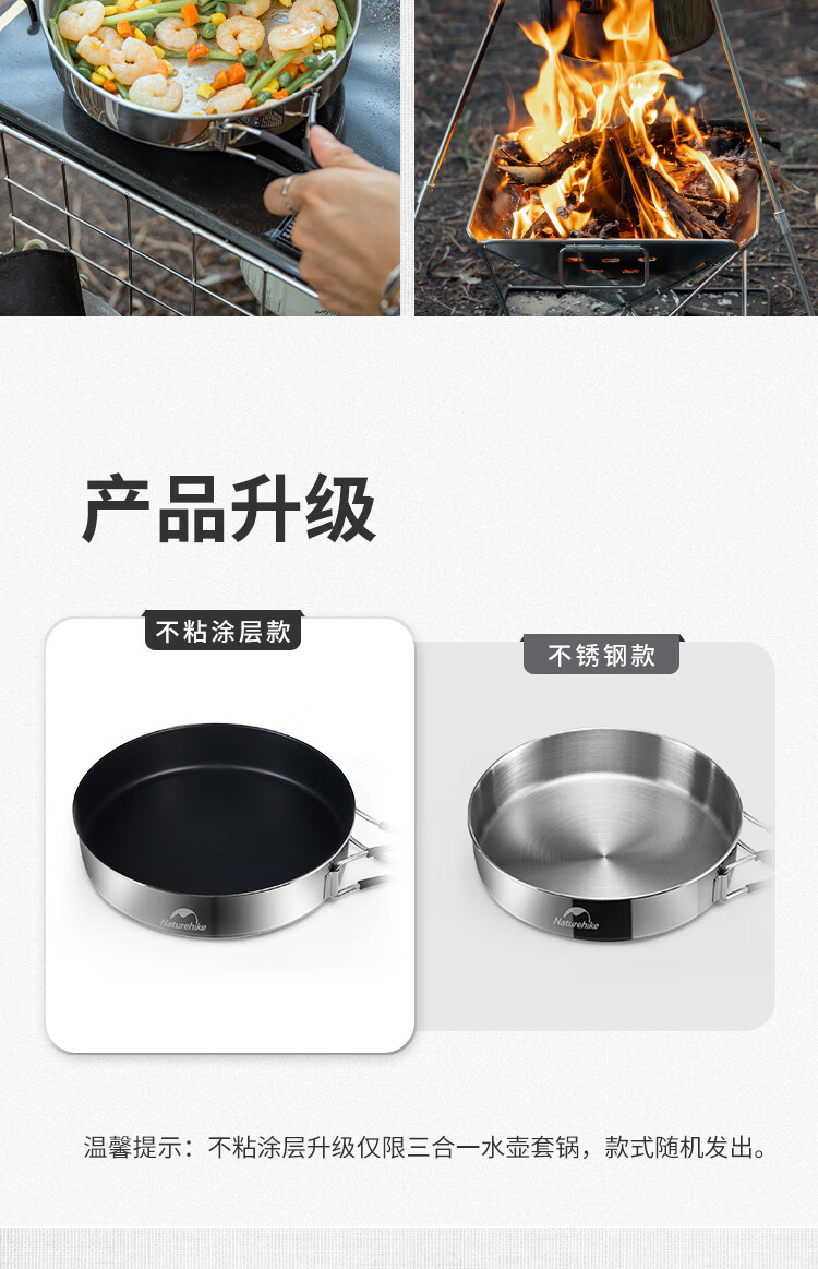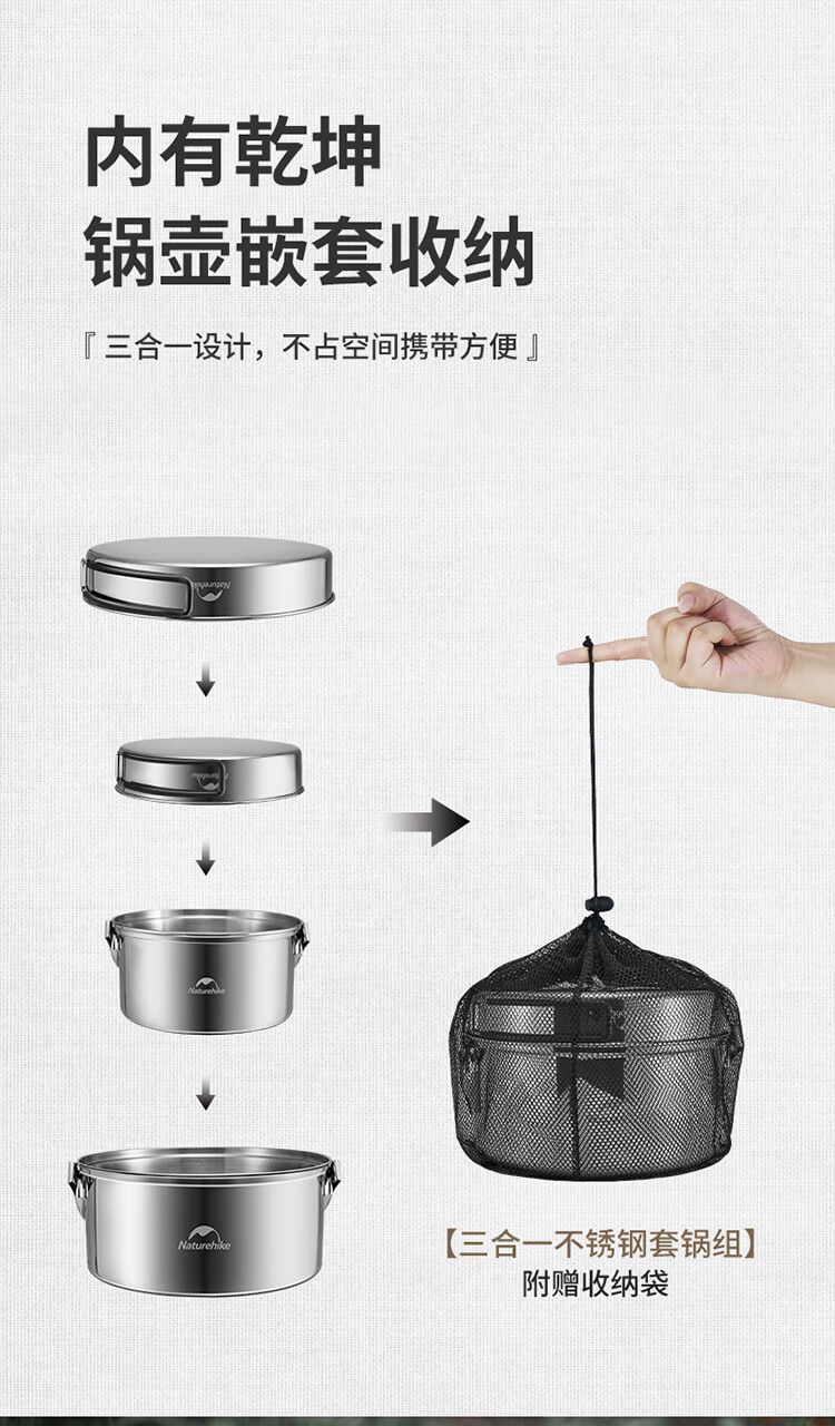 Naturehike挪客三合一不锈钢套锅便携户外露营野炊炊具厨具锅具 不锈钢本色(套锅组)