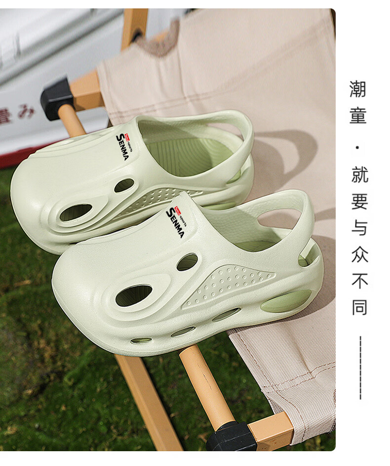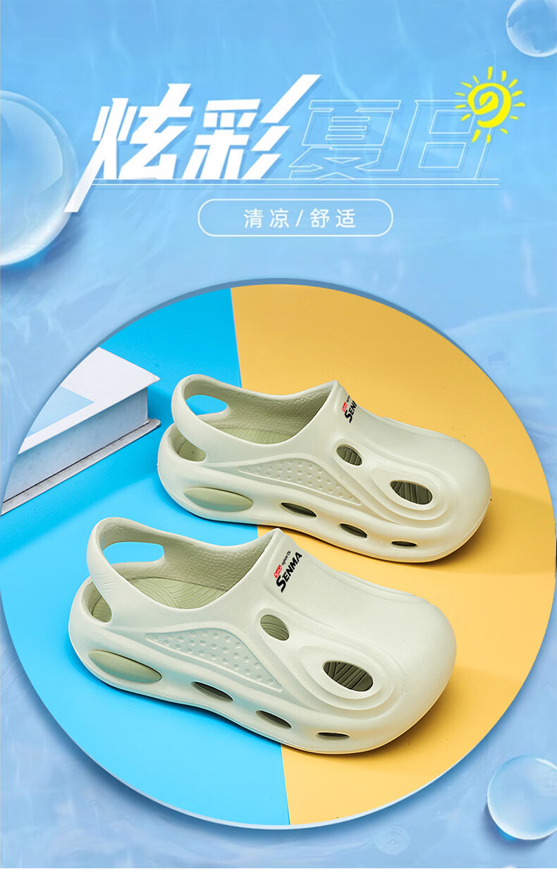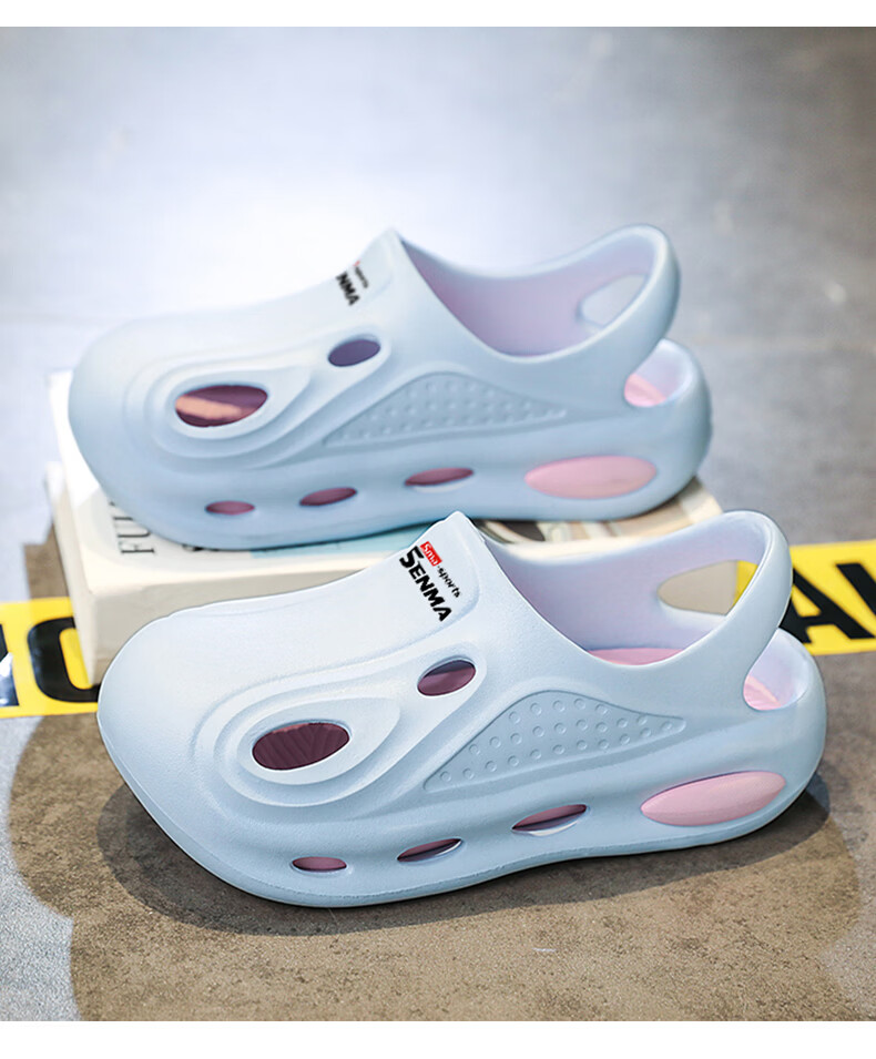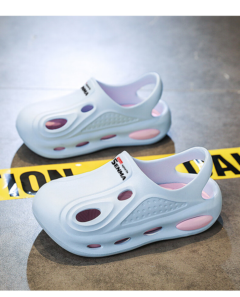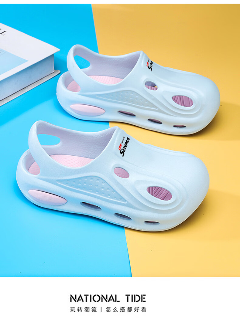 森馬儿童溯溪凉鞋男童女童一脚蹬防滑凉拖鞋夏季2026新款中大童洞洞鞋 蓝粉【基础款】 30-31 【现货秒发】