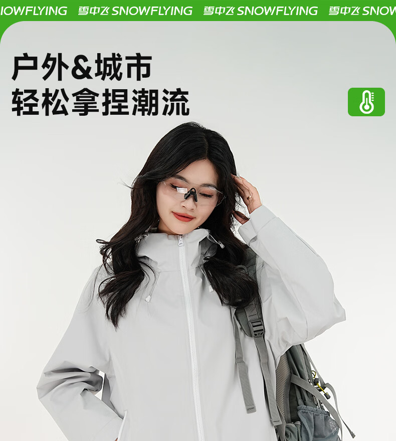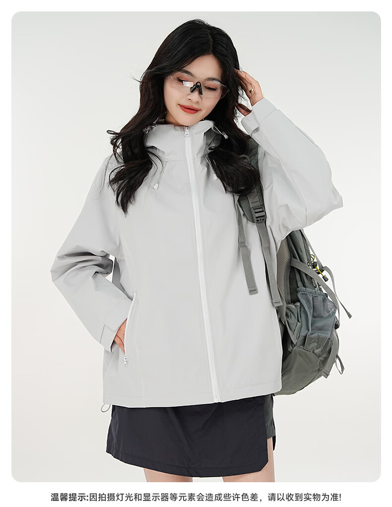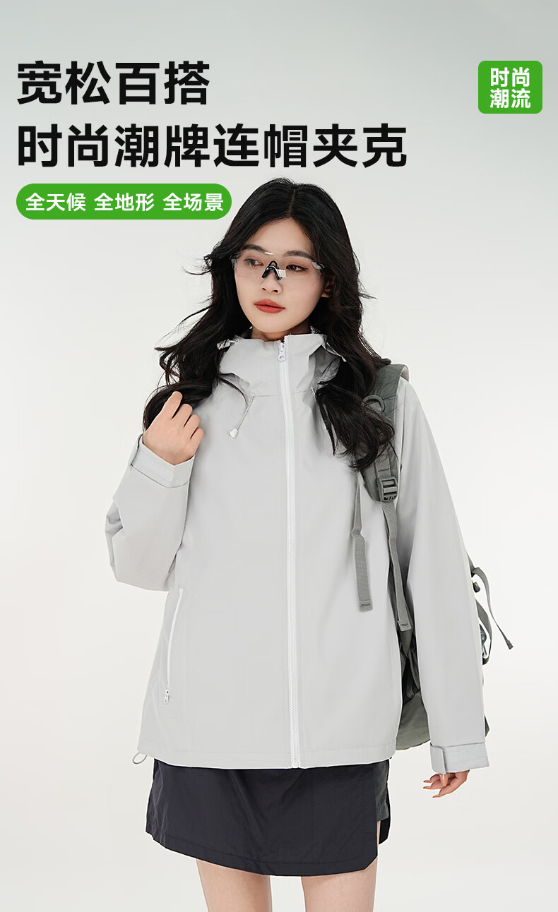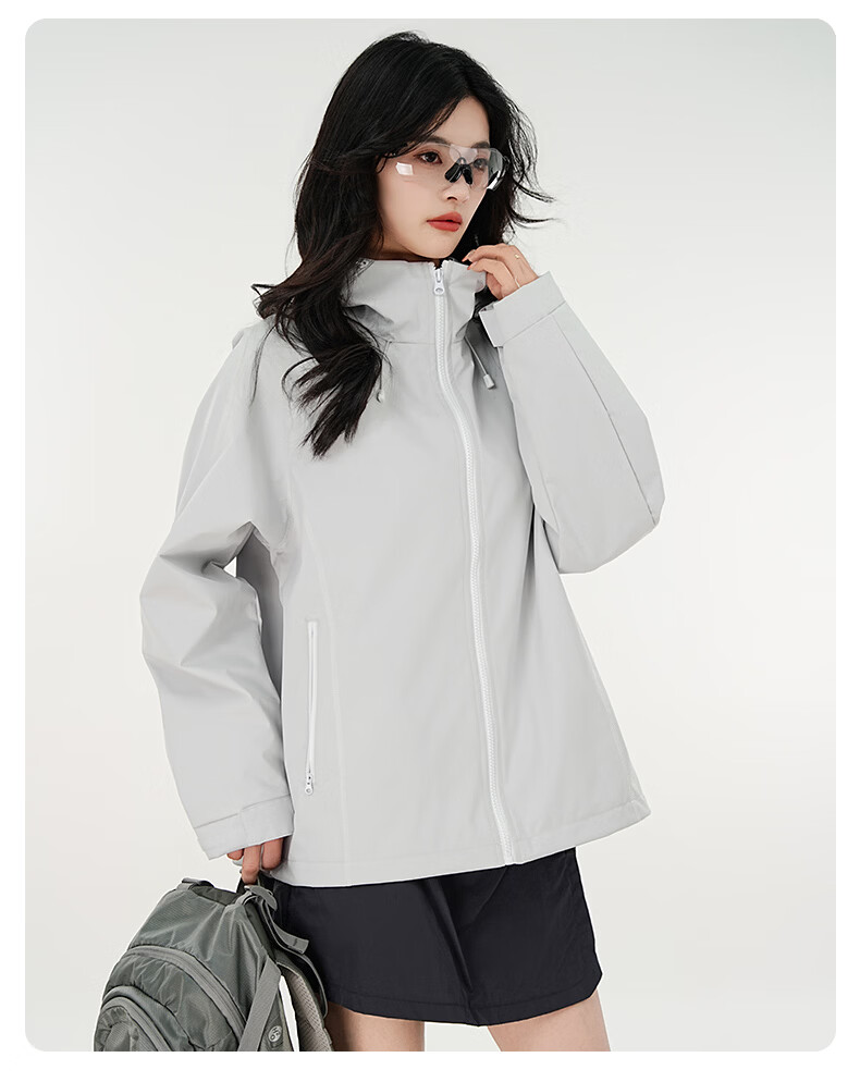 雪中飞防水冲锋衣款式男女夹克2026新款户外百搭情侣春秋休闲潮流外套 浅灰 165/84A S(85-110斤)