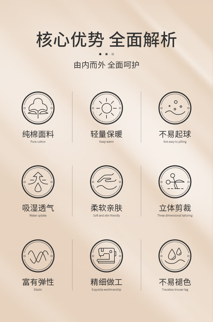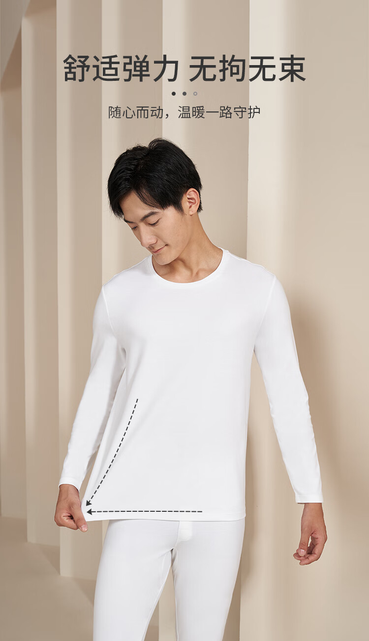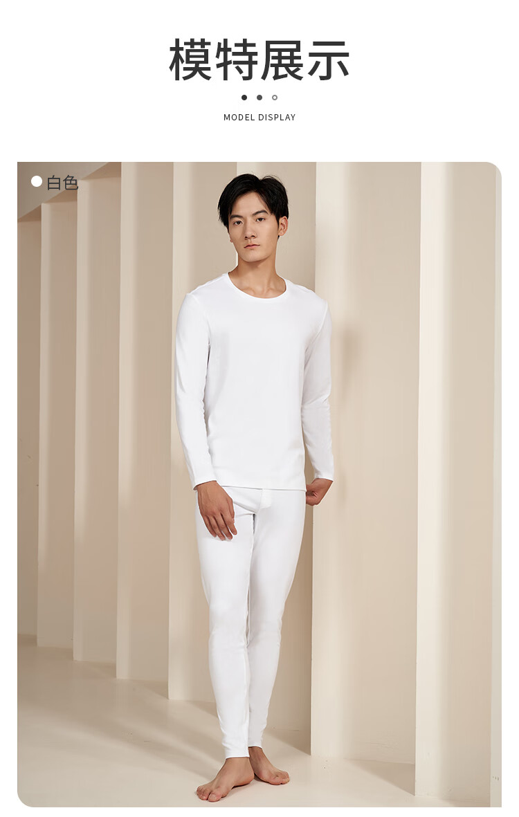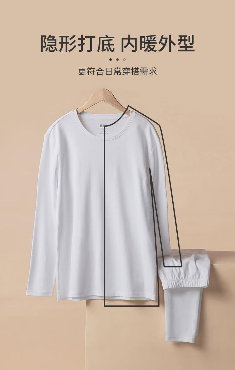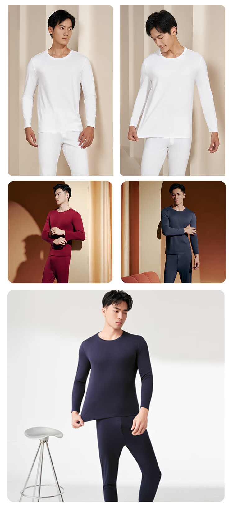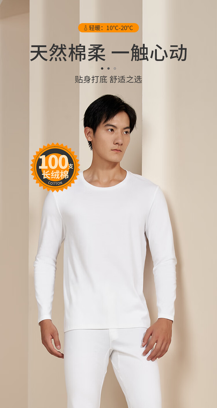 宜而爽【高档100支】100%纯棉保暖内衣套装男士高支圆领全棉秋衣秋裤