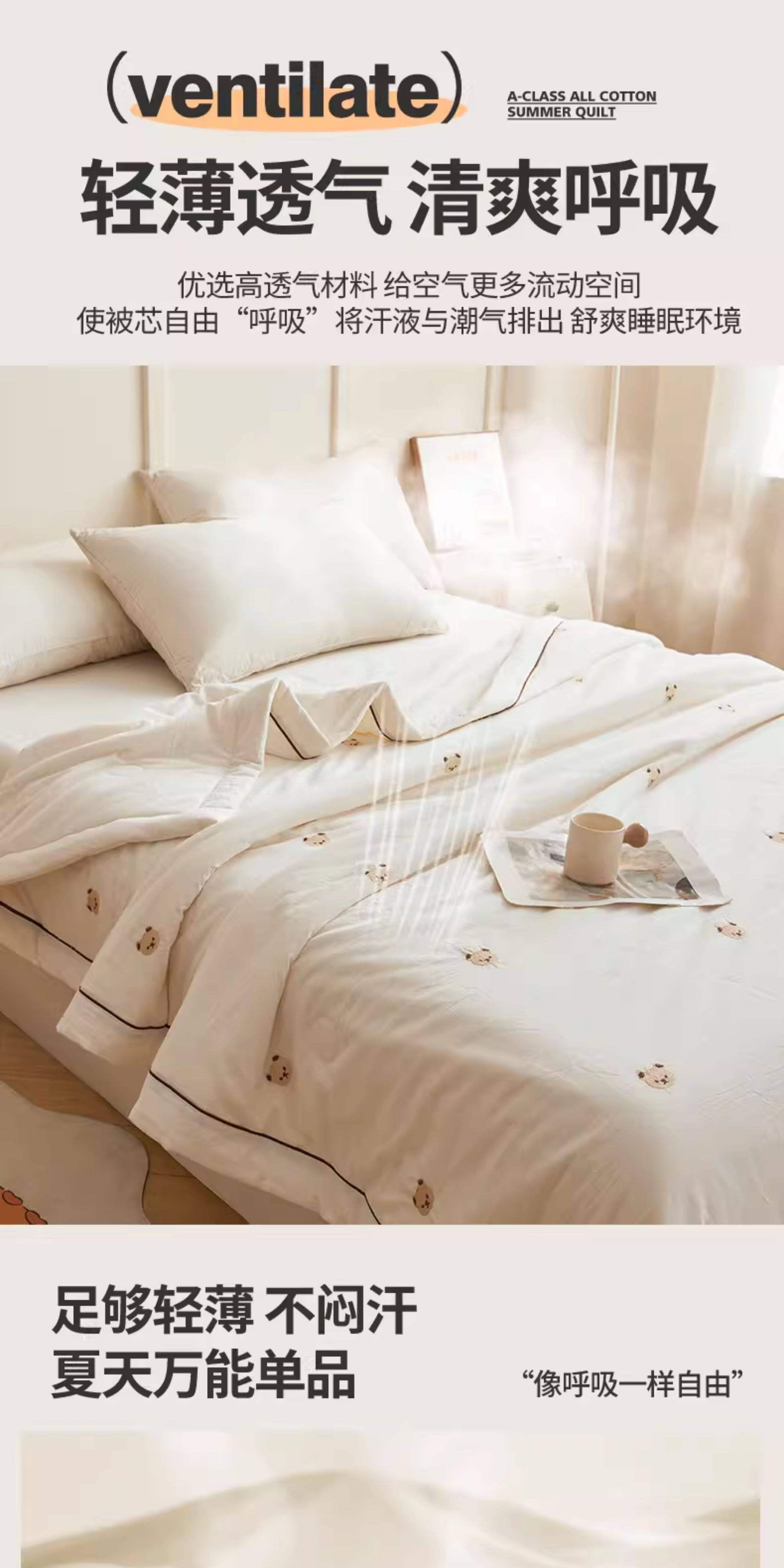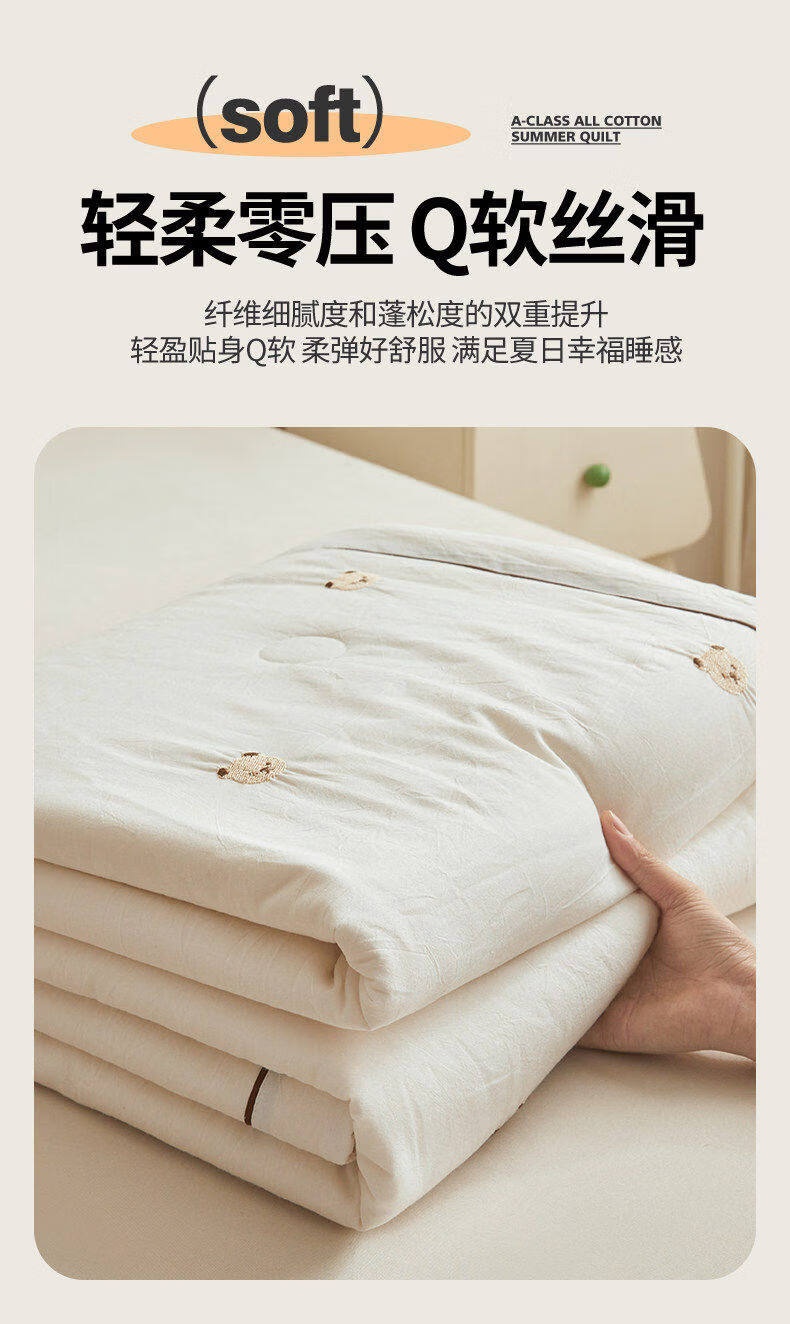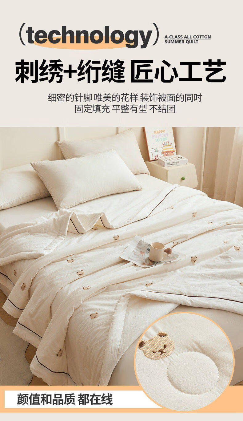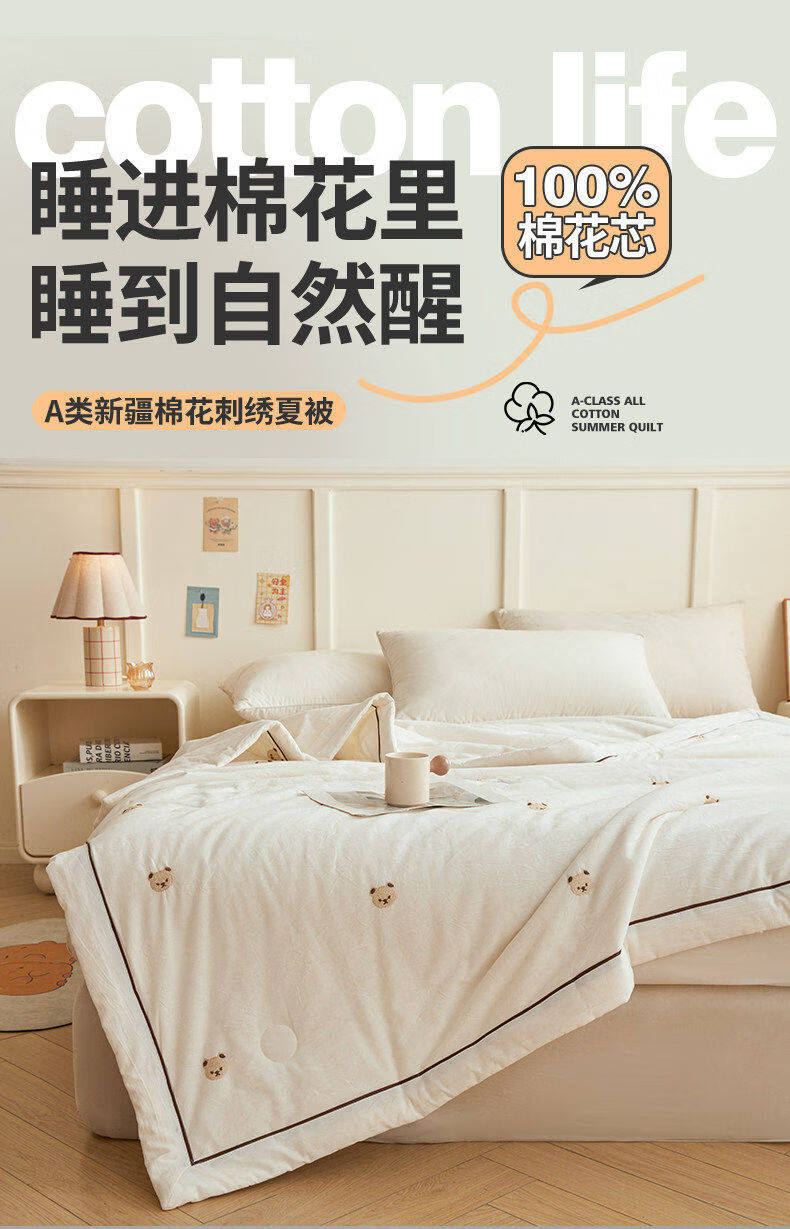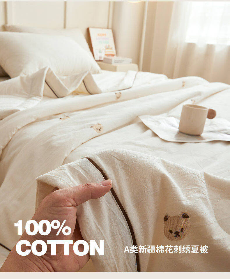 猫人(MiiOW)A类刺绣纯棉空调被子夏凉被100%棉花被芯双面可机洗夏季单双人被 熊博士-奶白【A类裸睡级面料】 150*200cm-单人夏被【100%新疆棉花填充更柔软】