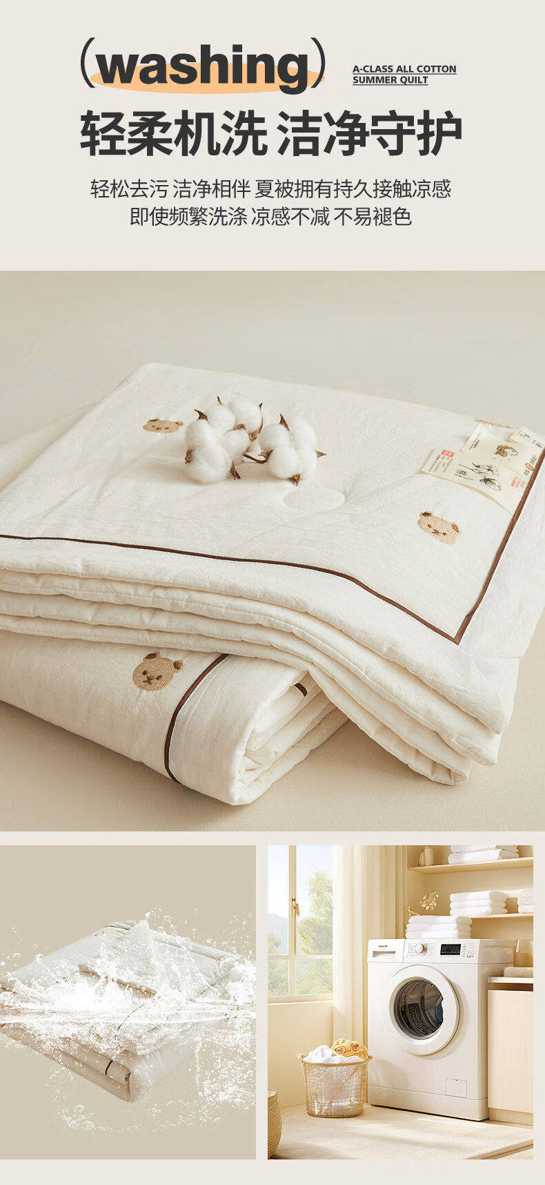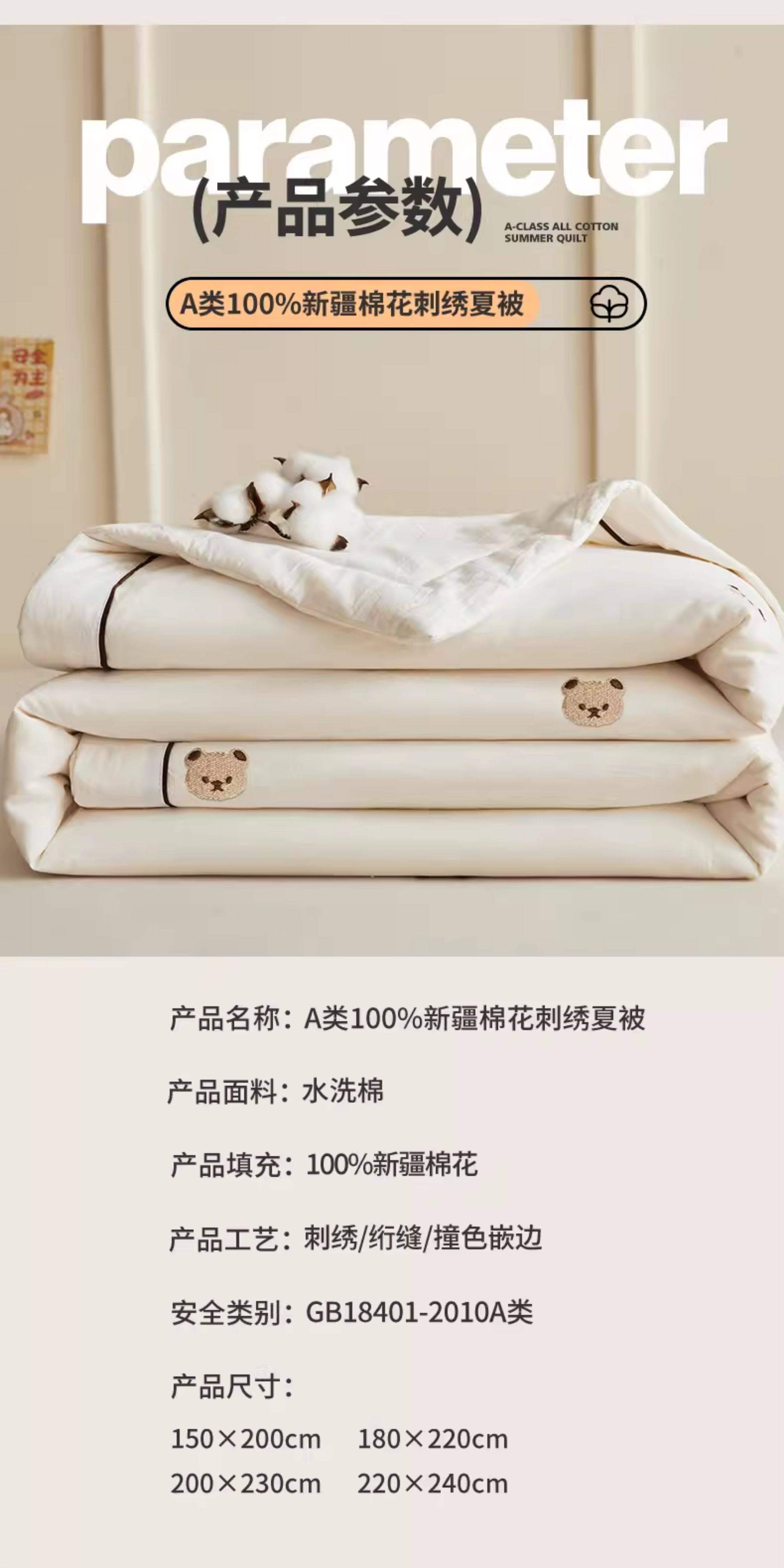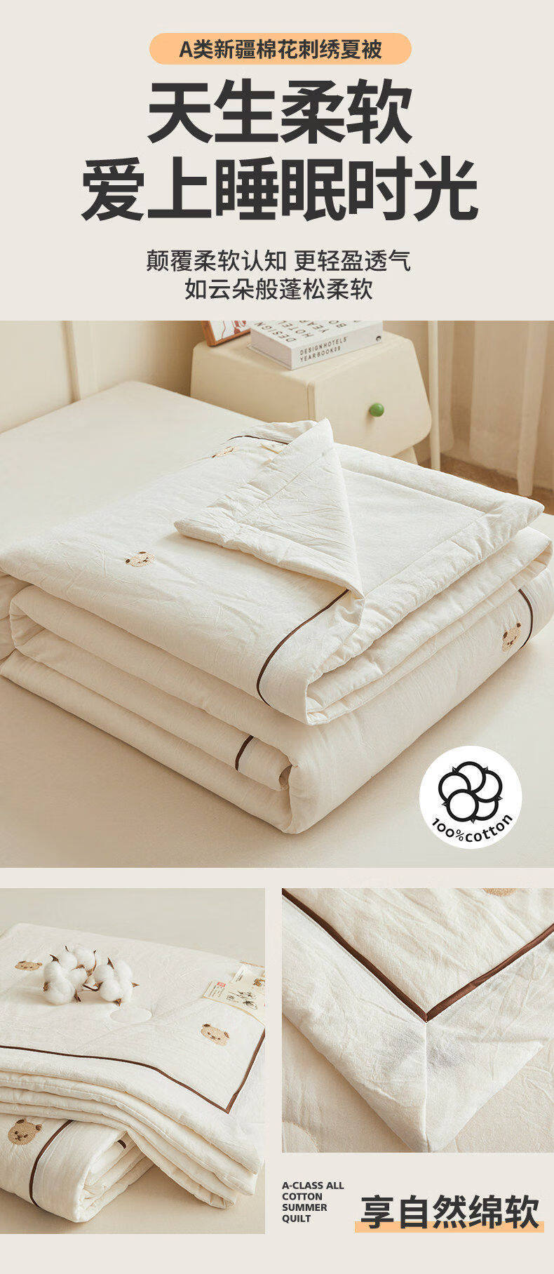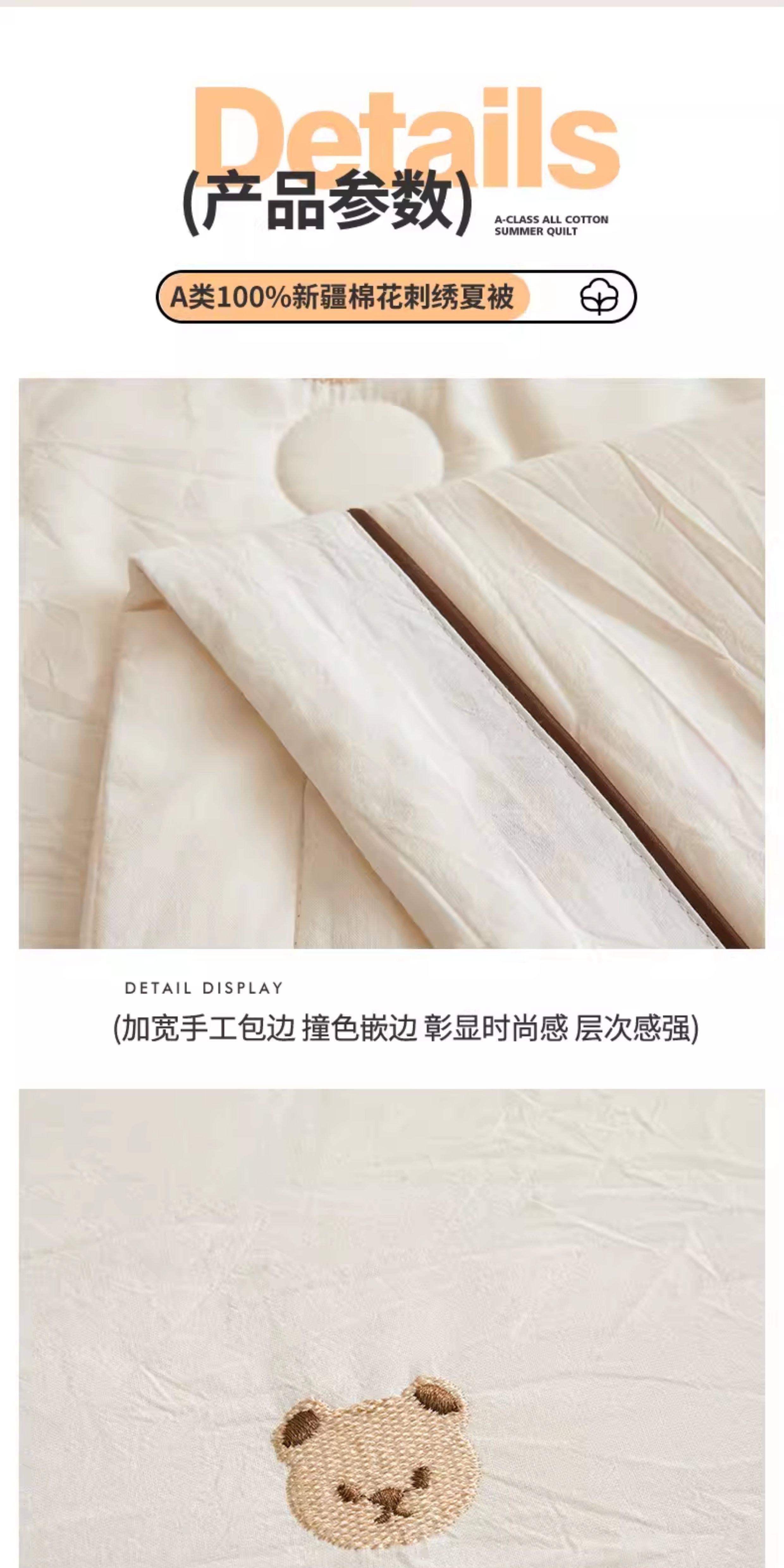 猫人(MiiOW)A类刺绣纯棉空调被子夏凉被100%棉花被芯双面可机洗夏季单双人被 熊博士-奶白【A类裸睡级面料】 150*200cm-单人夏被【100%新疆棉花填充更柔软】