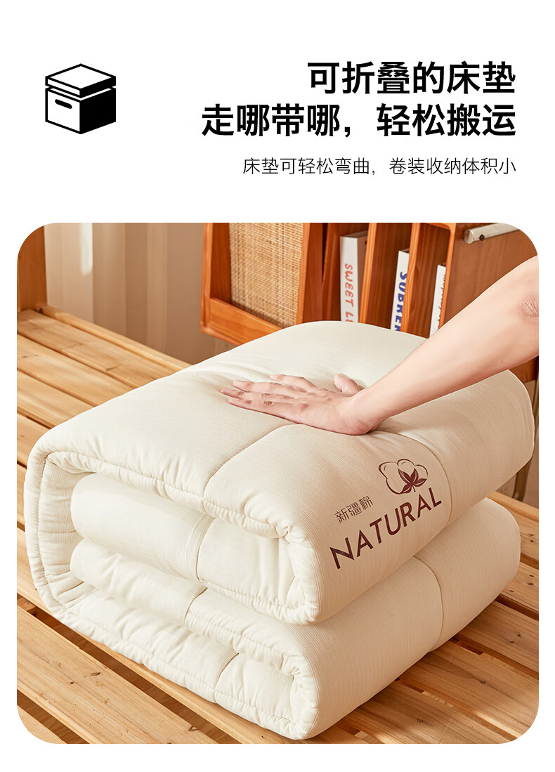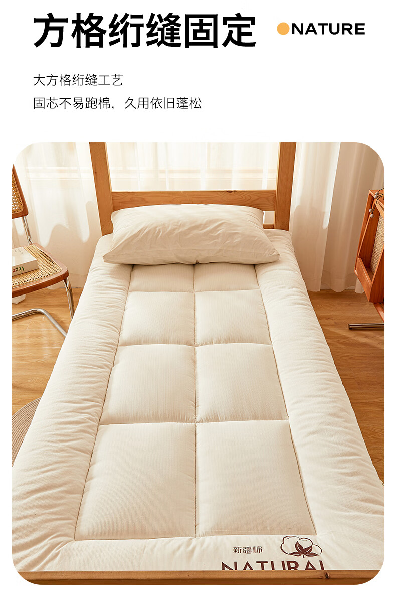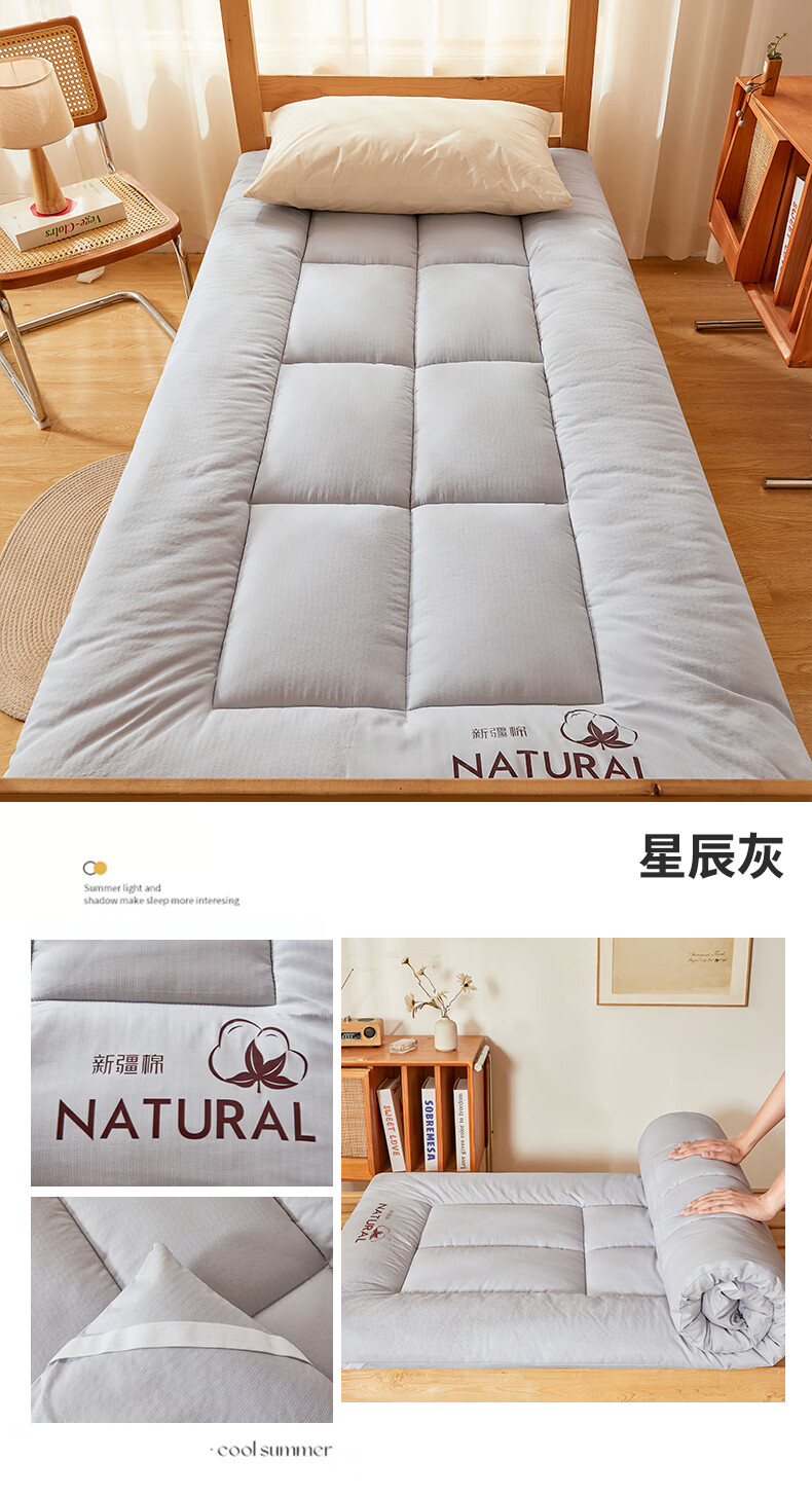 无印良品新疆棉花床垫遮盖物学生宿舍单人床褥垫被加厚榻榻米被褥铺床褥子 星辰灰【千层铺棉丨学生宿舍专用】 90*200cm【重约2斤】