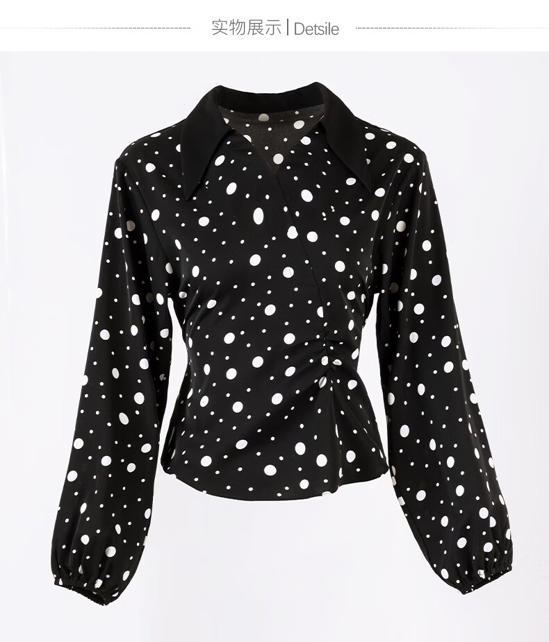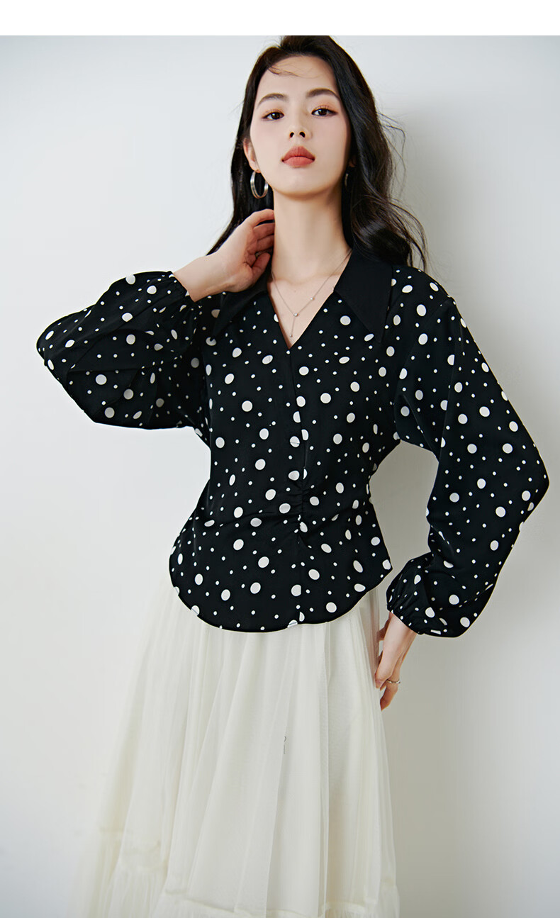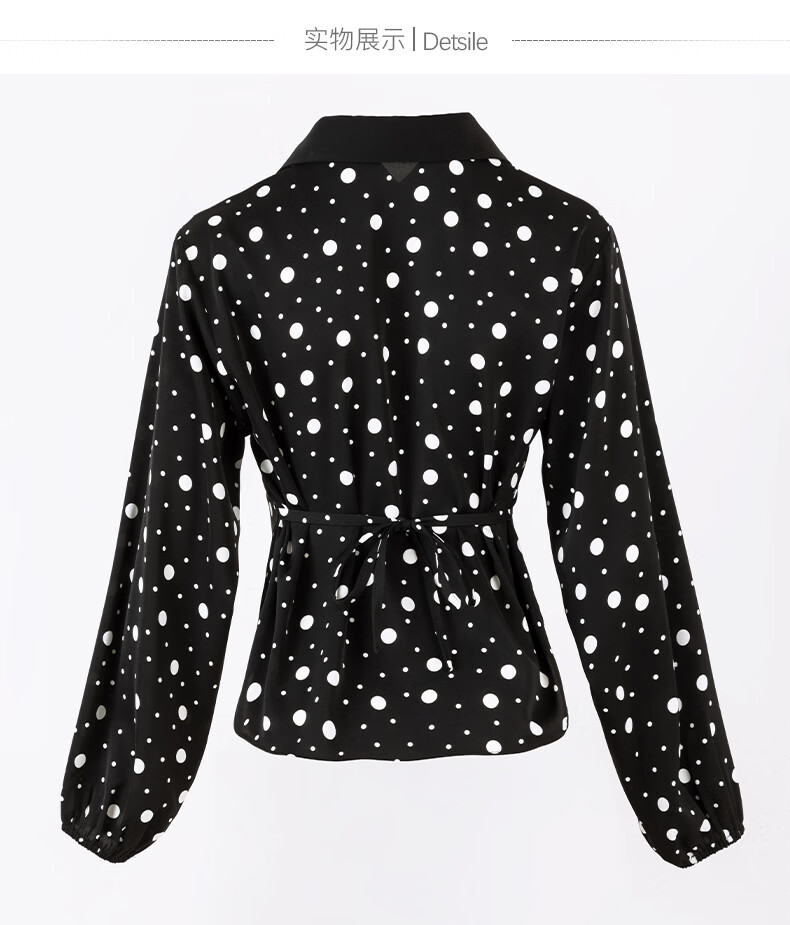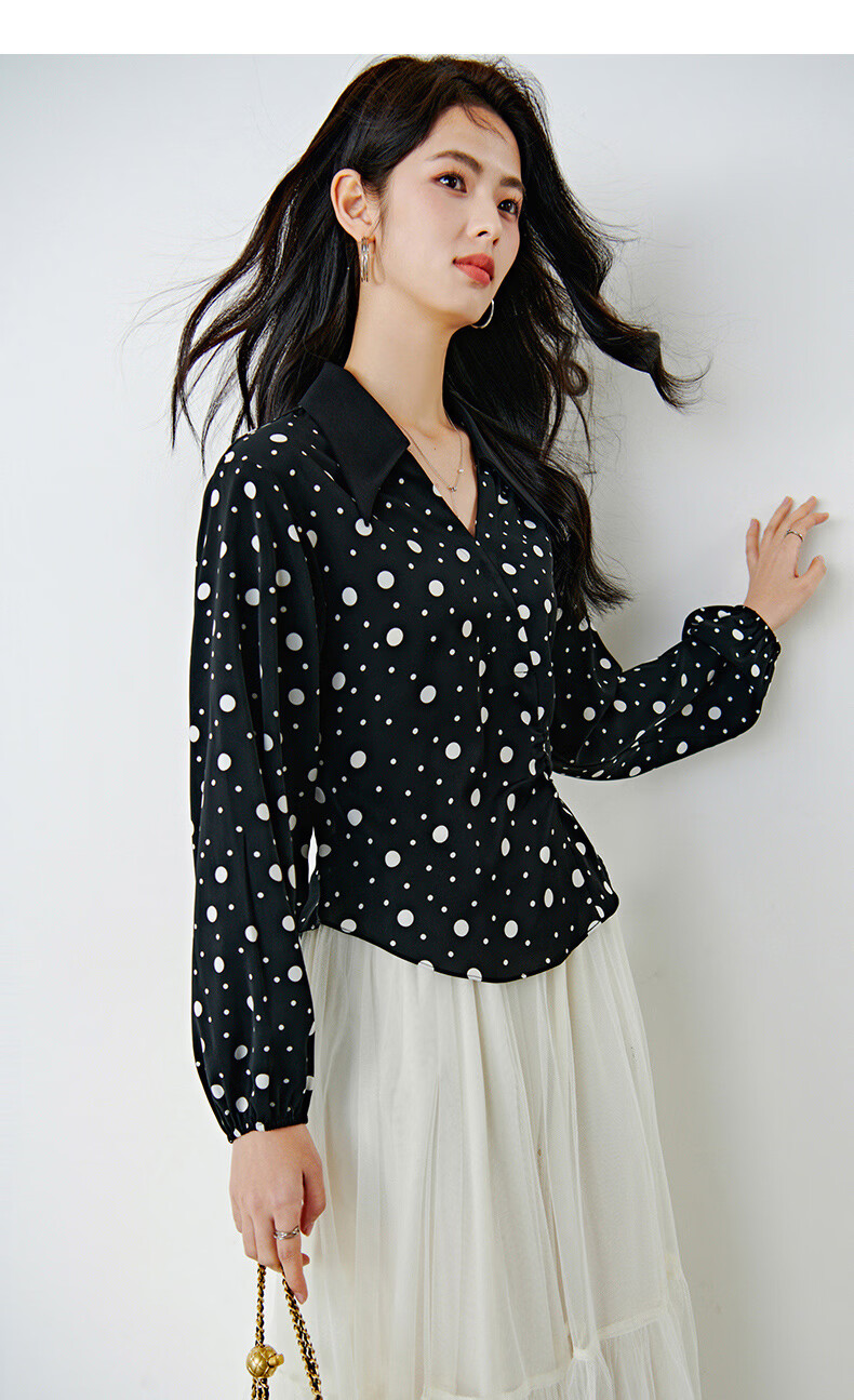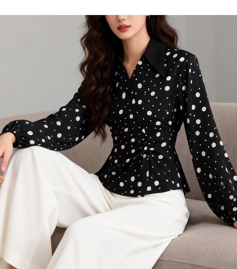 晚白2026年春款经典复古波点翻领上衣轻薄垂顺利落通勤设计感衬衫女 黑色 XL