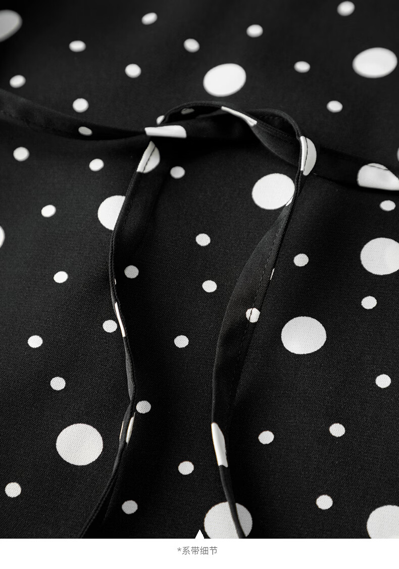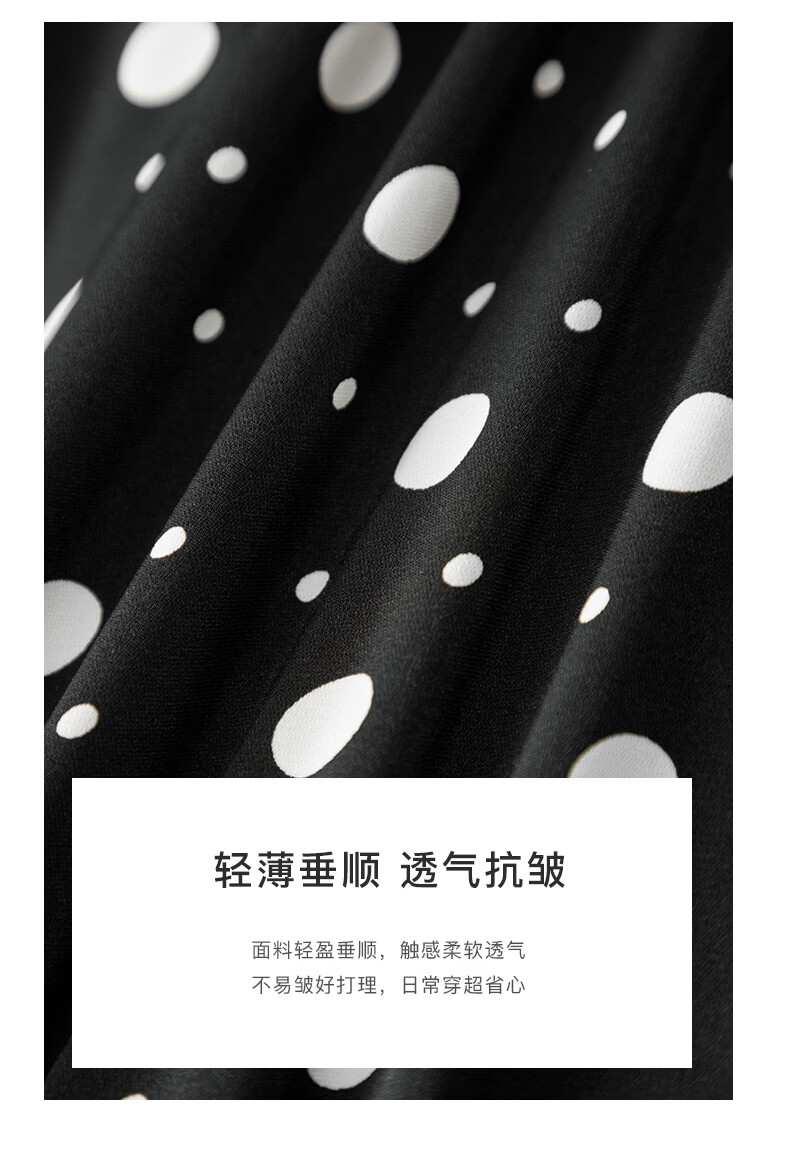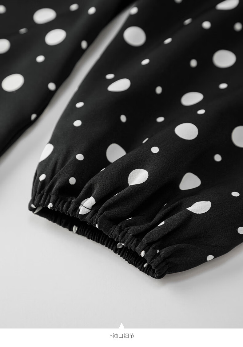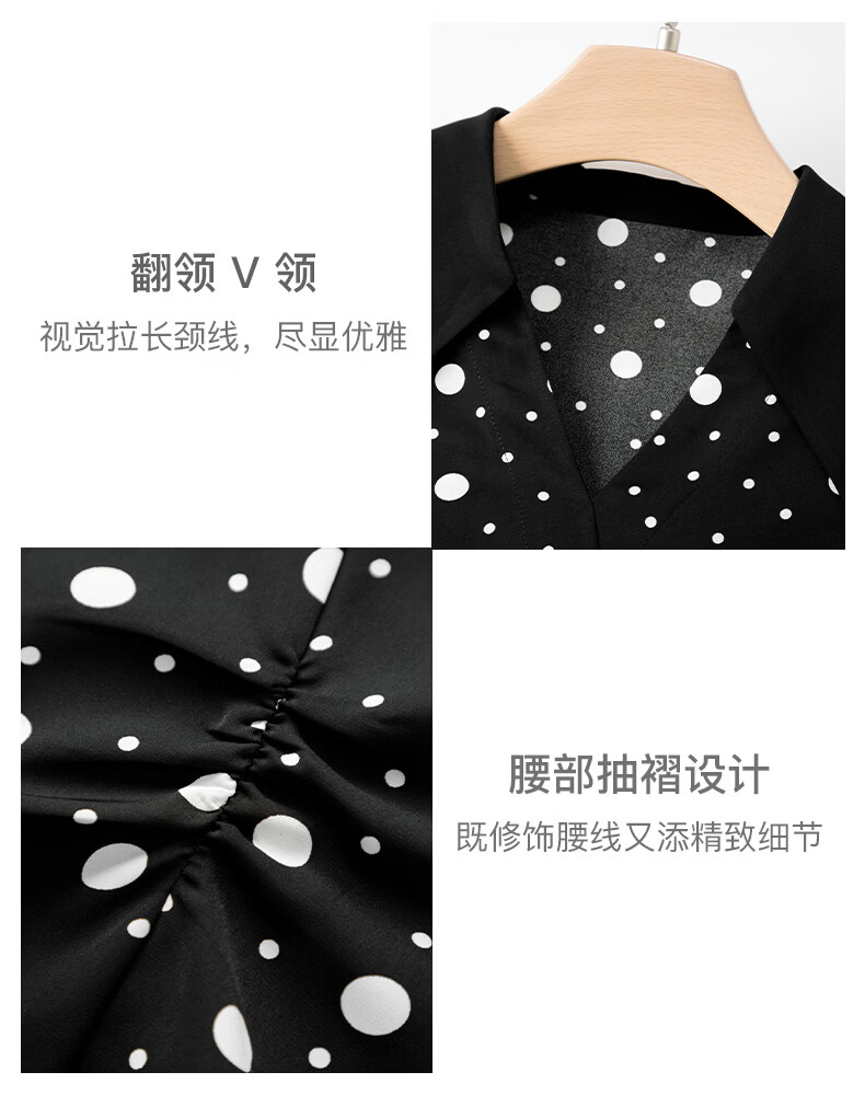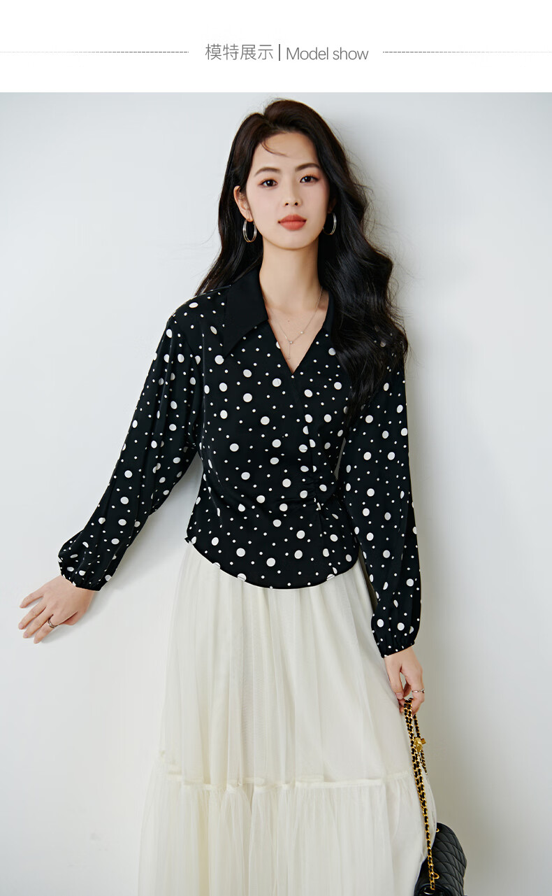 晚白2026年春款经典复古波点翻领上衣轻薄垂顺利落通勤设计感衬衫女 黑色 XL
