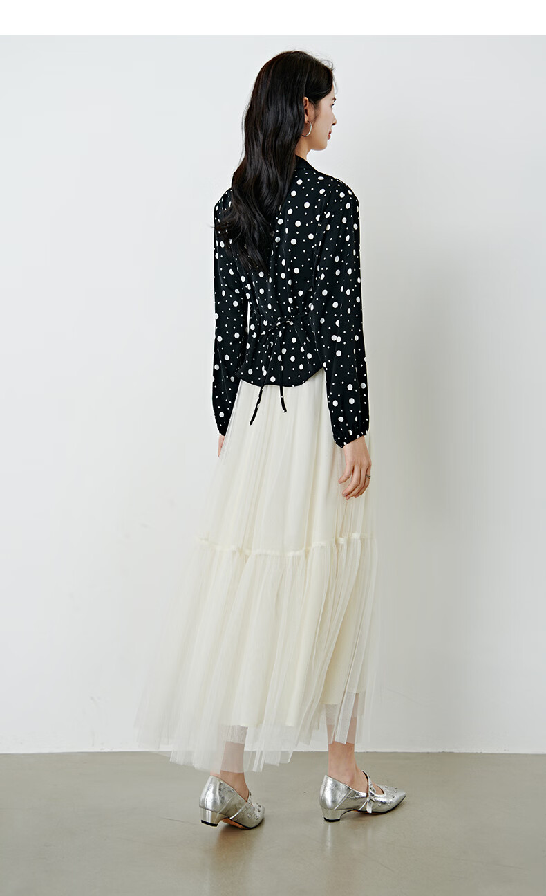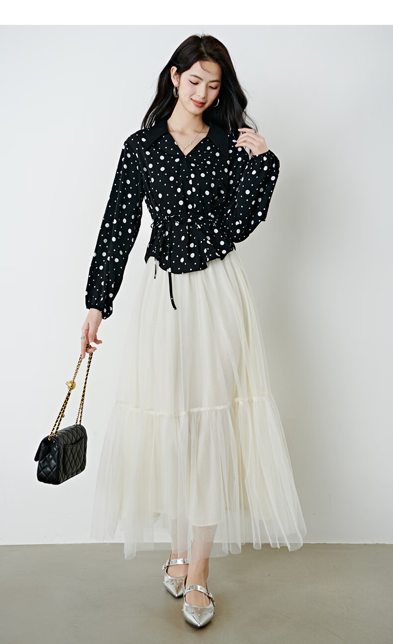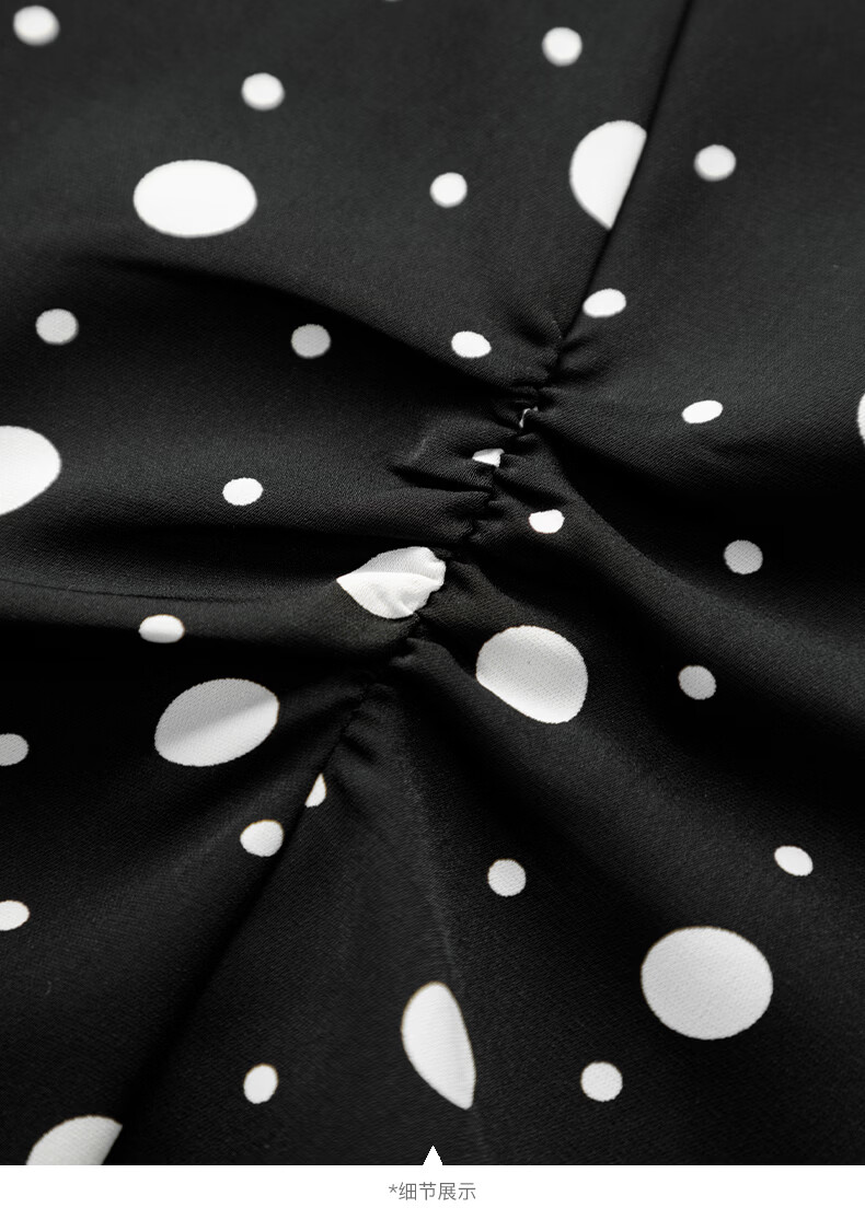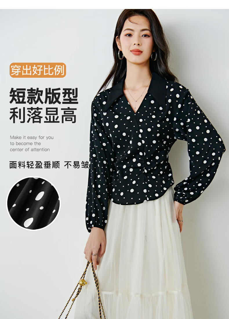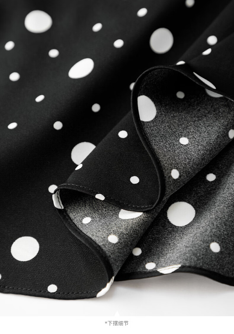 晚白2026年春款经典复古波点翻领上衣轻薄垂顺利落通勤设计感衬衫女 黑色 XL