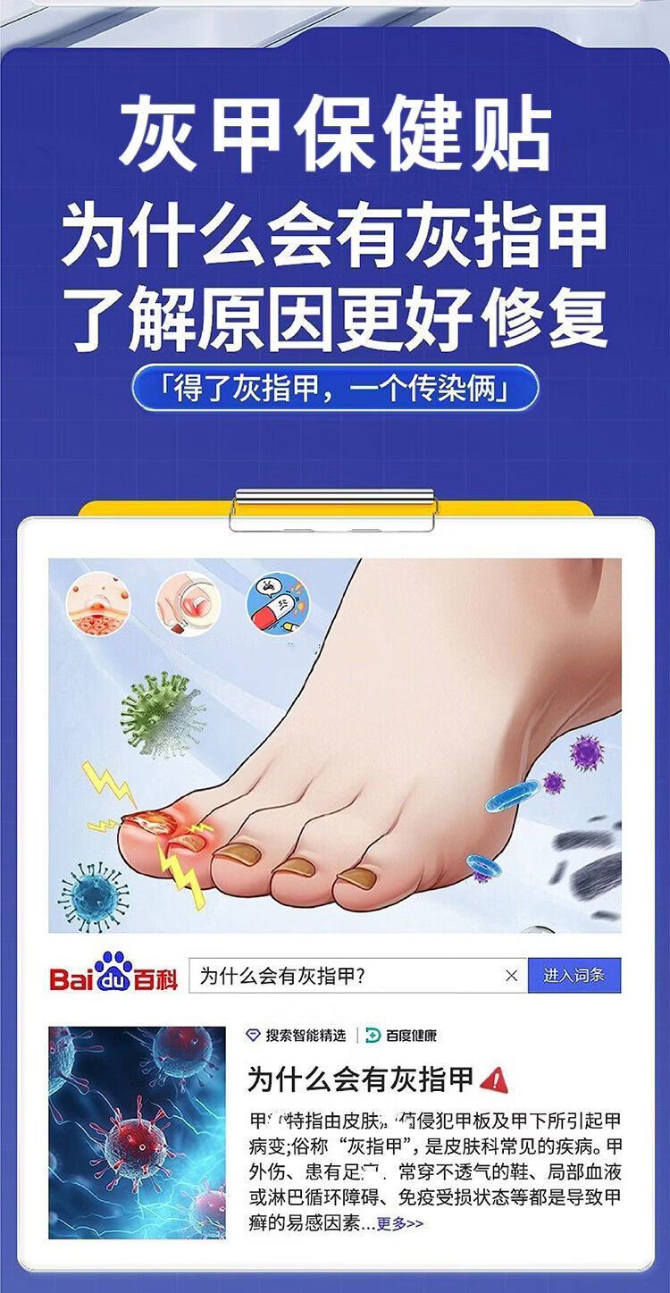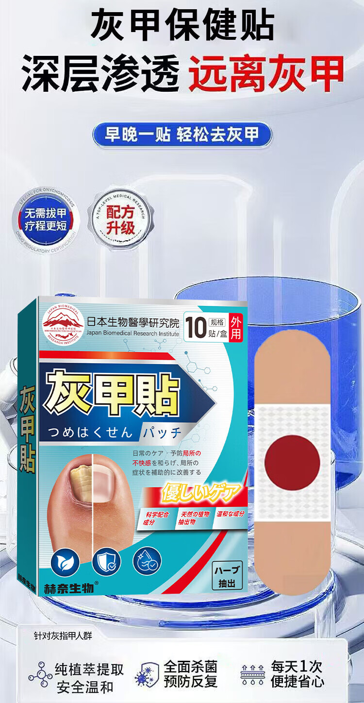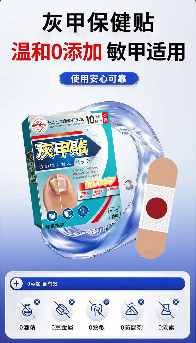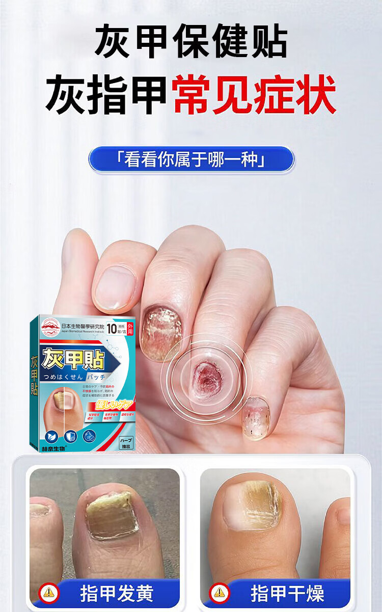 日本灰指甲专用贴指甲灰厚发黄修复坏甲空甲甲萎缩甲床美甲营养液 10盒装【适合重度 多指拍】