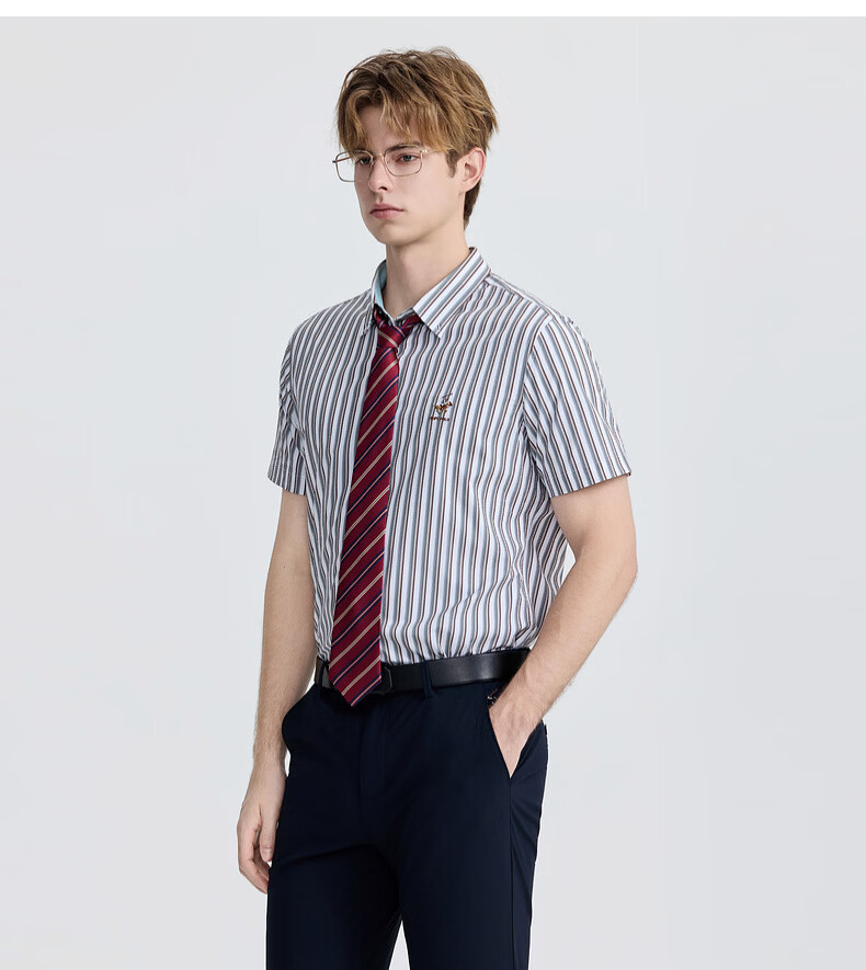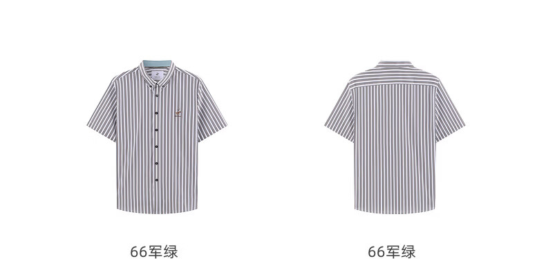 比华利保罗【透气挺括】2026春夏新款男士条纹短袖衬衫时尚百搭休闲上衣 66军绿 L