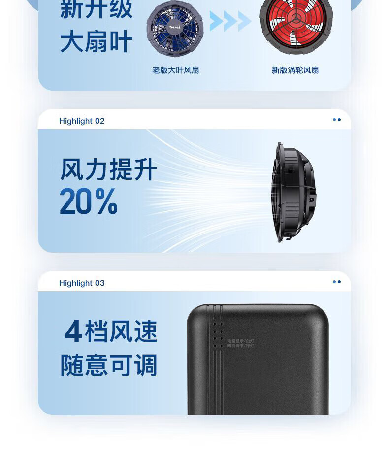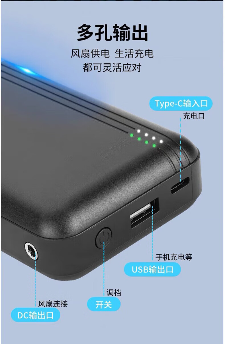 金薇朵空调服专用挂腰大电池空调衣服全套配件大容量锂电池充电宝DC/USB 12V10万电池两风扇全套配件