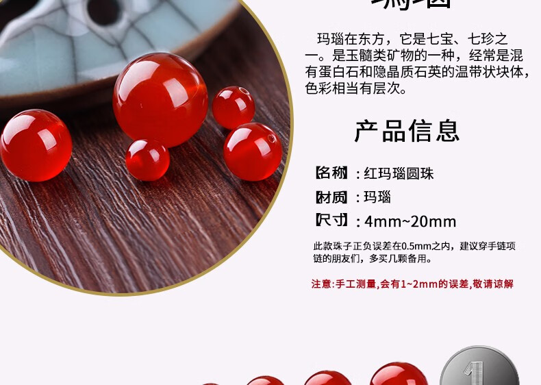 潮典 红玛瑙散珠圆珠红色半成品串珠子手工diy手串手链女饰品隔珠配件 4mm【20颗】
