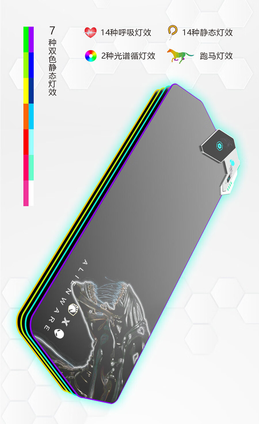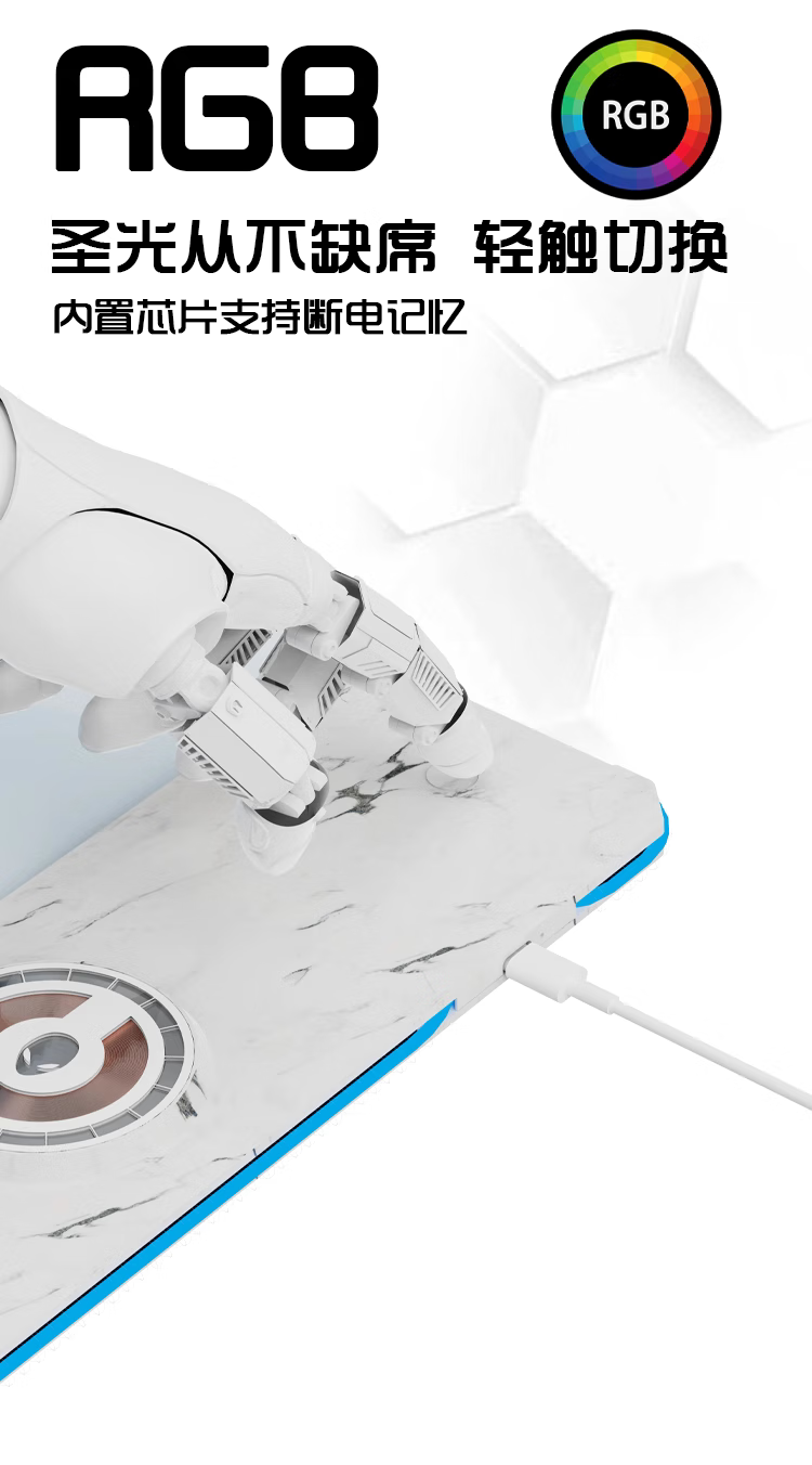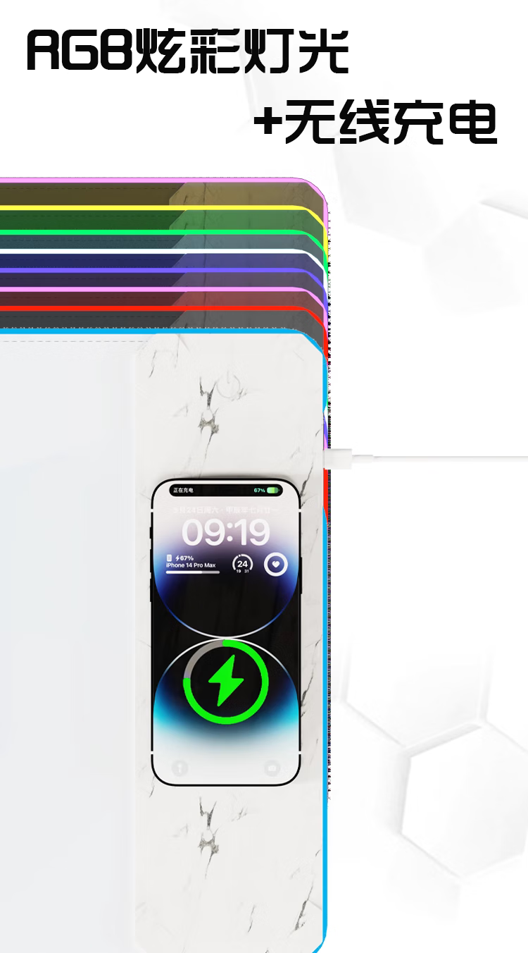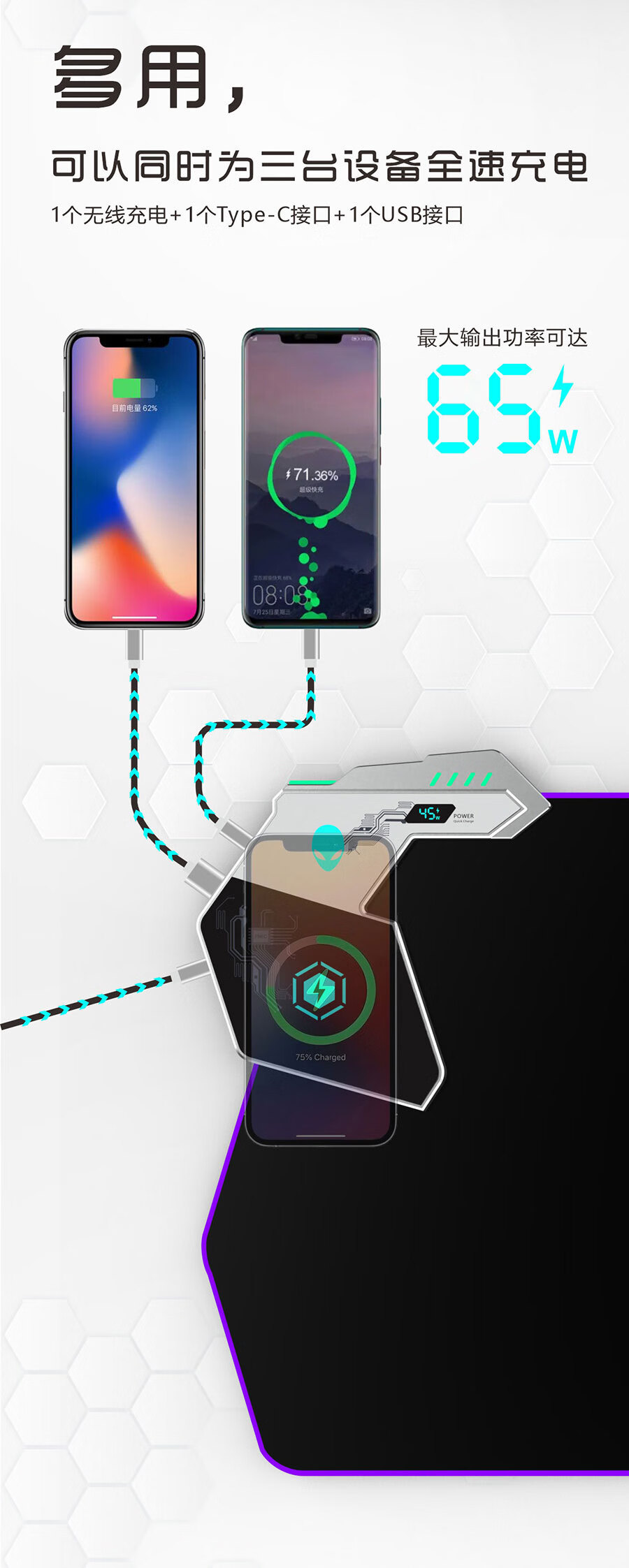 外星人无线充电鼠标垫RGB发光电竞游戏快充电脑笔记本键盘垫大号 65W快充RGB发光800*300*4mm 800*300*4mm