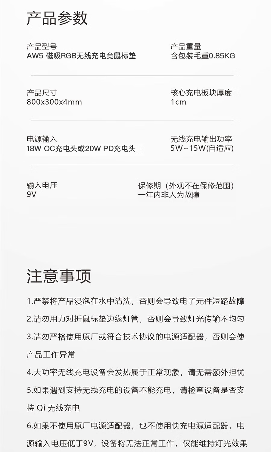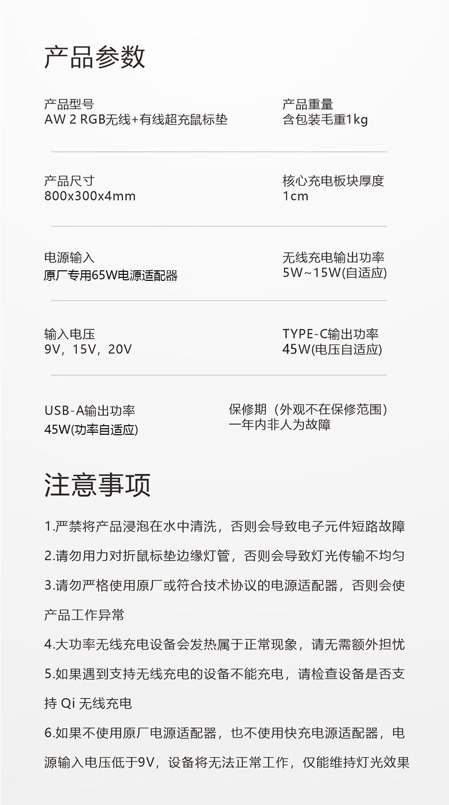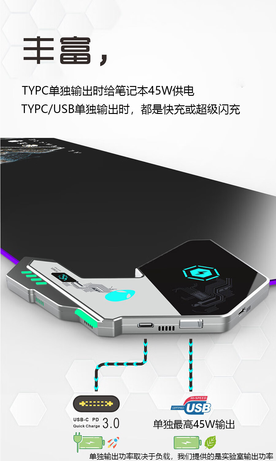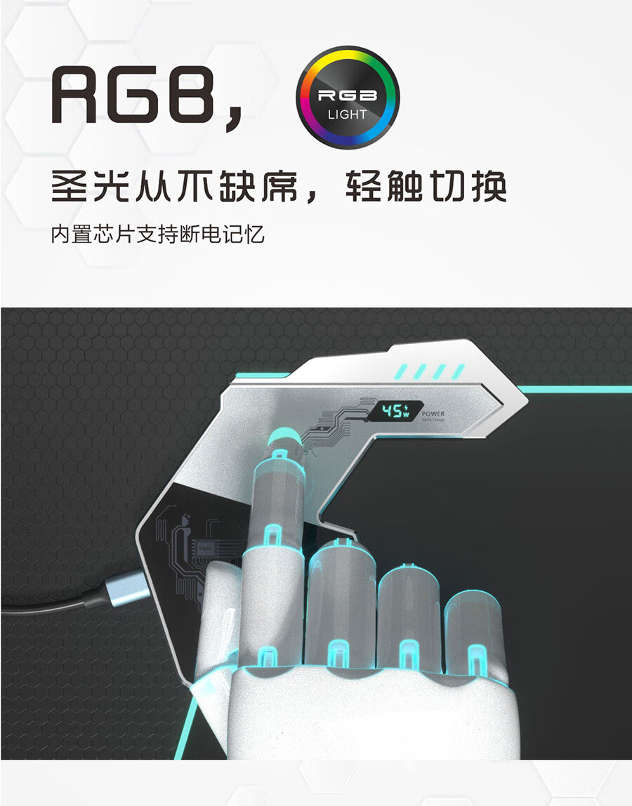 外星人无线充电鼠标垫RGB发光电竞游戏快充电脑笔记本键盘垫大号 65W快充RGB发光800*300*4mm 800*300*4mm