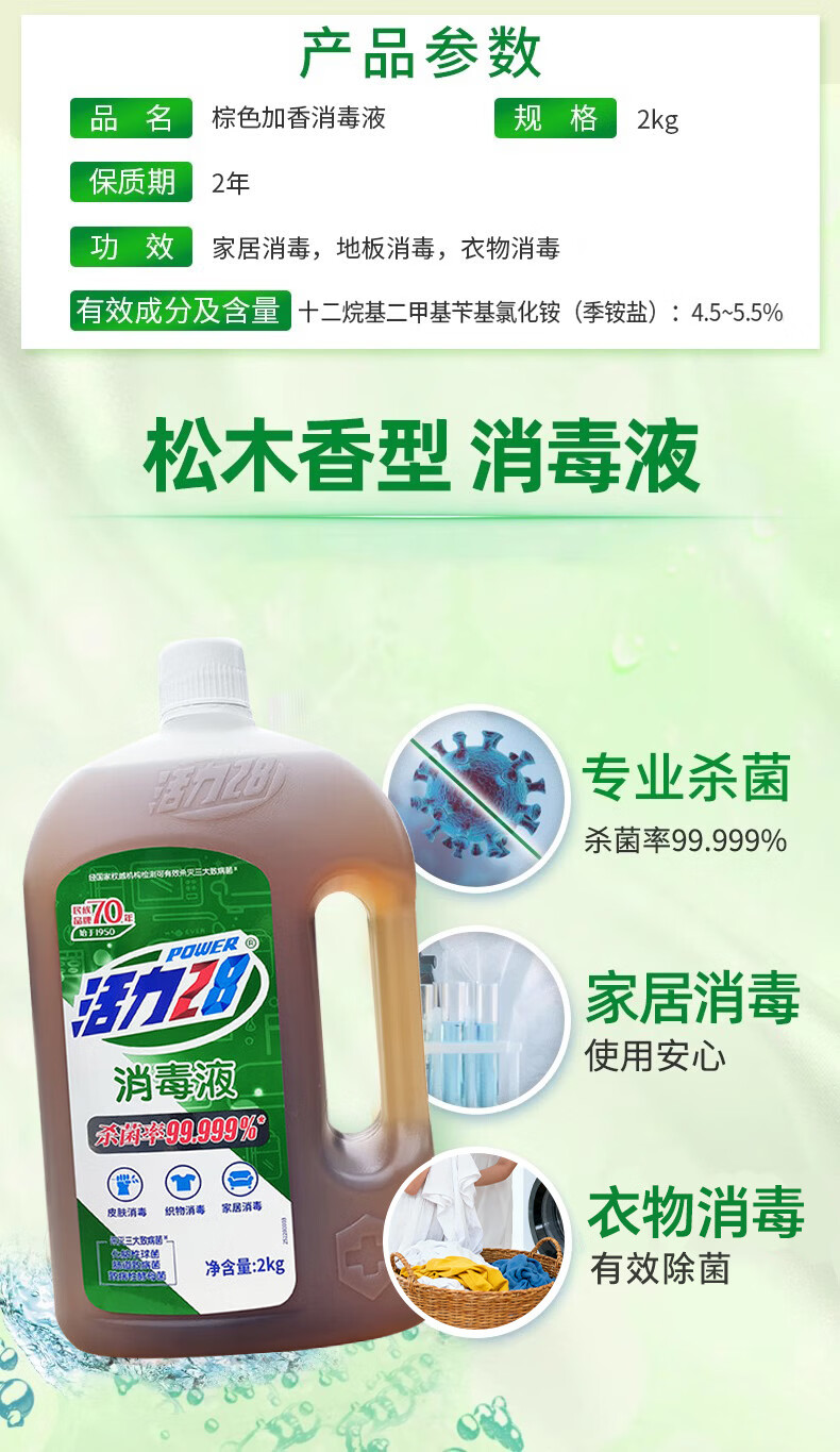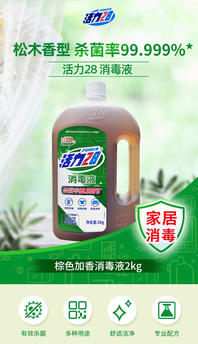 活力28消毒液【松木香型】香氛衣物家居杀菌液地板厨卫多效合一 【多效合一】2kg*1瓶