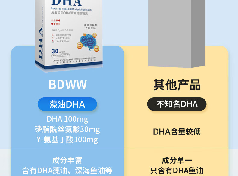 BODR WEWA 深海鱼油DHA藻油秘鲁进口原料藻油胶囊可搭辅助改善配合记忆力 30粒*3盒