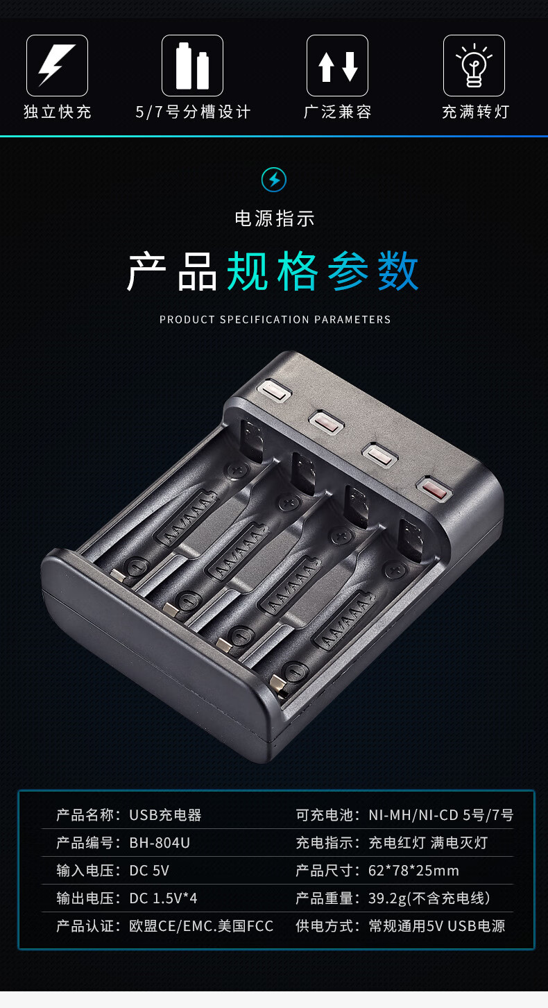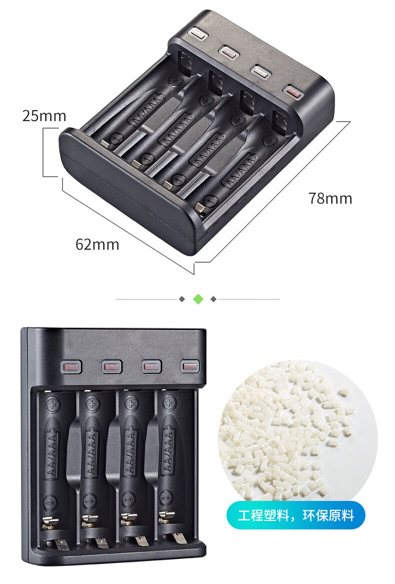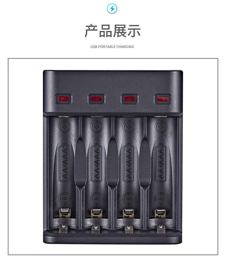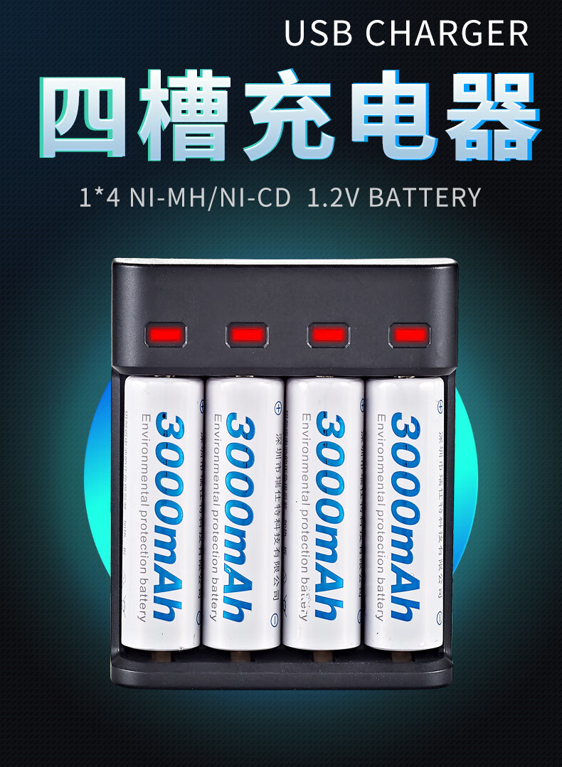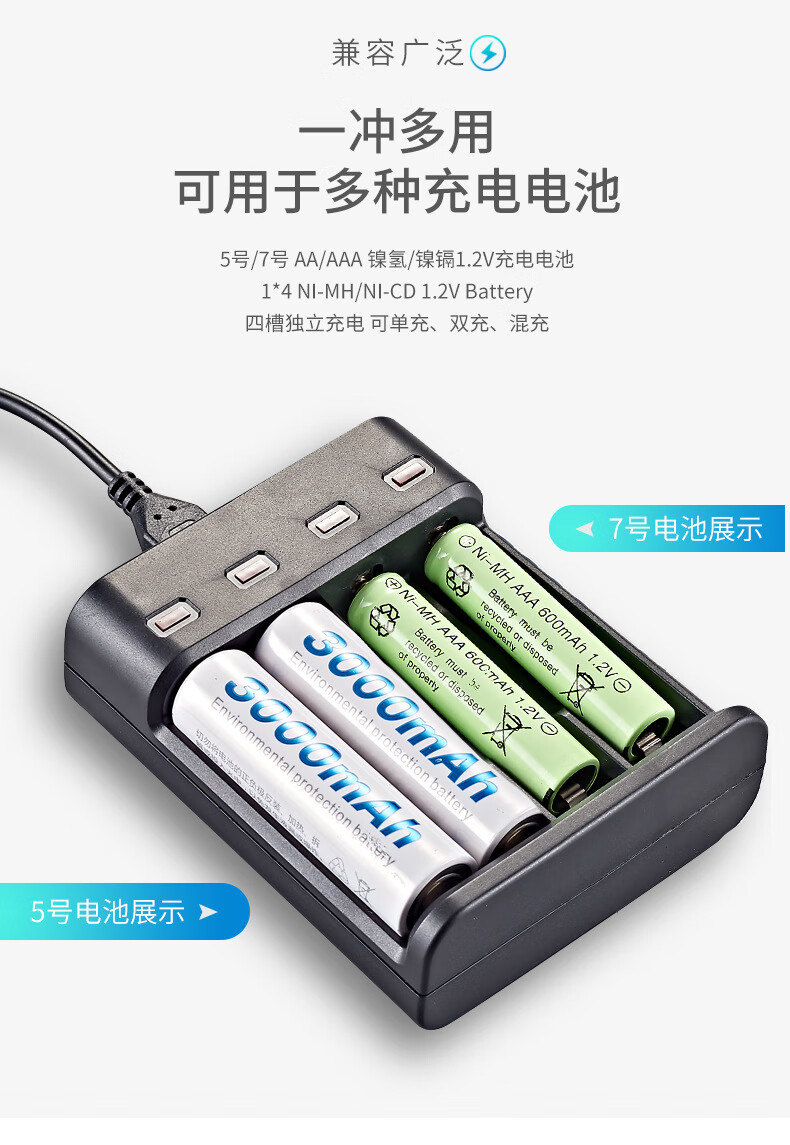 BMAX柏玛斯1.2V5号AA7号AAA镍镉镍氢充电电池 充满灭灯4槽USB充电器 充电器+4节7号1580mAH