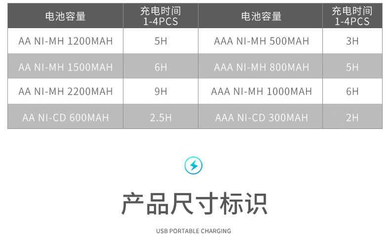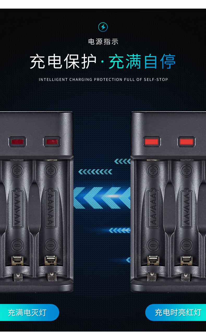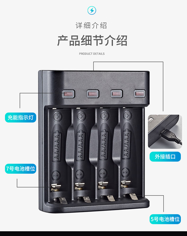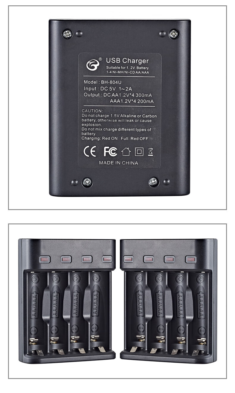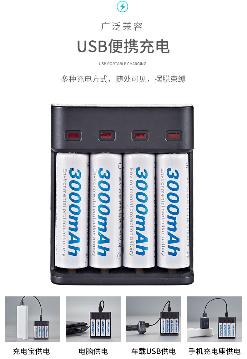 BMAX柏玛斯1.2V5号AA7号AAA镍镉镍氢充电电池 充满灭灯4槽USB充电器 充电器+4节7号1580mAH