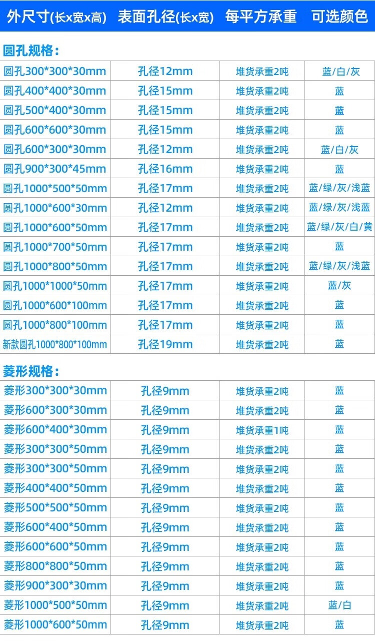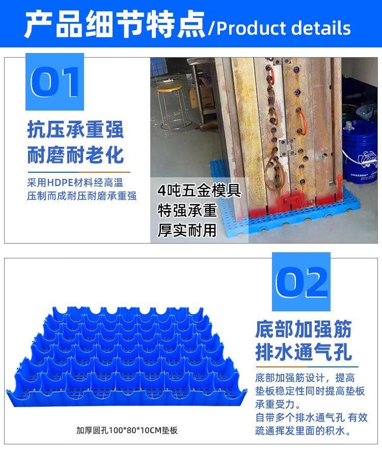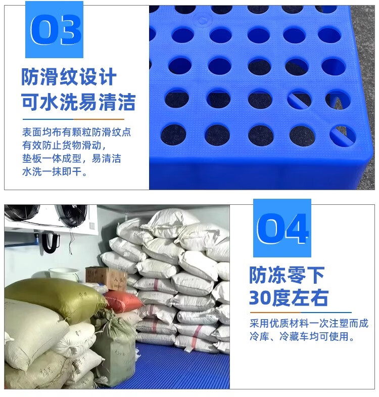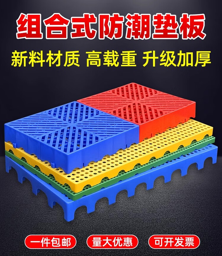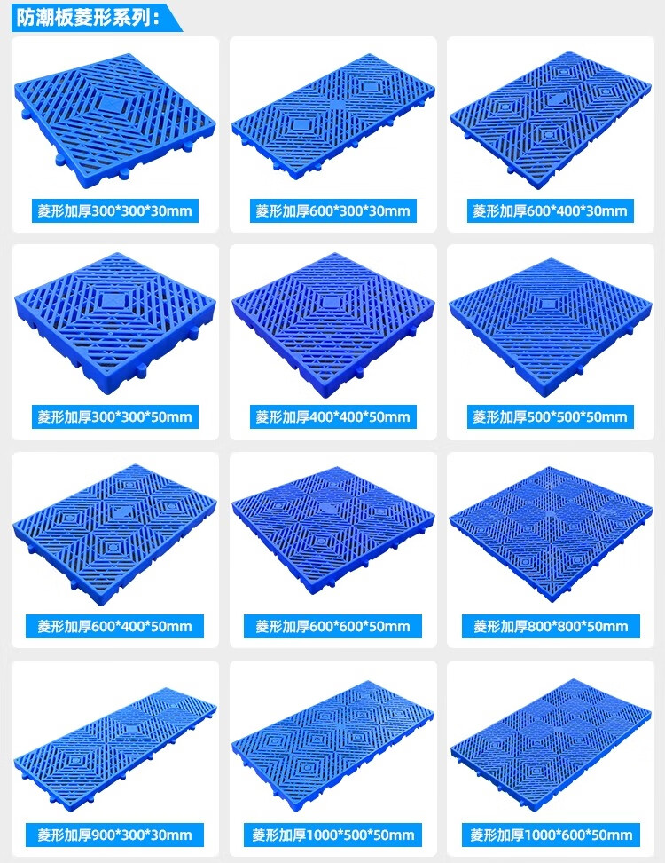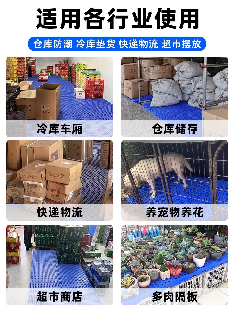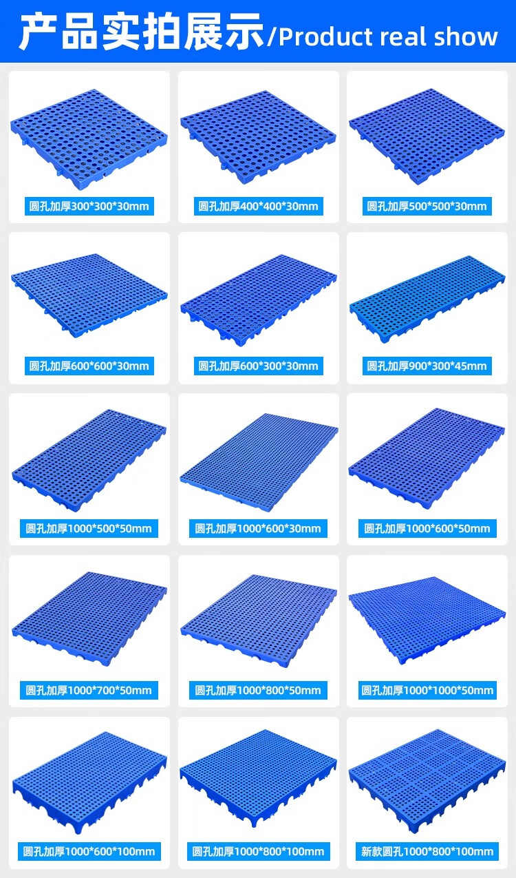 防潮板塑料托盘仓库垫板货物防潮地垫高地台卡板冻库防潮垫板塑料 100X50X5CM 蓝色圆孔加厚