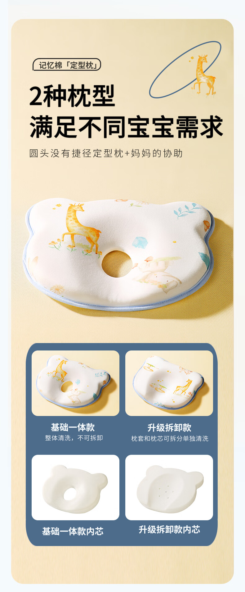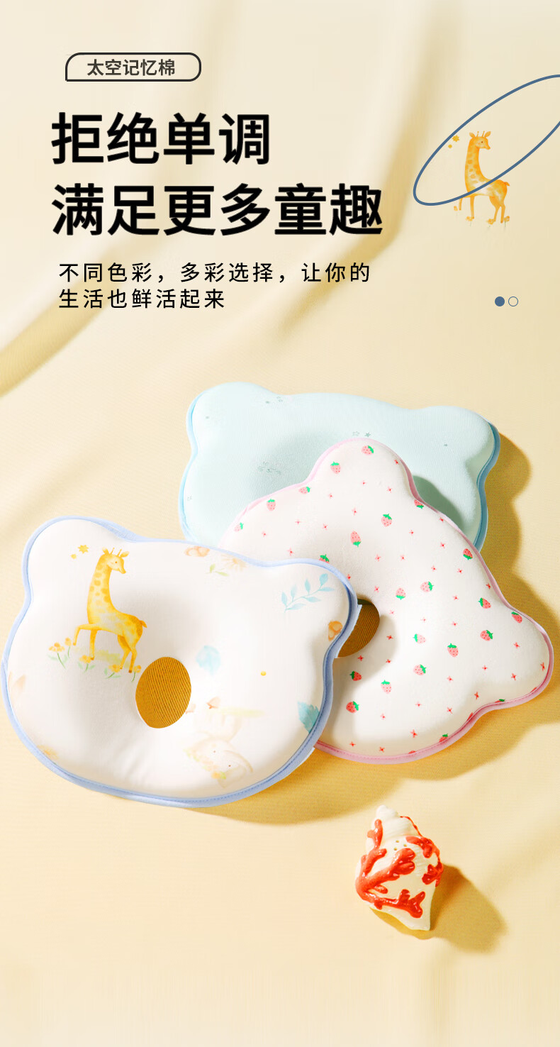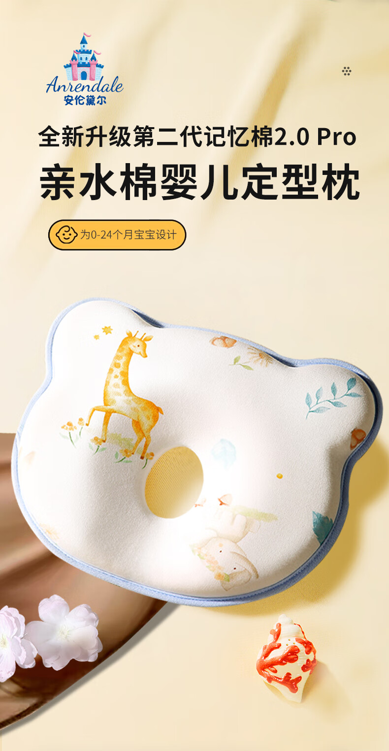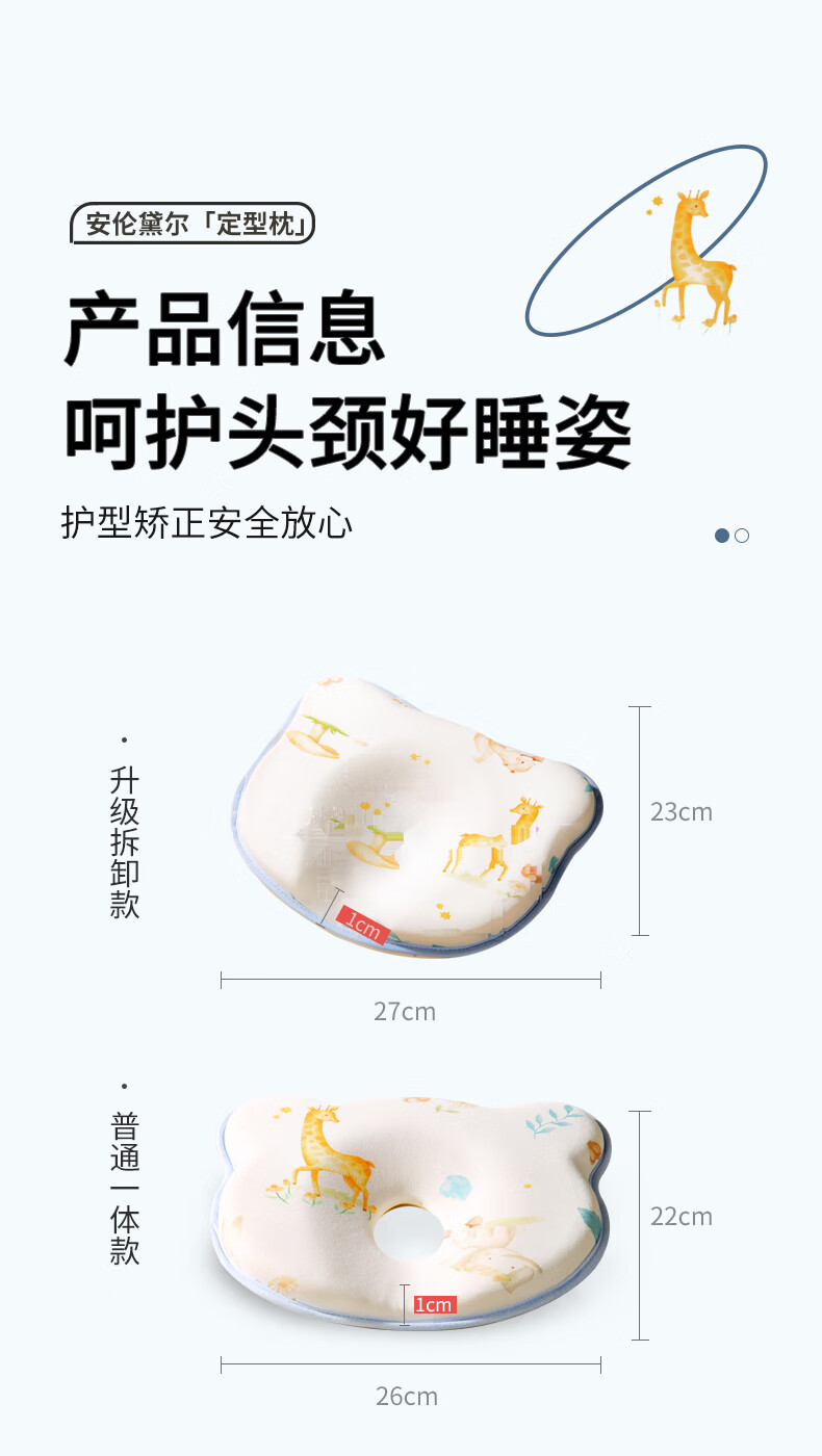 安伦黛尔婴儿定型枕新生儿纠正扁头矫正头型防偏头0到6个月宝宝睡圆头枕头 小鹿夏初-基础一体款+棉套+凉套