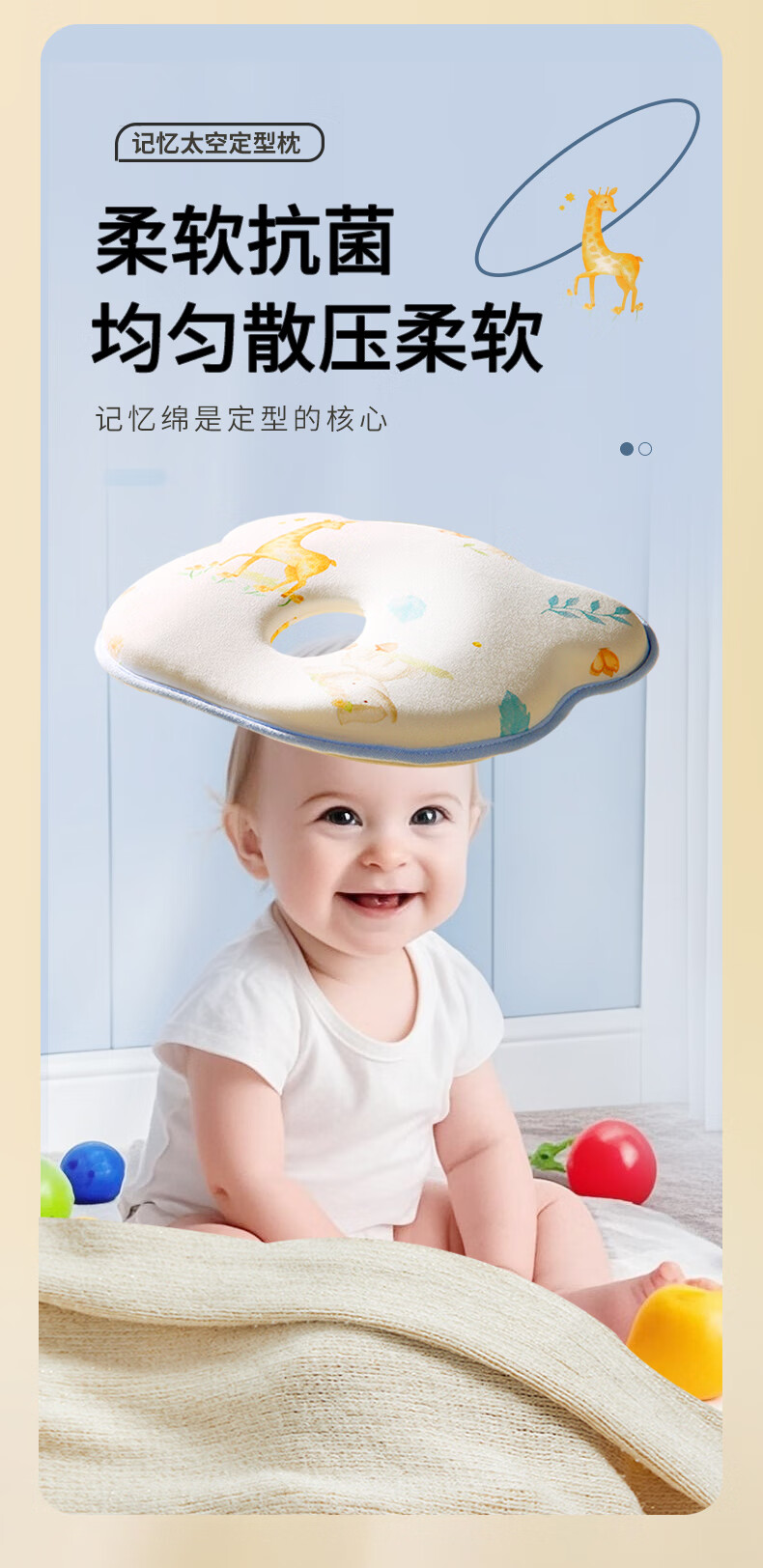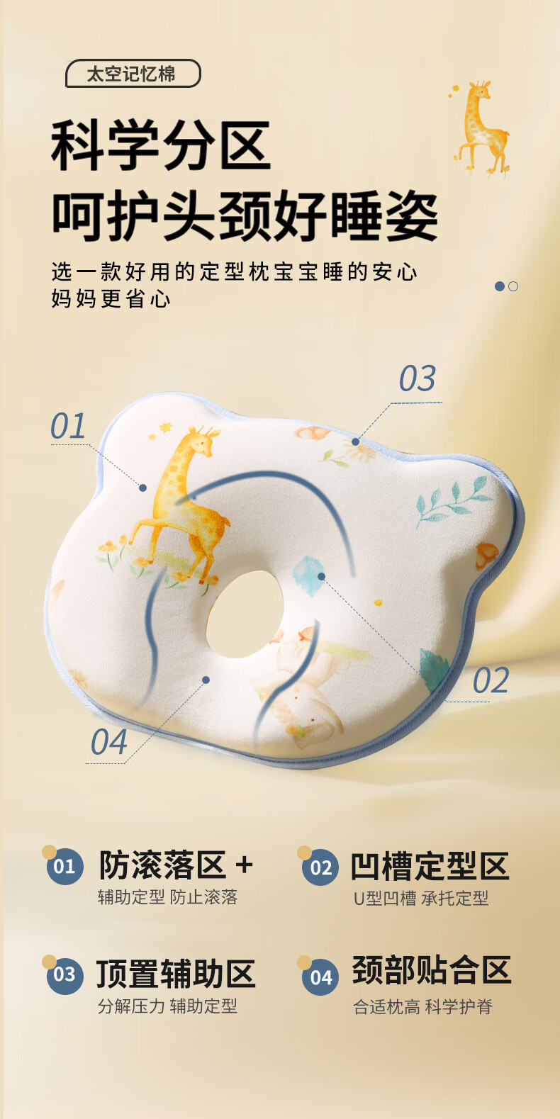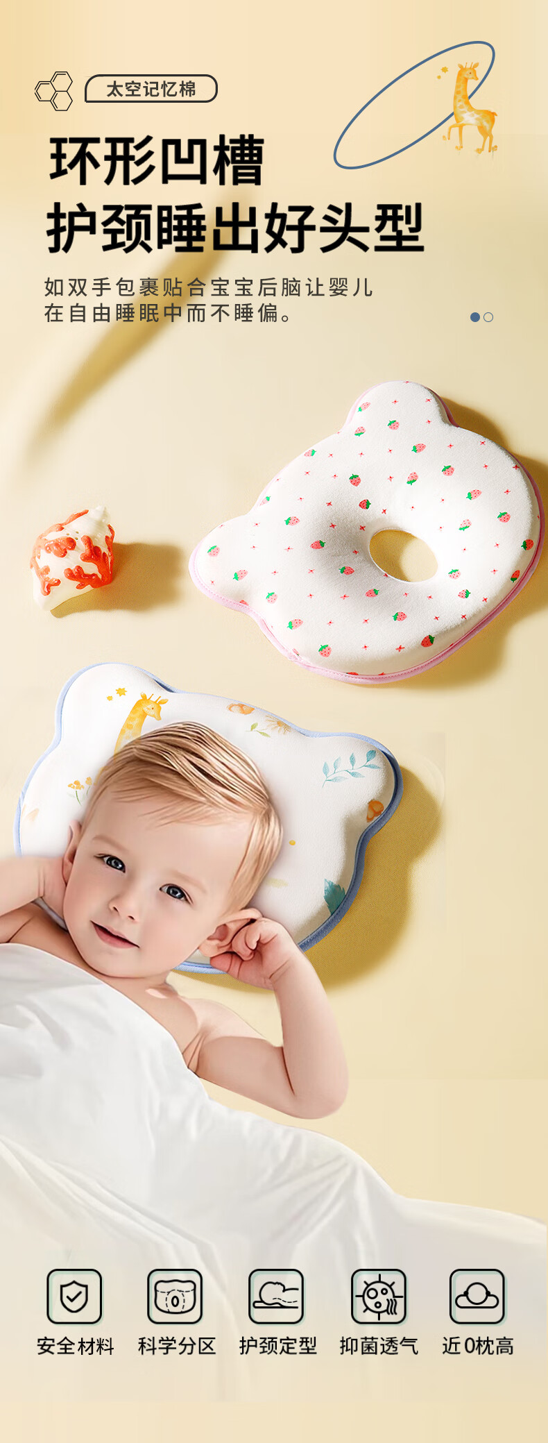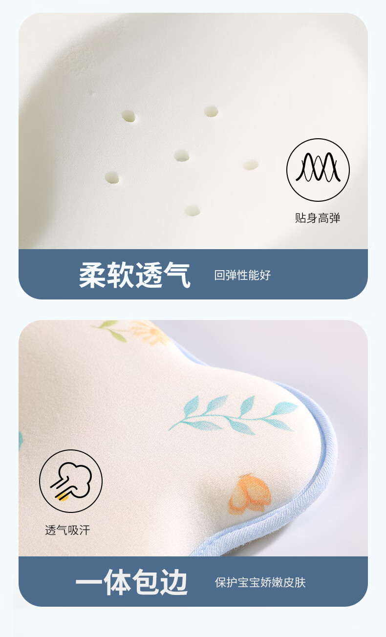 安伦黛尔婴儿定型枕新生儿纠正扁头矫正头型防偏头0到6个月宝宝睡圆头枕头 小鹿夏初-基础一体款+棉套+凉套