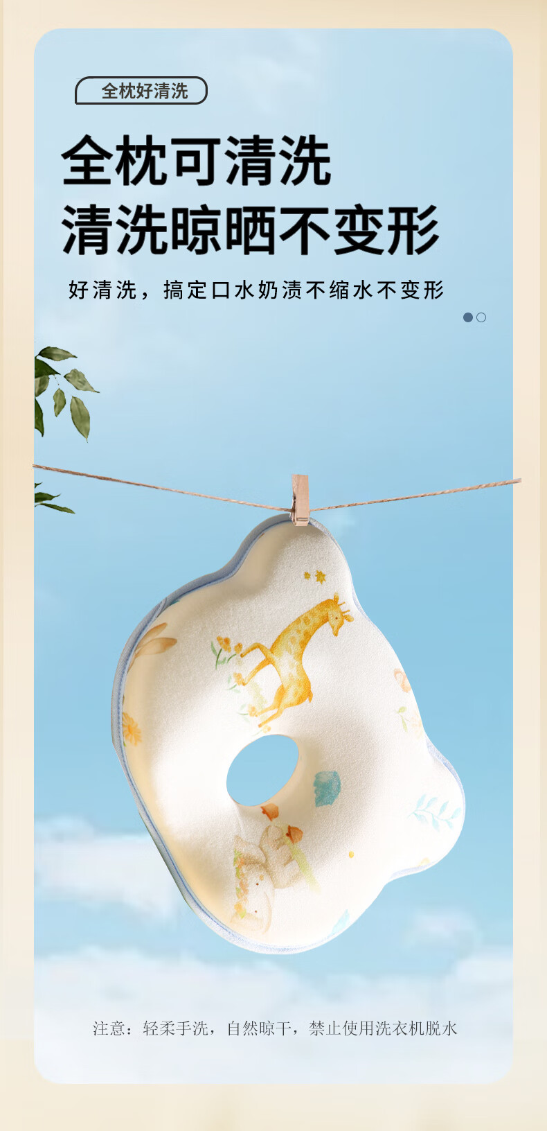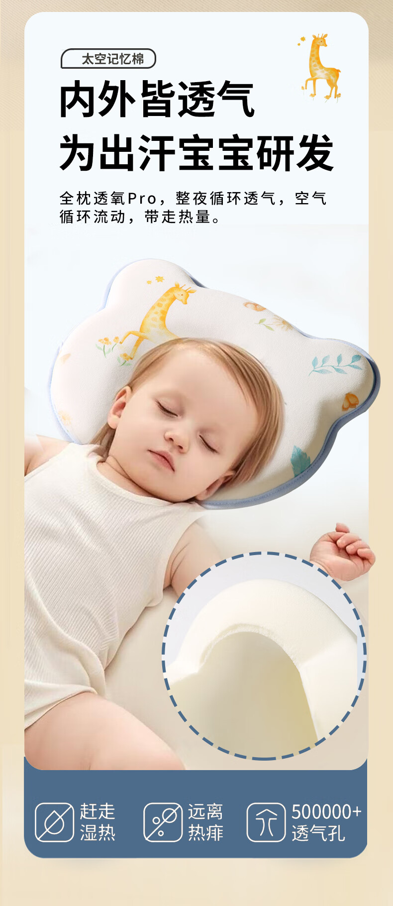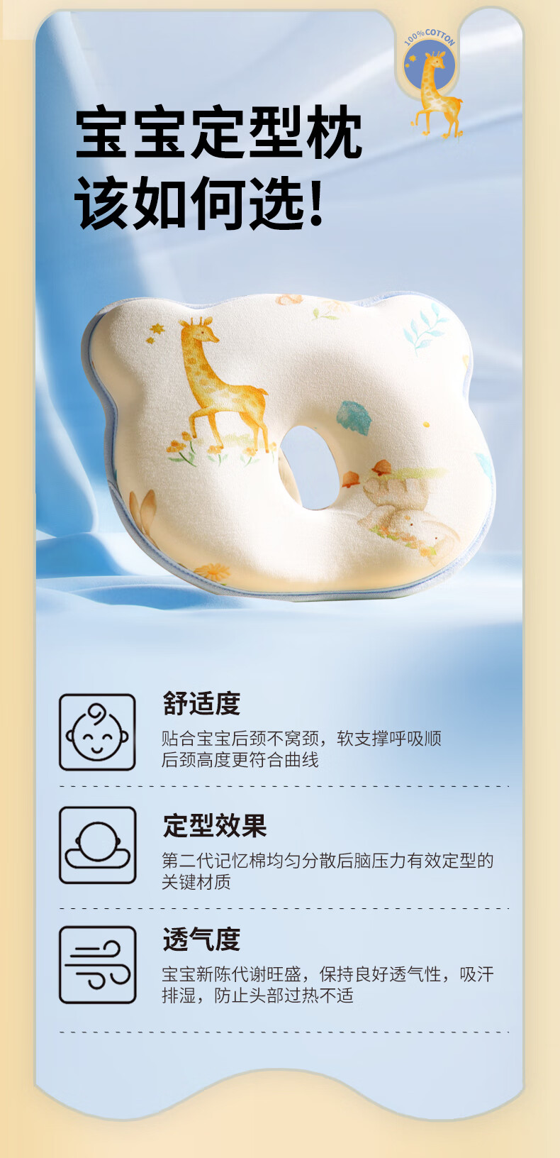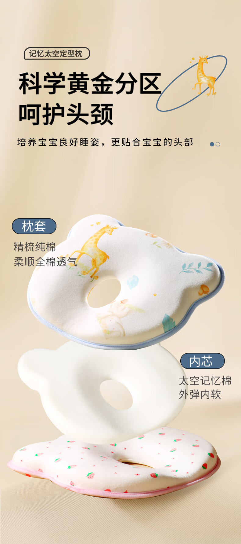 安伦黛尔婴儿定型枕新生儿纠正扁头矫正头型防偏头0到6个月宝宝睡圆头枕头 小鹿夏初-基础一体款+棉套+凉套